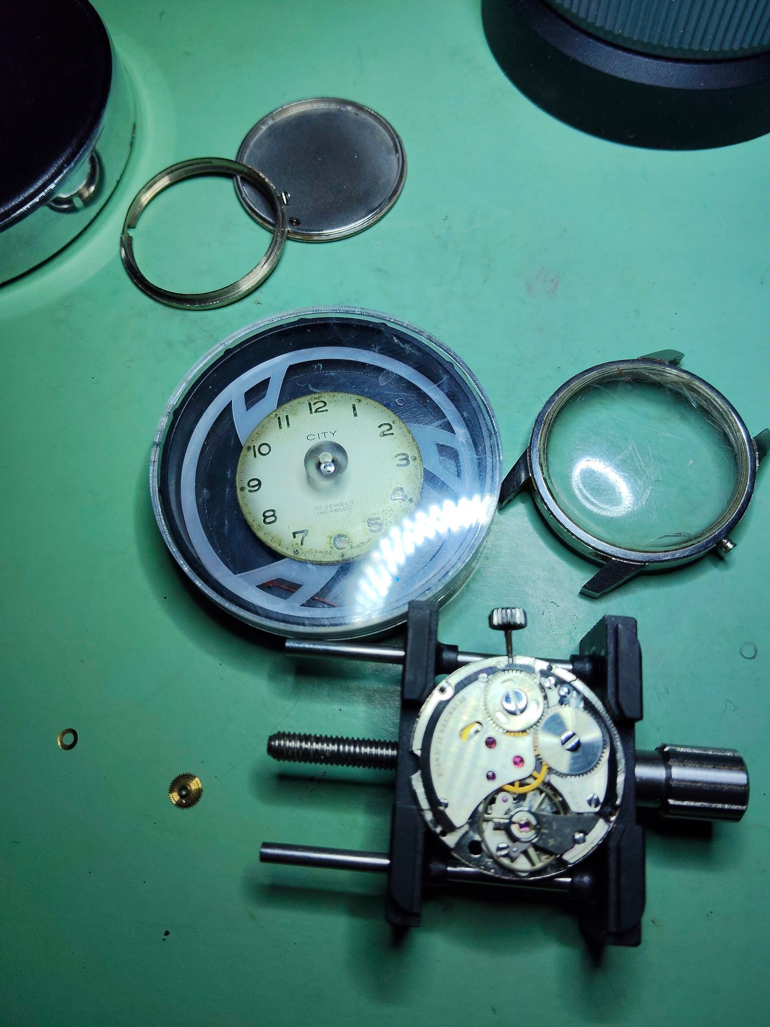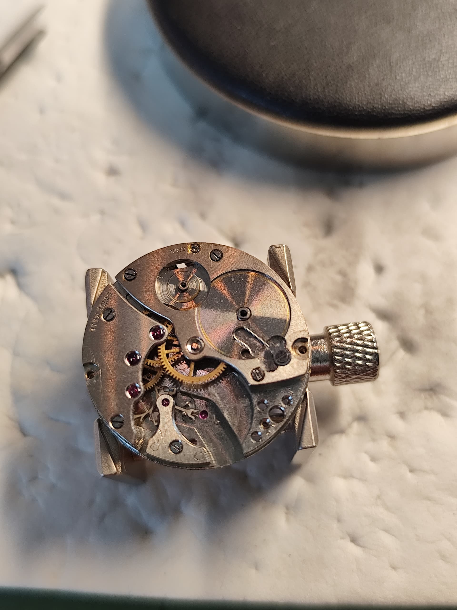 Mijn eerste keer opwindveer demonteren, en na de spoelmachine weer terugplaatsen. Leuk werk, met 't handje.