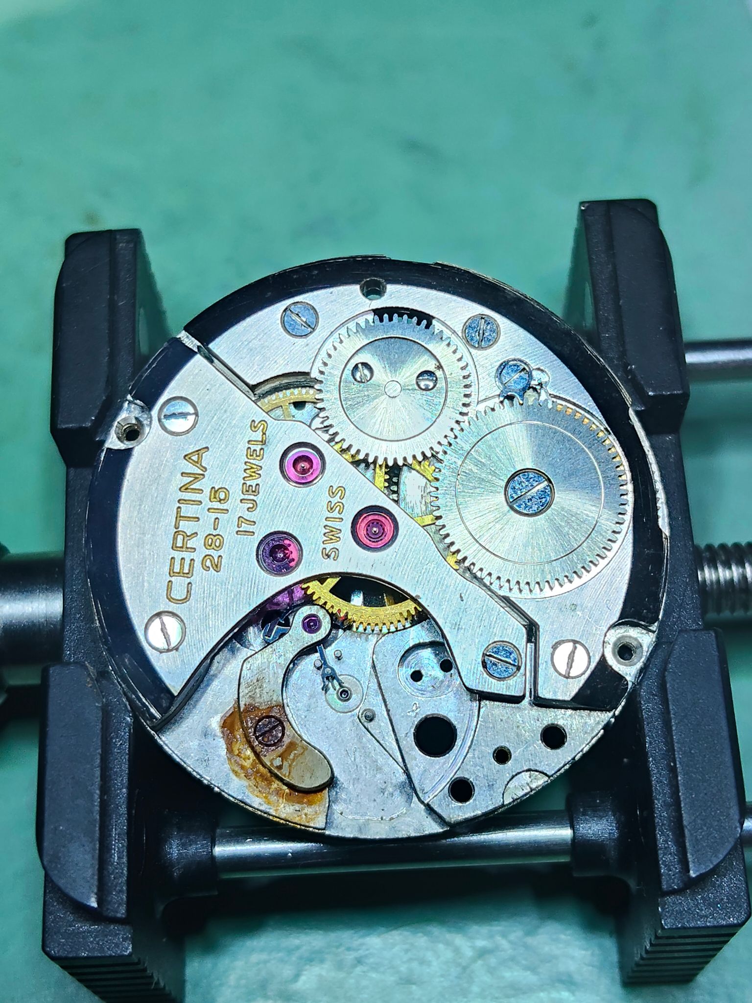 Die veer zou toch vervangen moeten worden. Maar pas op, Certina-veren zijn niet makkelijk meer te vinden… …ook niet bij GR.