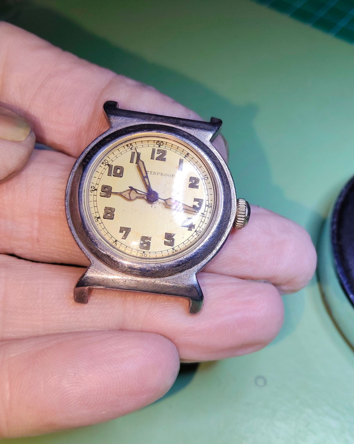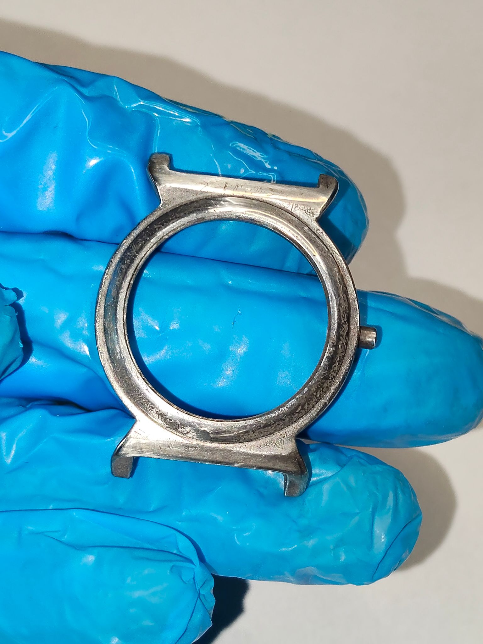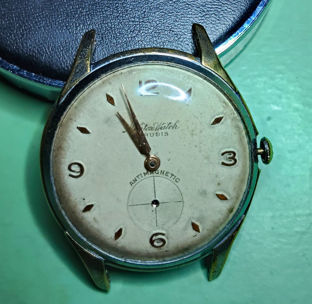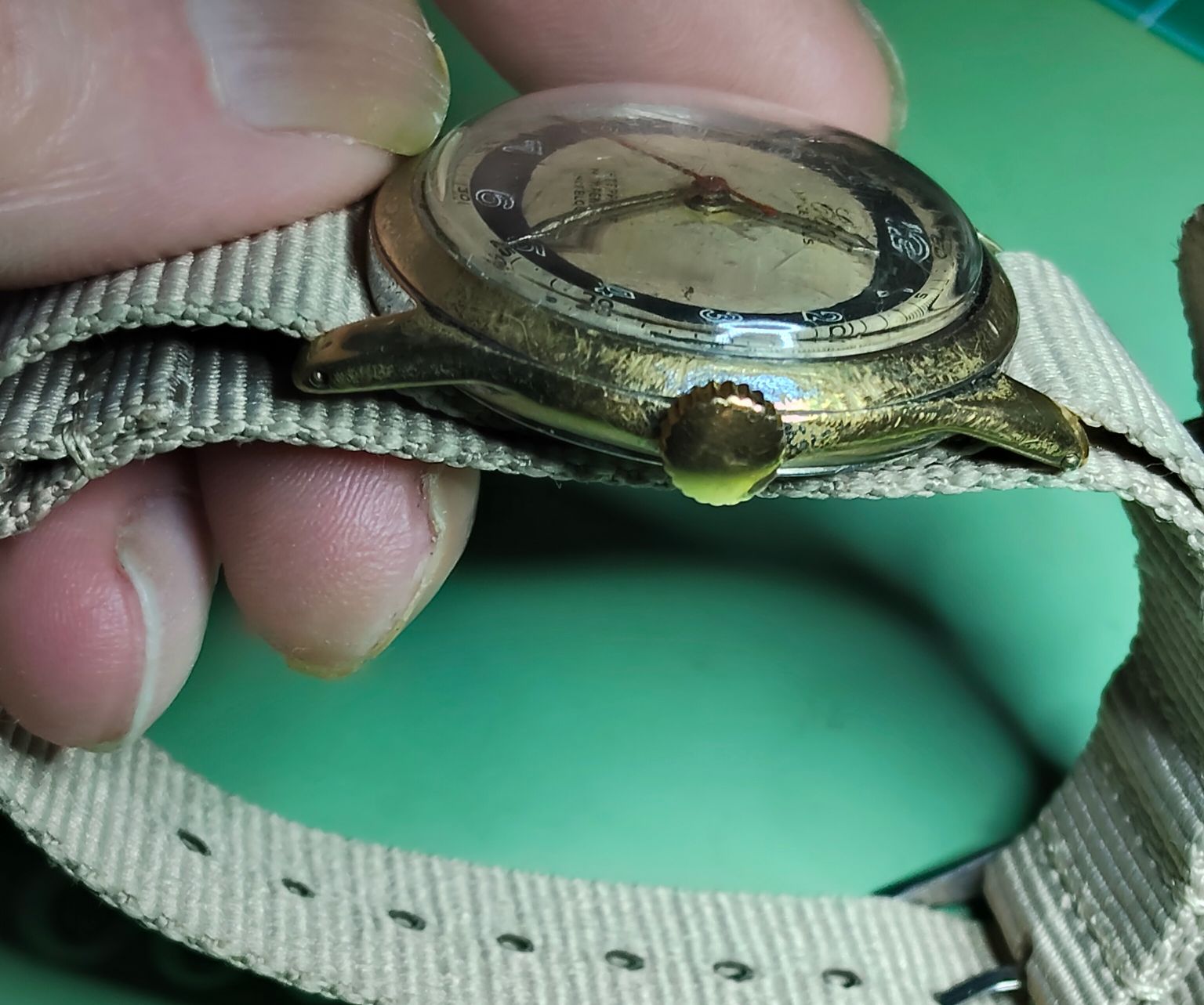Bij dit horloge is de kast opnieuw verchroomd en het glas vervangen.