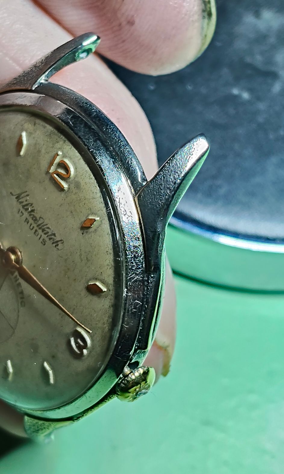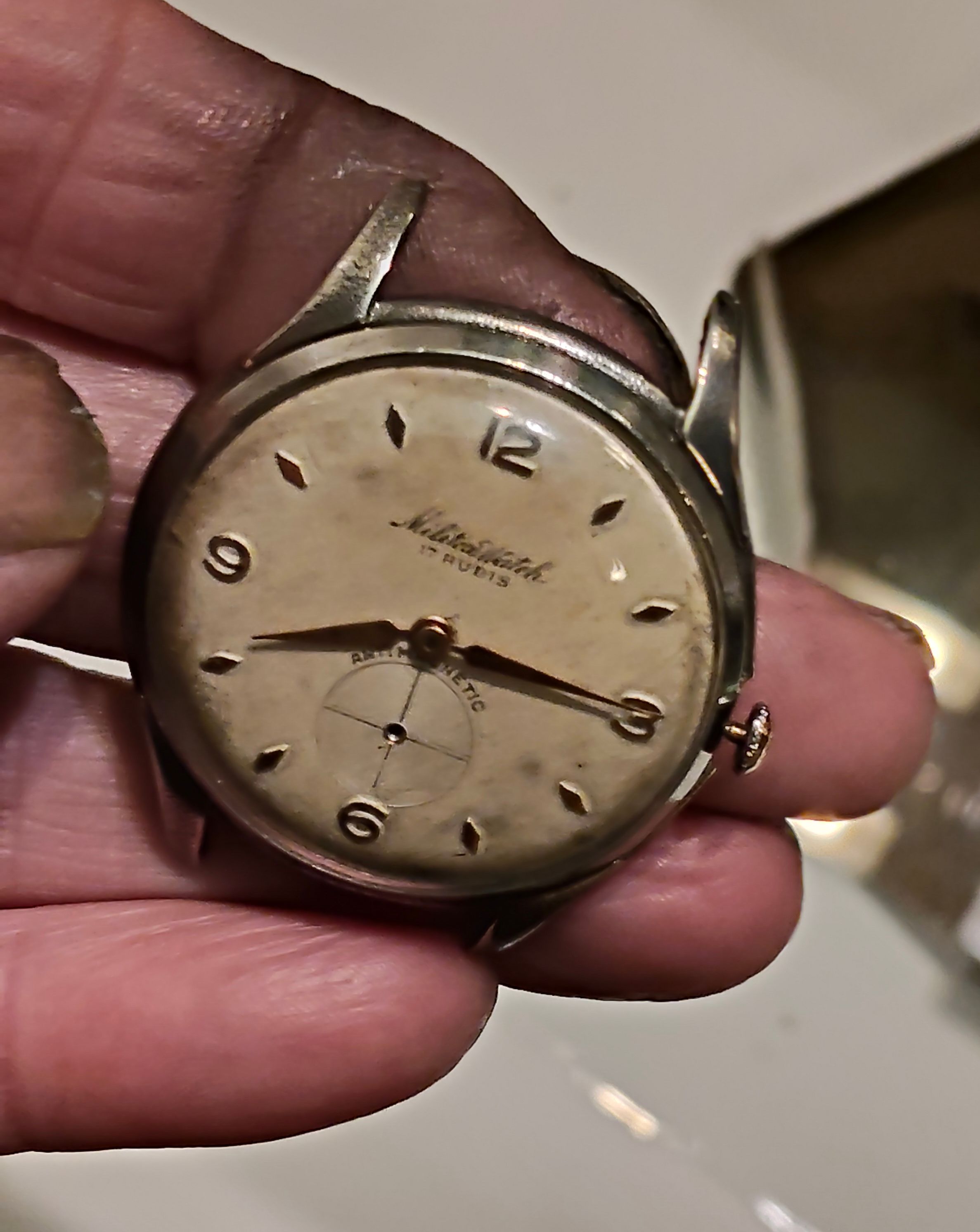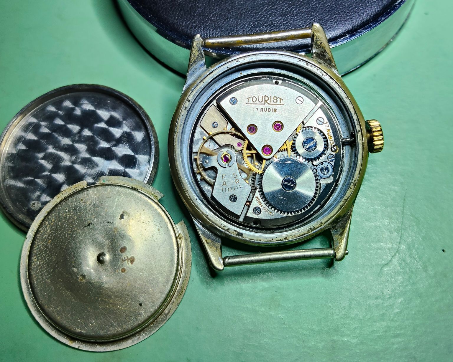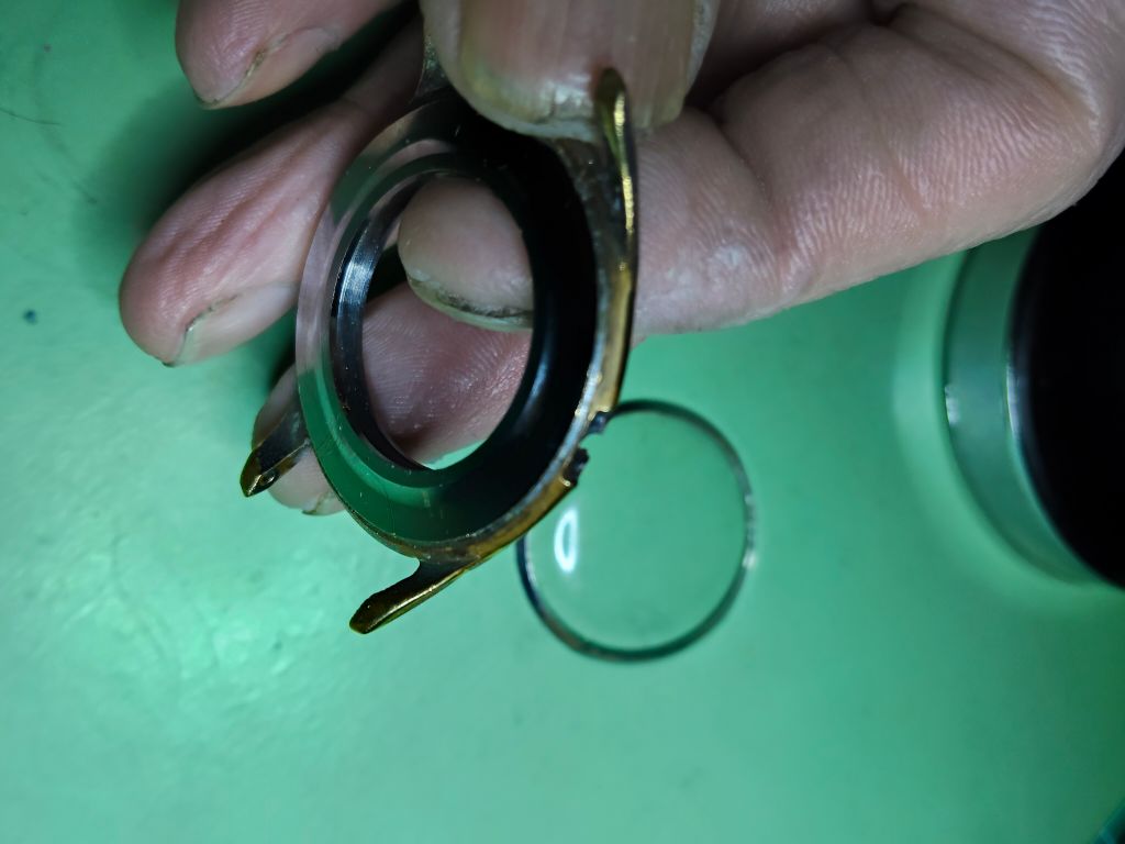 Bij dit horloge is de kast opnieuw verchroomd en het glas vervangen.