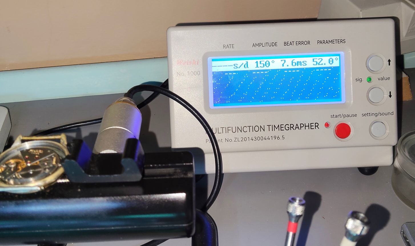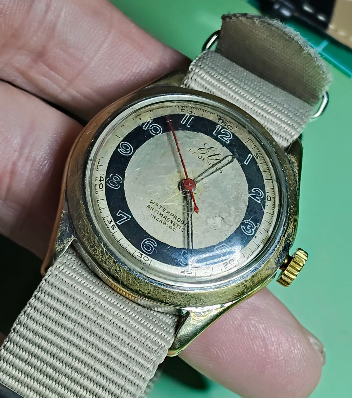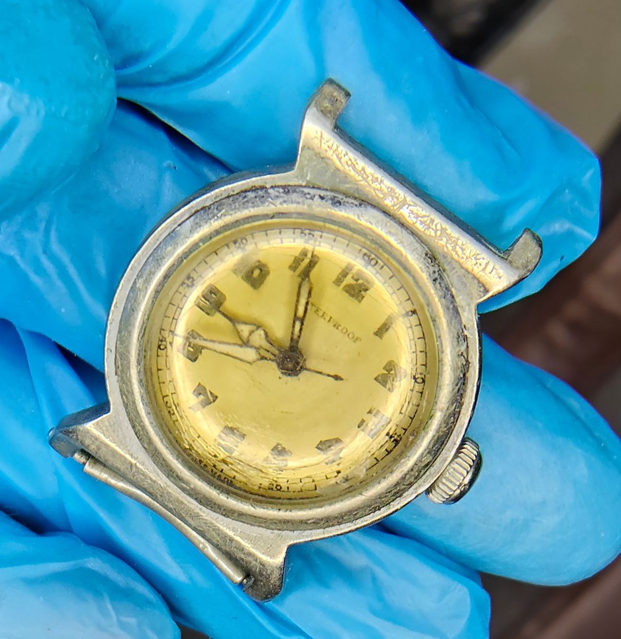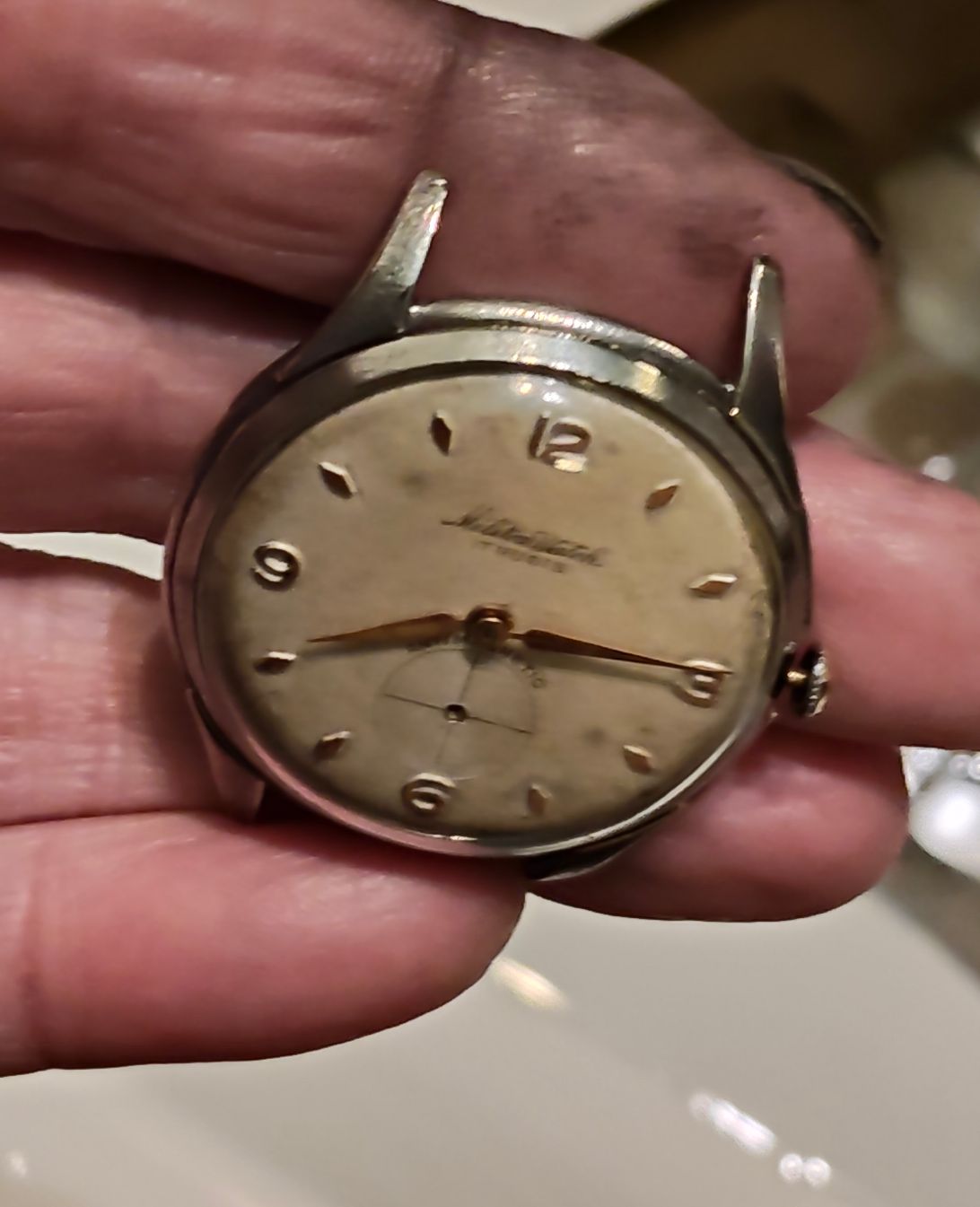 Bij dit horloge is de kast opnieuw verchroomd en het glas vervangen.