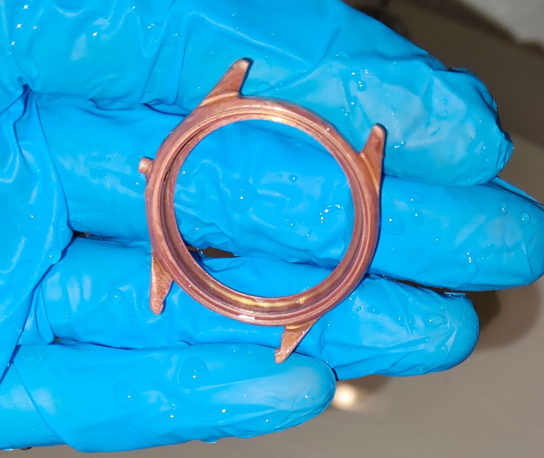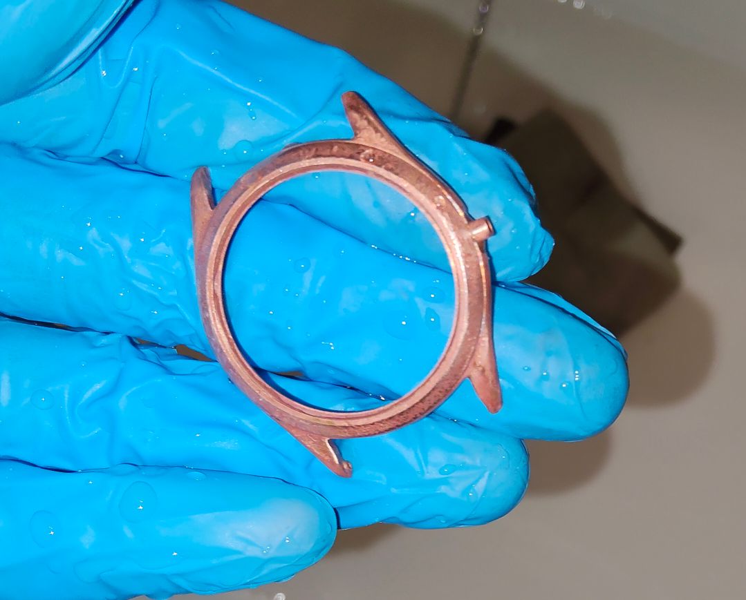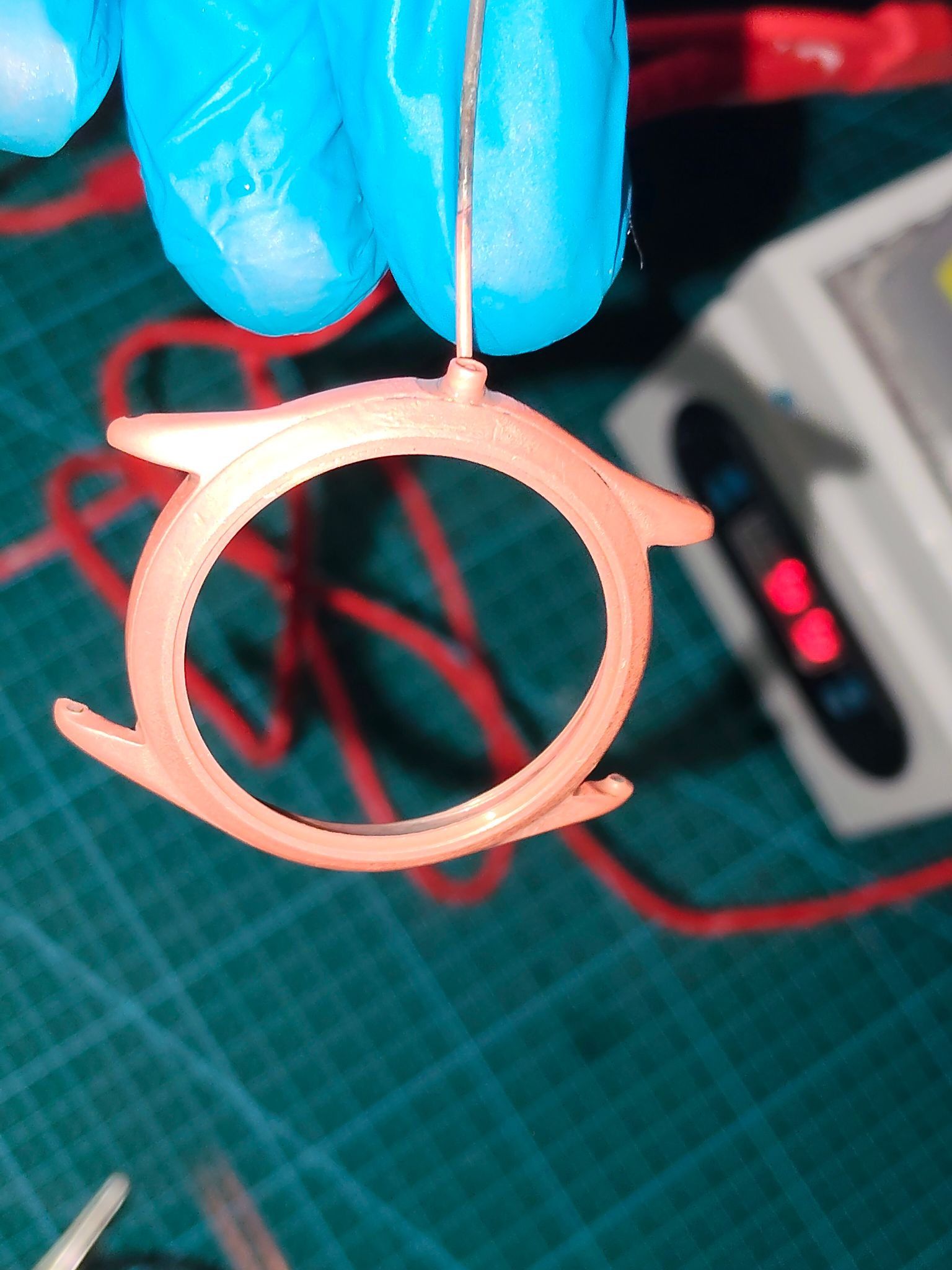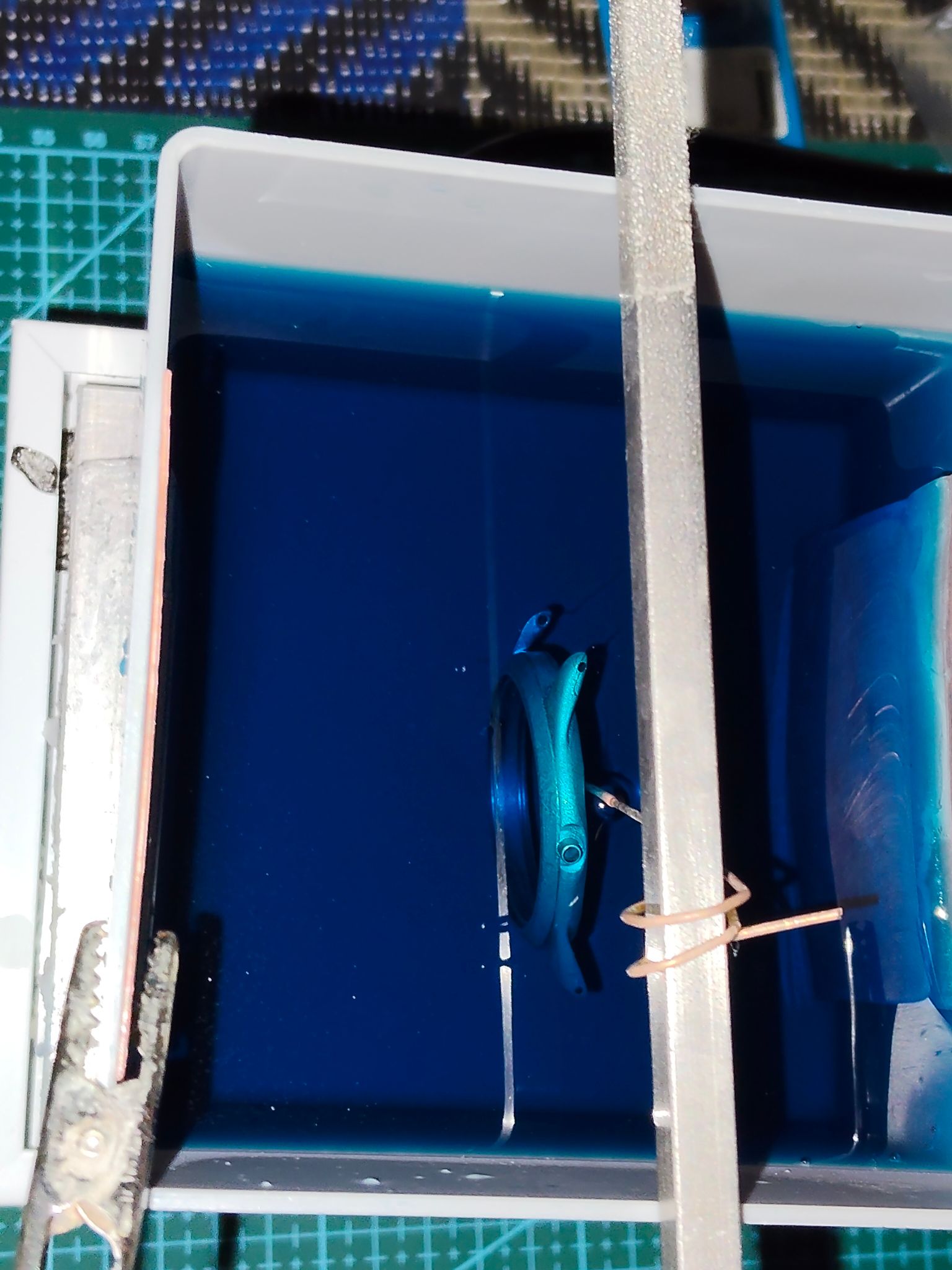 Ik heb de kast van chroom ontdaan, en deze gaat nu een paar minuten in een conditioner en dan ongeveer 2 minuten in het koperbad, voor een eerste laag.