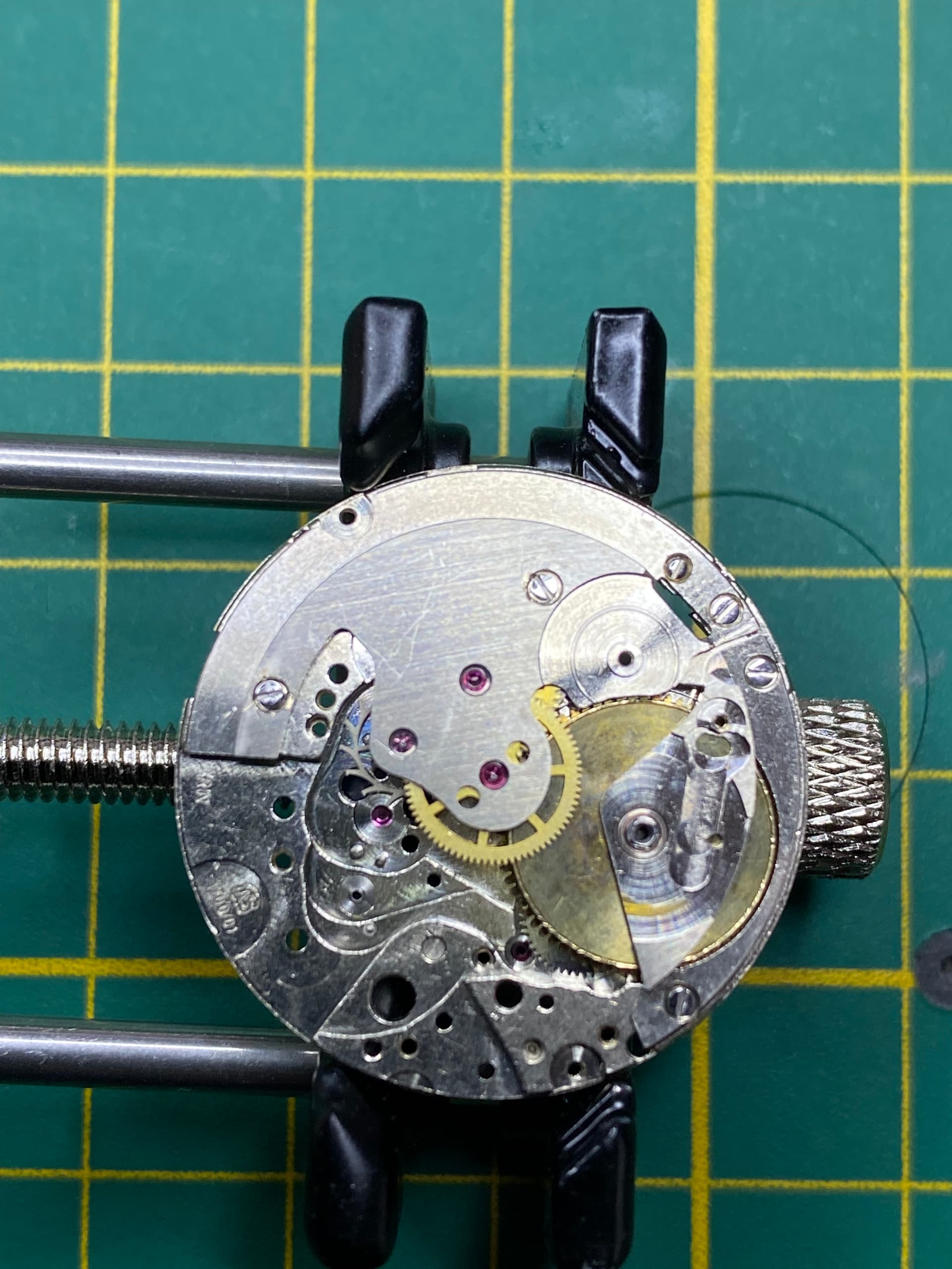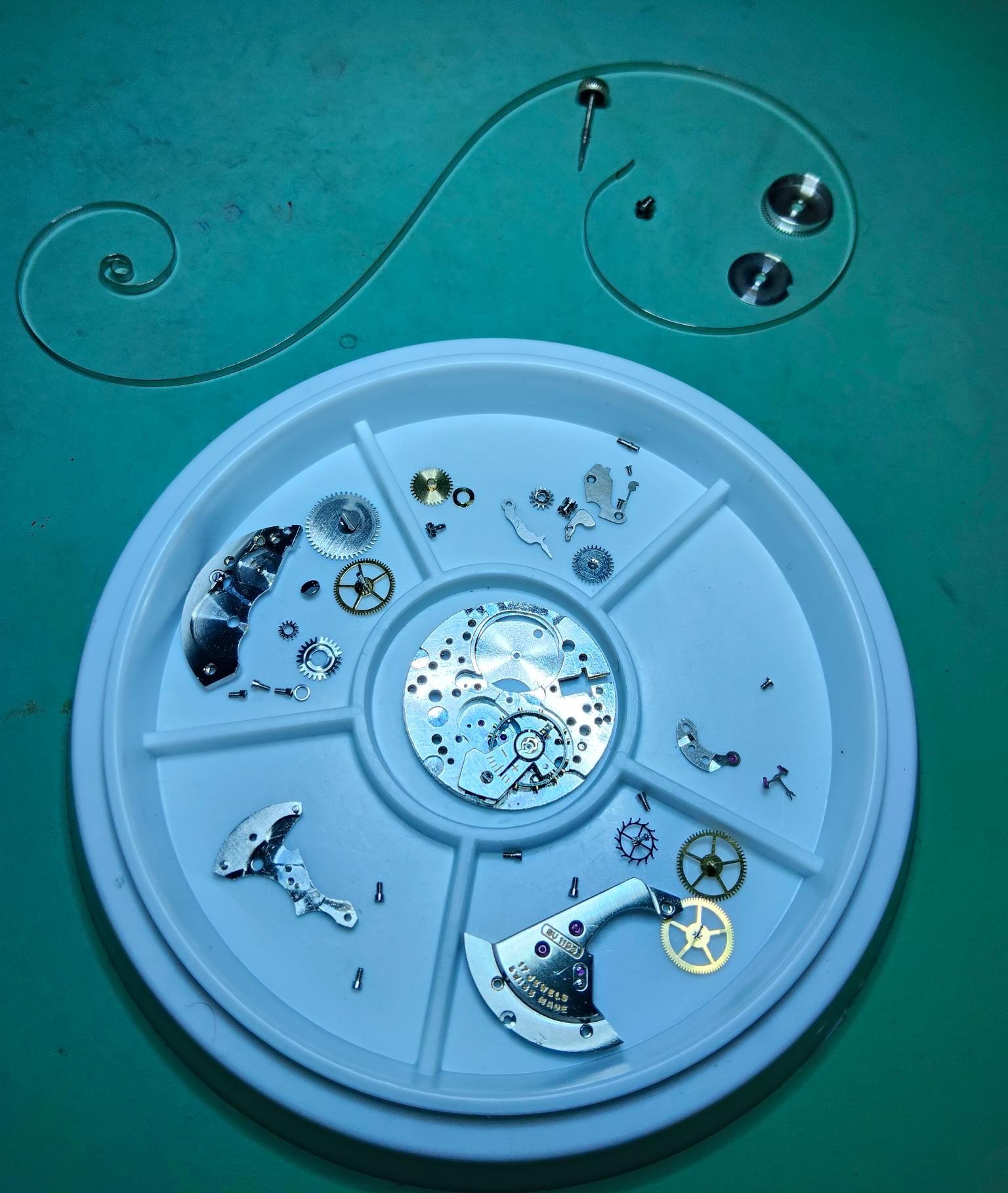 Vandaag de veer weer handmatig in de veerton weten te krijgen en het uurwerk afgebouwd. Eigenlijk weinig problemen gehad op wat vragen mbt olieën en een weggeschoten schroefje na, t eerst genoemde was met google en filmpjes wel op te lossen. Inmiddels ligt die hier nu een kwartiertje te lopen, volgens de timegrapher app pendelt het een beetje tussen de 55 en -30 seconden per dag. amplitude wil nog wel eens iets veranderen van 280 naar 320. Zal dit zich nog iets settelen? Moet de automaat module er nog wel weer bovenop monteren.