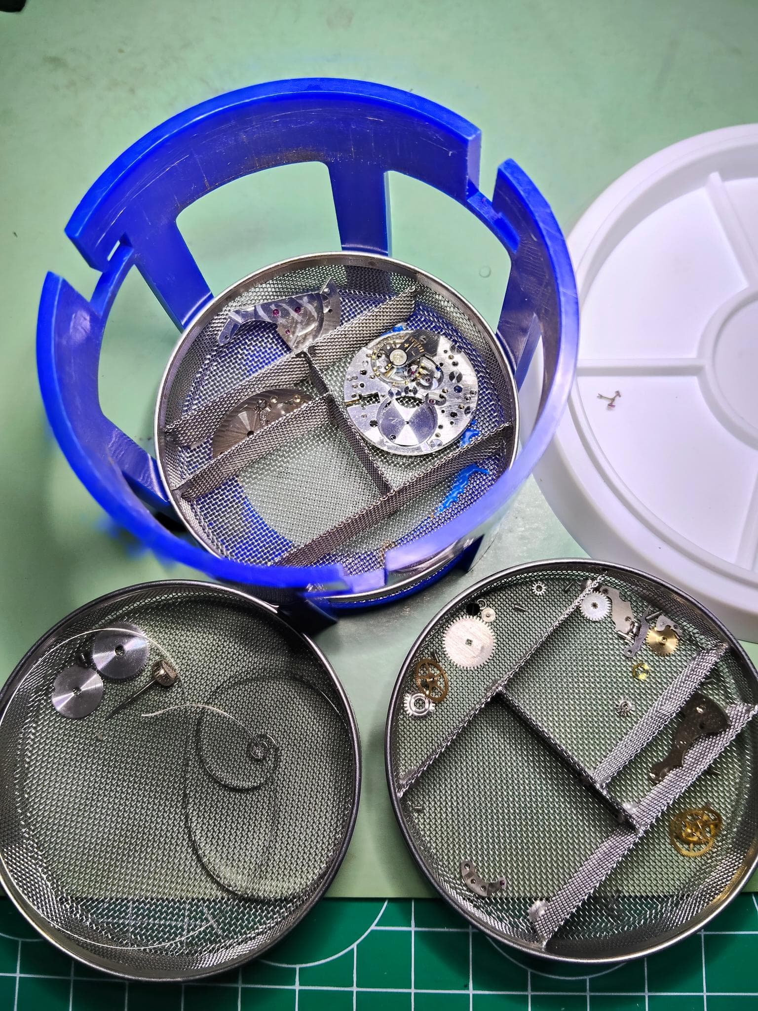 afgelopen weekend begonnen met het schoonmaken van de AS 1700. Eerst handmatig met een kwastje en wasbenzine alle onderdelen zo goed mogelijk schoongemaakt op jullie aanraden, bleef inderdaad een dun wittig filmpje achter na reinigen. aansluitend alles in thee eieren gestopt, die weer in glazen potten met IPA. Daarna in een verse pot met ipa gehangen om alles echt goed te ontvetten. Balans en anker heel kort even in de IPA gedipt.