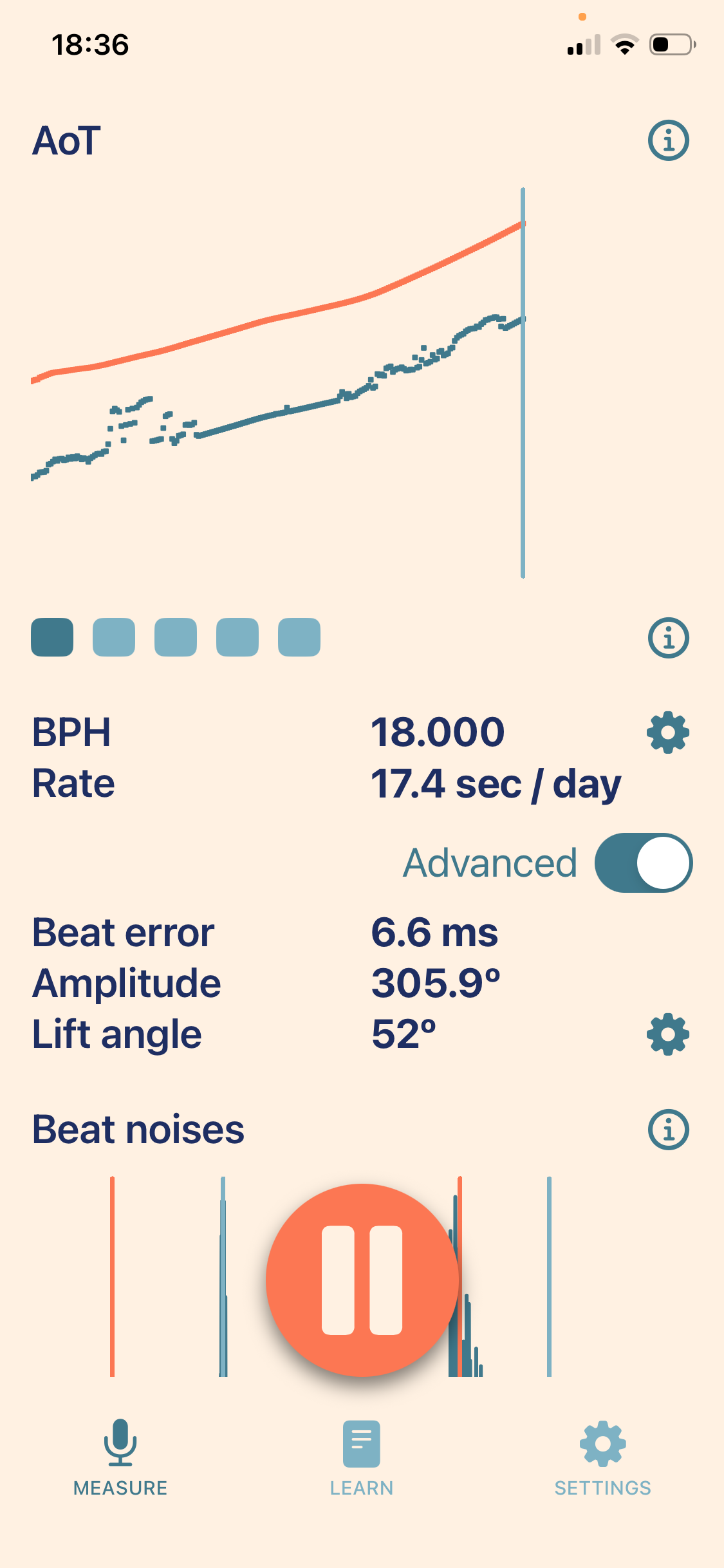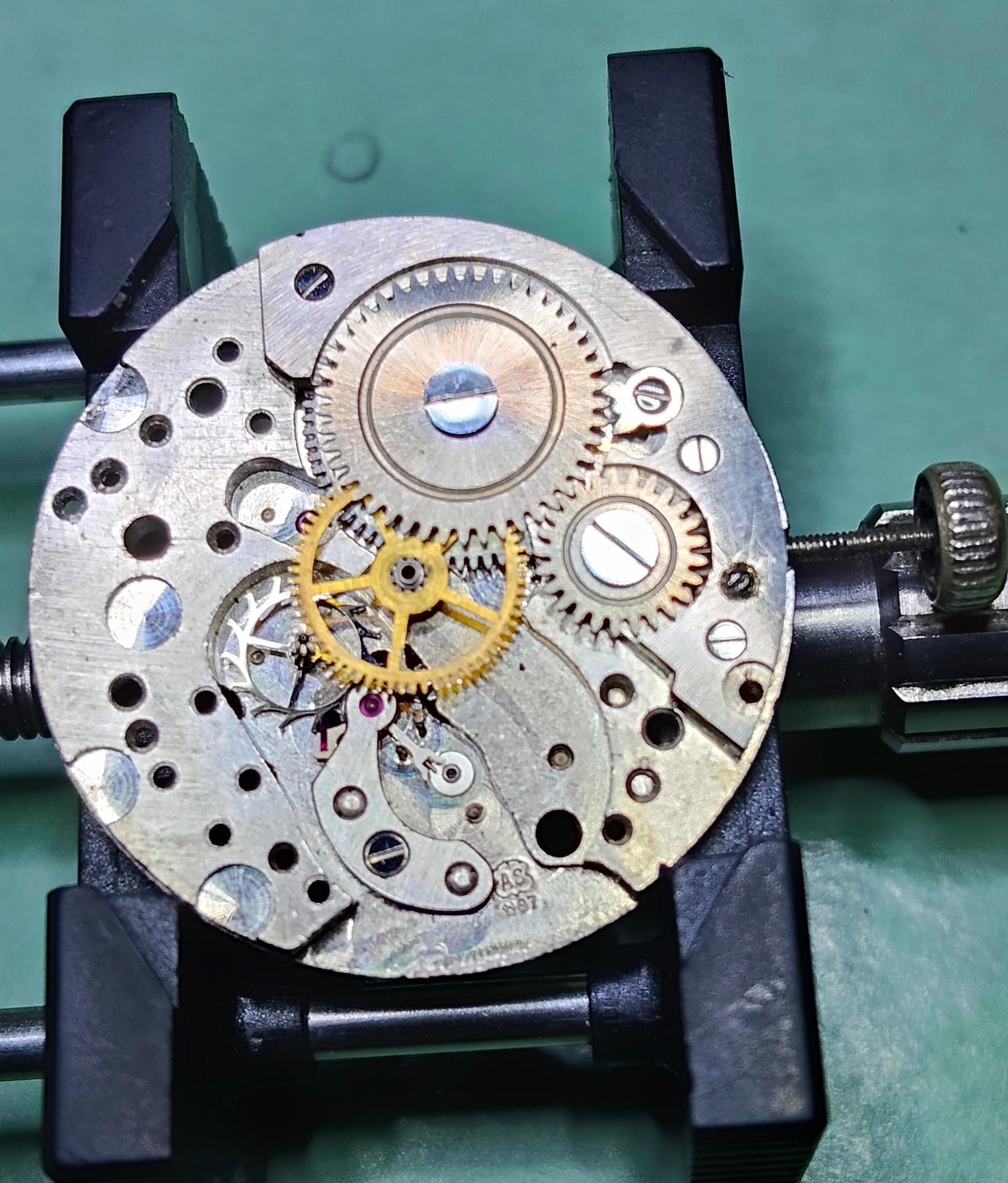 Net nog even gekeken hoe het met de amplitude is nu die even loopt. Krijg hem lastig afgeregeld met de afstelmogelijkheid op de balans. Kan hem zover afregelen dat die rond de +/-5 sec per dag loopt met een amplitude van ongeveer 300. Alleen stijgt of daalt dit dan langzaam, tot de amplitude ineens sterk stijgt naar 360 en die bijvoorbeeld naar de +300 seconden per dag gaat. Waar kan ik dit zoeken? Heb de veerton in elkaar gezet met lichtjes vet in de rand en iets 9010 op de raakvlakken in het midden. alle stenen gesmeerd met 9010 afgezien van de 2 anker stenen, ‘impuls jewel’. Voor de rest het smeerschema van AS zo goed mogelijk geprobeerd aan te houden.