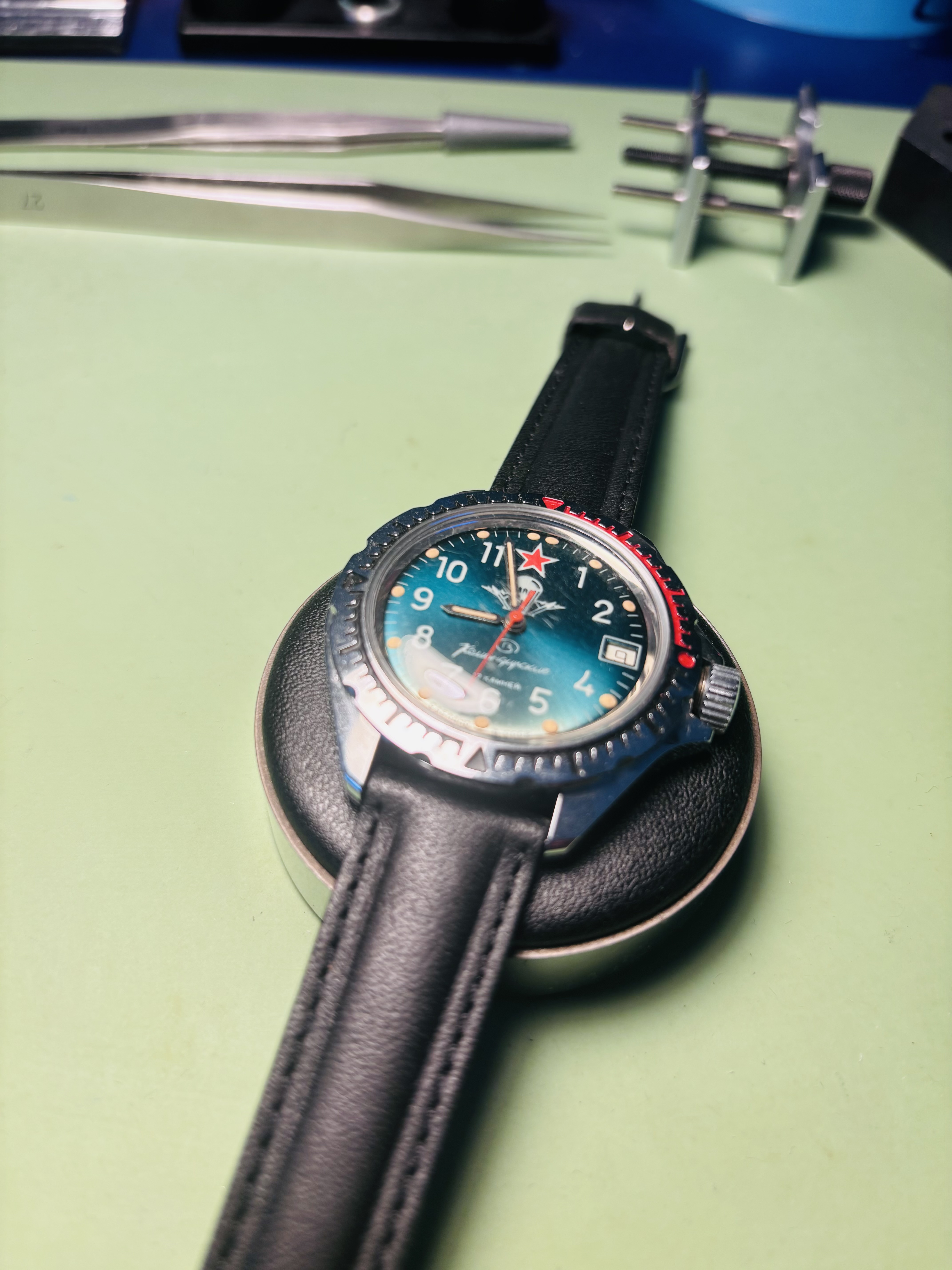 Ik moet eind deze week toch naar de horlogeboer in mijn dorp om een nieuwe Ronda te laten plaatsen in mijn Hanowa Grenadier. Hij wil vast ook wel even naar deze kijken.
