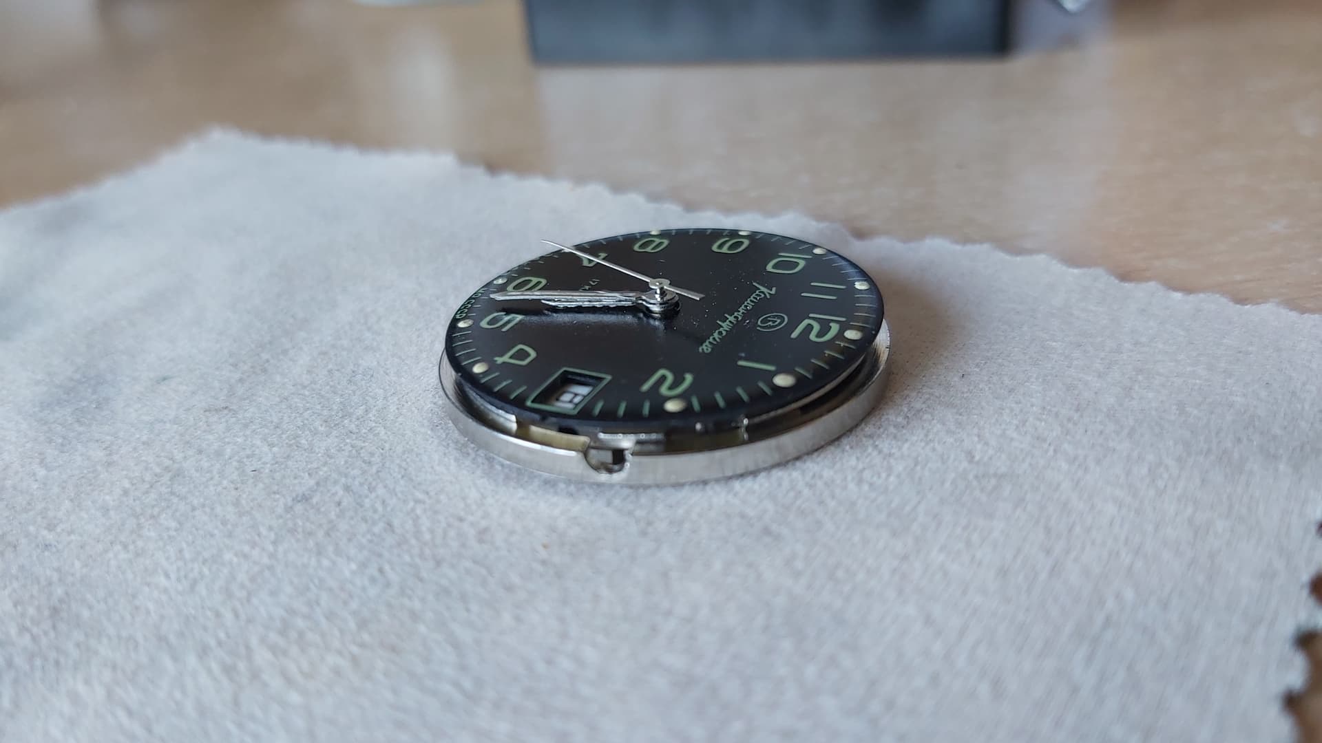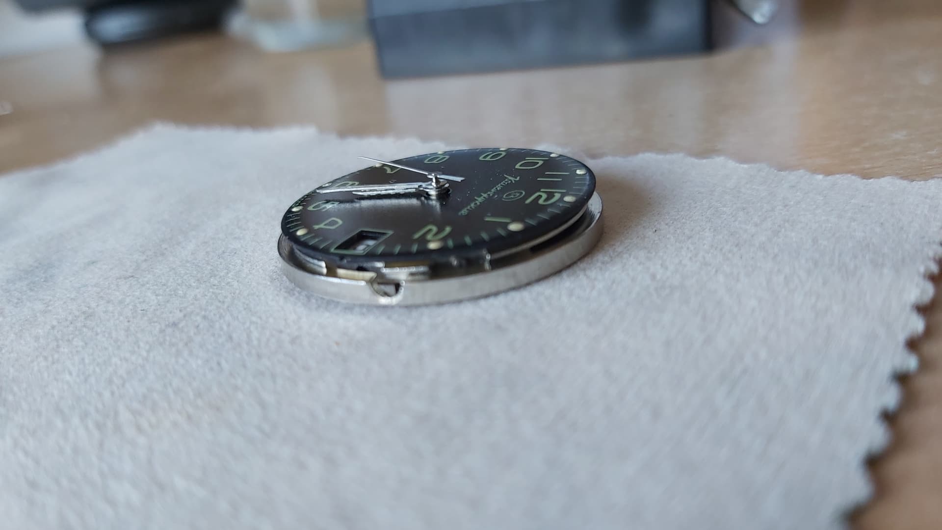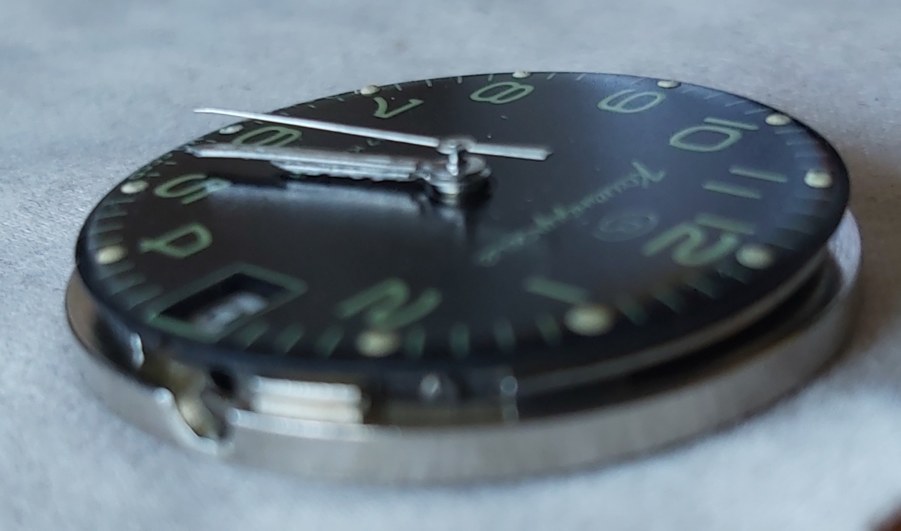 De lume lijkt me toch wat aan de dikke kant en je wijzerplaat ligt er ook mee bezaaid. Voor mooi zou de urenwijzer iets dieper gezet kunnen worden, daarmee is er ook wat ruimte voor je minutenwijzer.