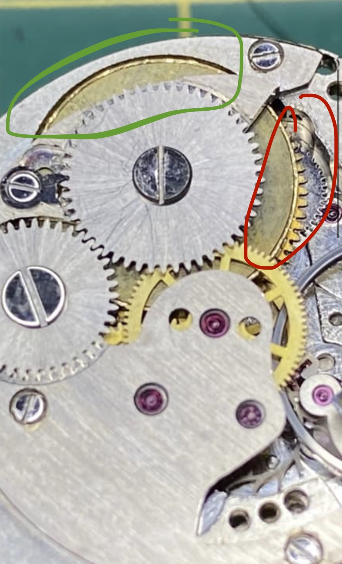 Gisteren het eerste deel opgebouwd, ging ietwat moeizaam. wel een uur liggen klooien met de grote brug waar oa escapement wiel onder zit. Elke keer liep die vast zodra je de brug iets aandrukte. Met de loupe gekeken of alle tappen wel in de jewels vielen, was het geval. Vanaf de achterkant bleek dat er een heel fijn houtvezeltje achter was gebleven na het peggen in het onderste jewel waardoor er heen opwaardse speling meer op kon zitten en je de boel dus sandwichde.
