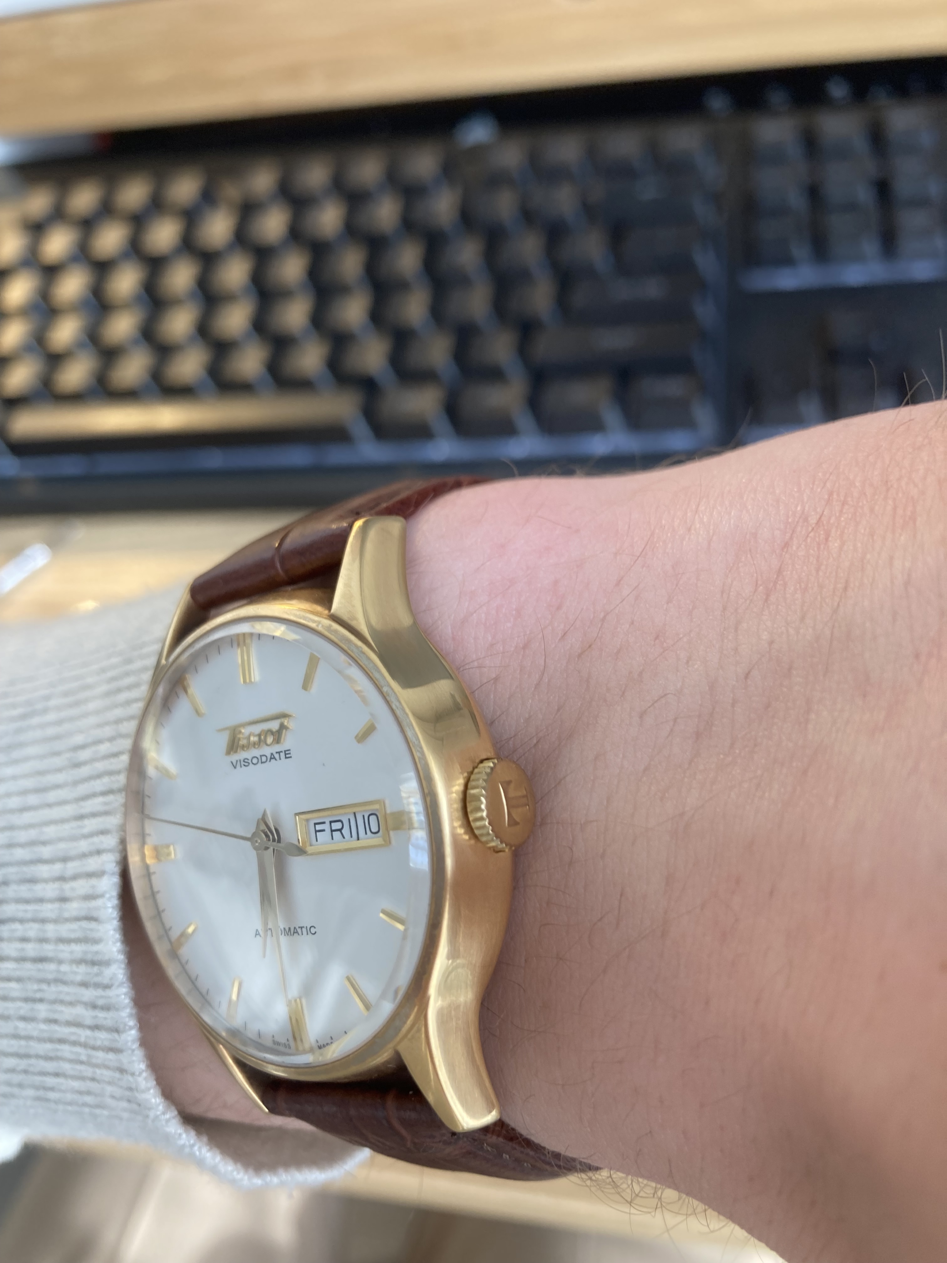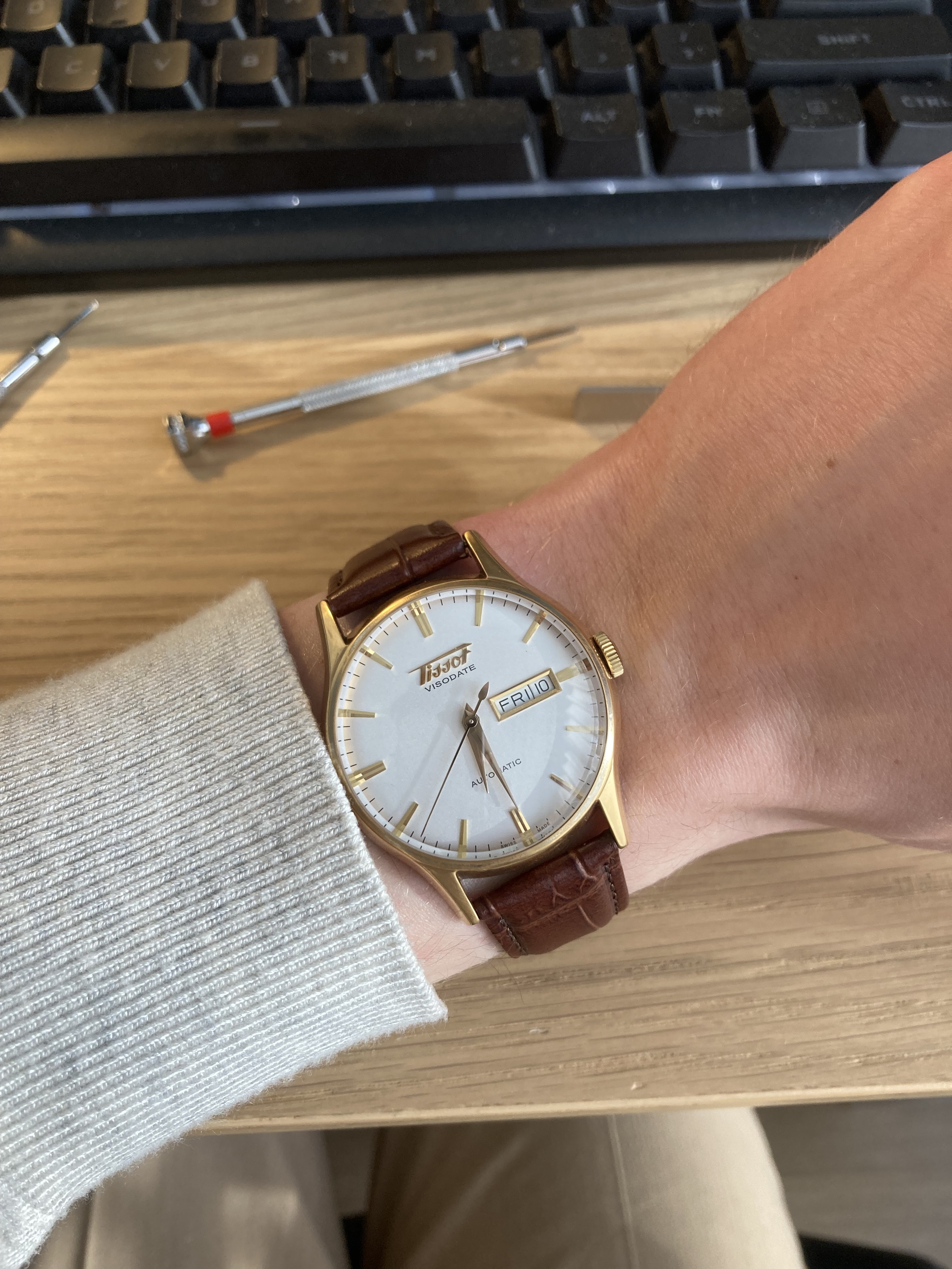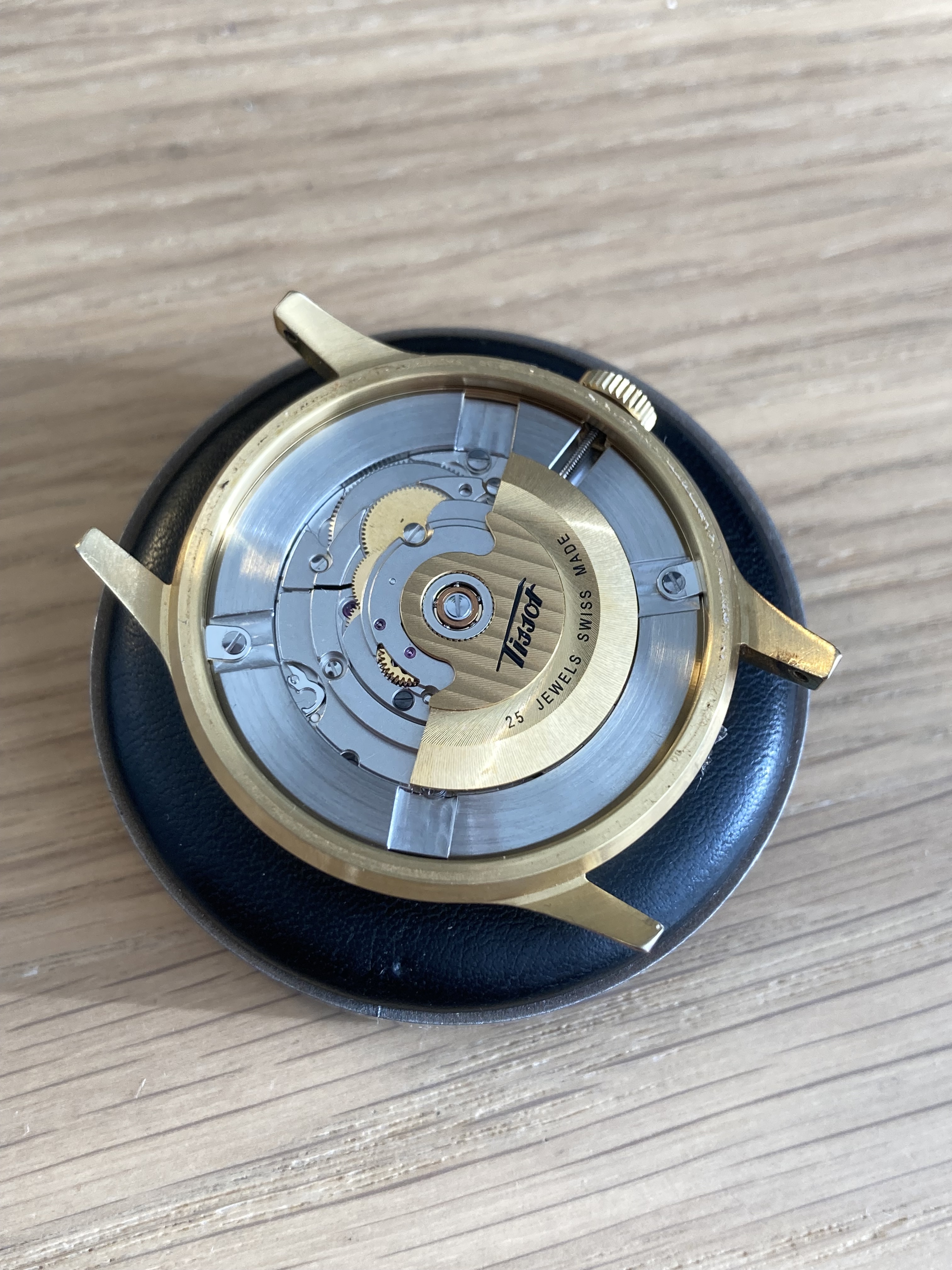 Deze horloges hadden een productiefout van Tissot, waarbij de goudlaag heel snel versleet, tot er bijna geen goud meer op zat. Deze kast is destijds onder garantie door Tissot vervangen, maar dat betekende dus dat ik een extra kast over had.