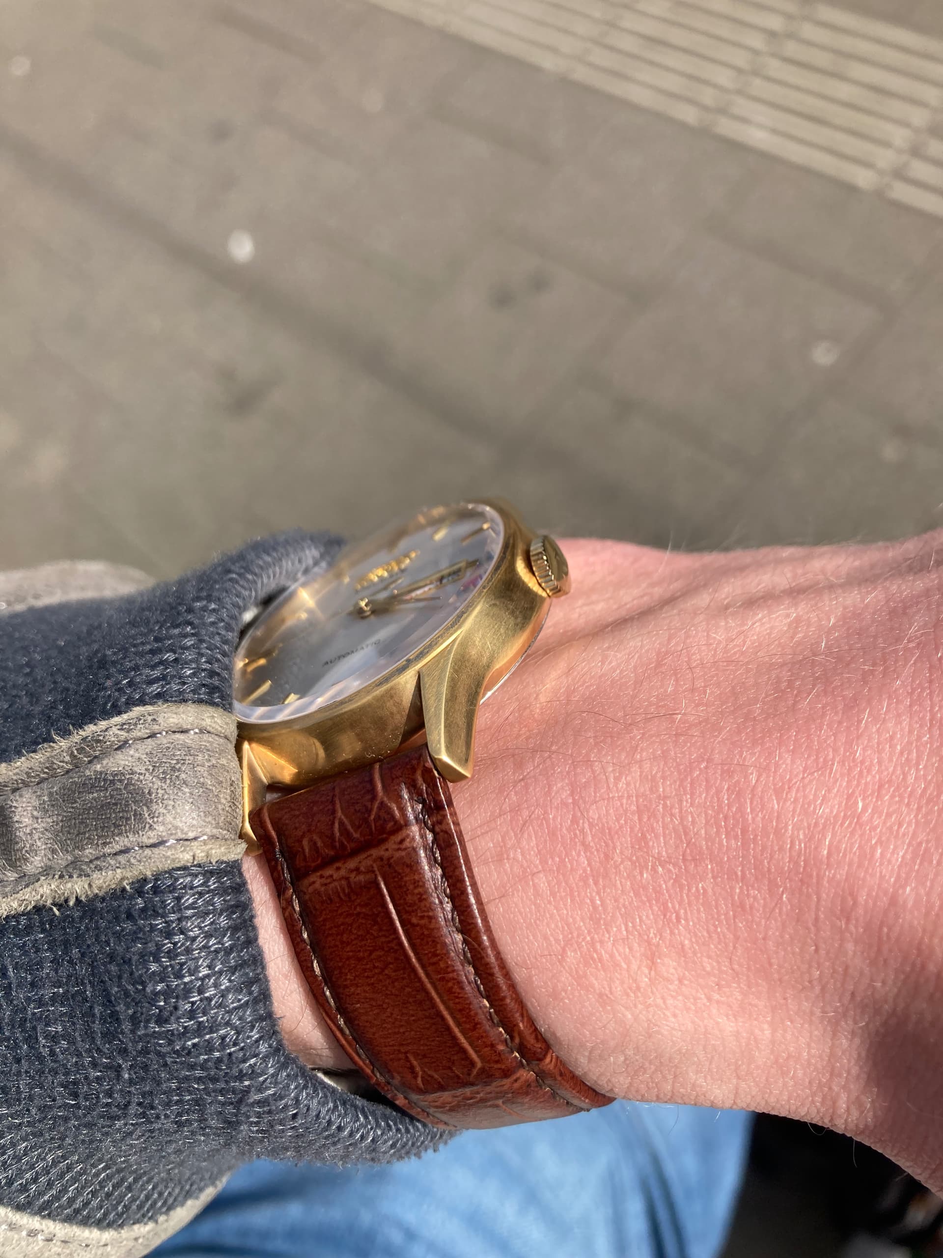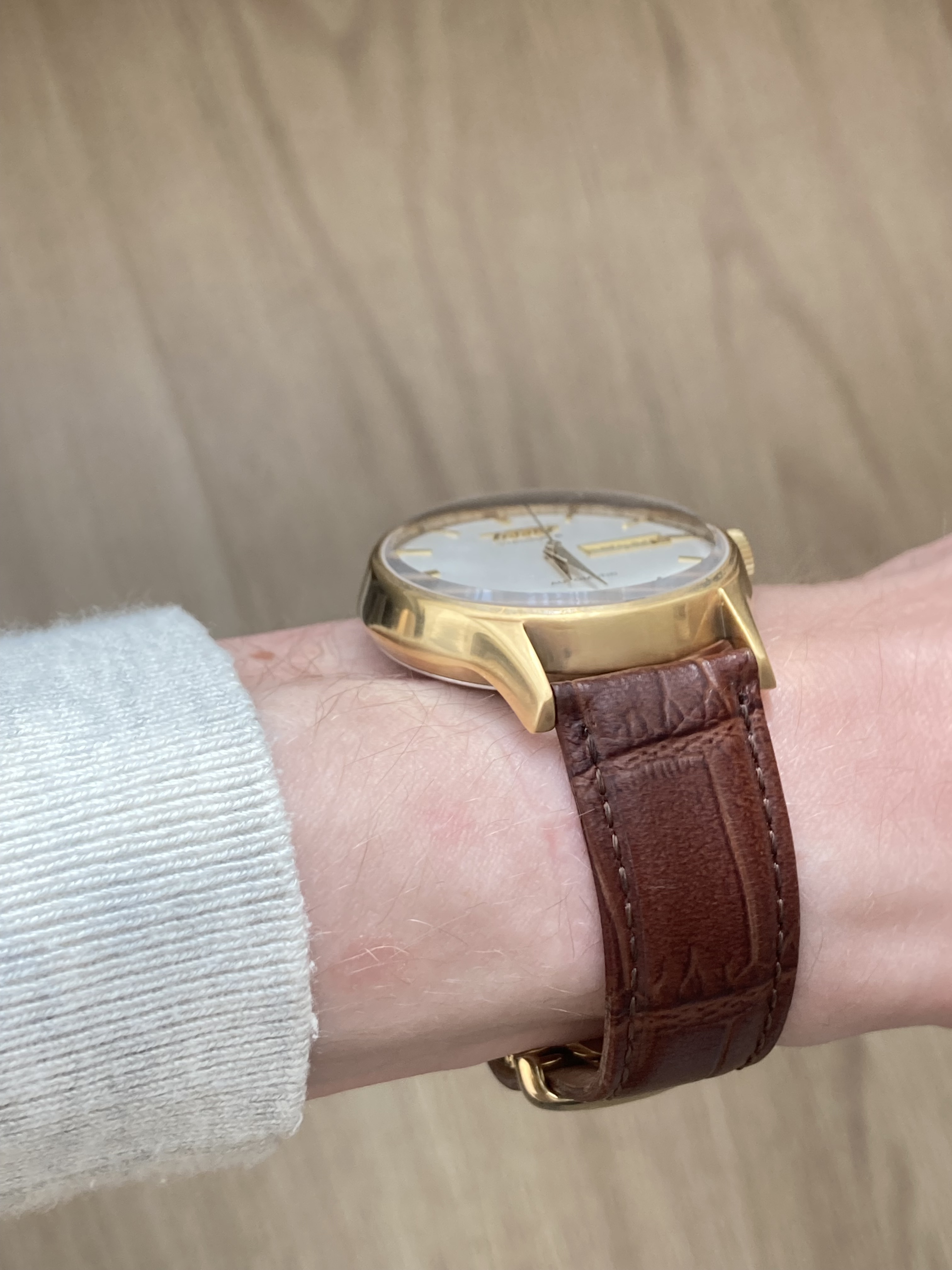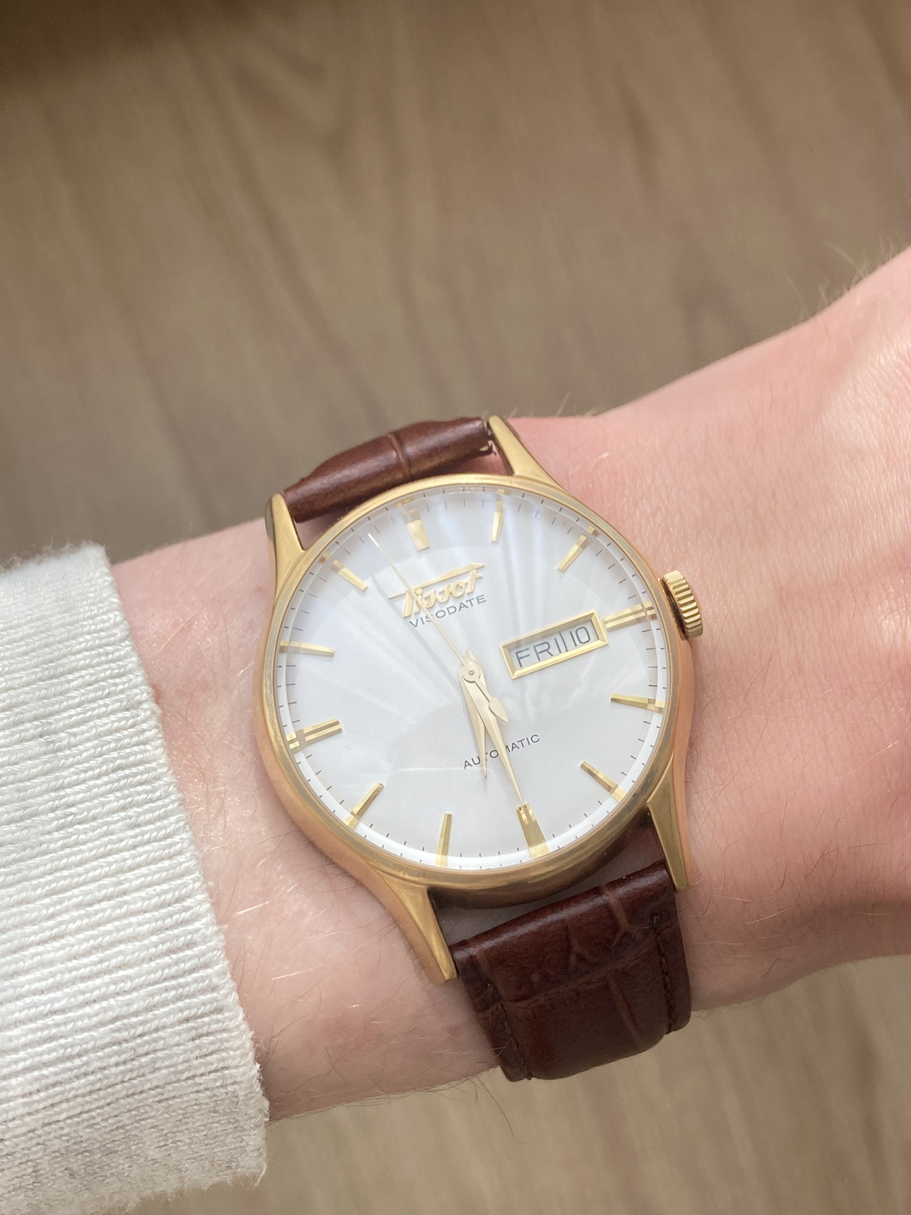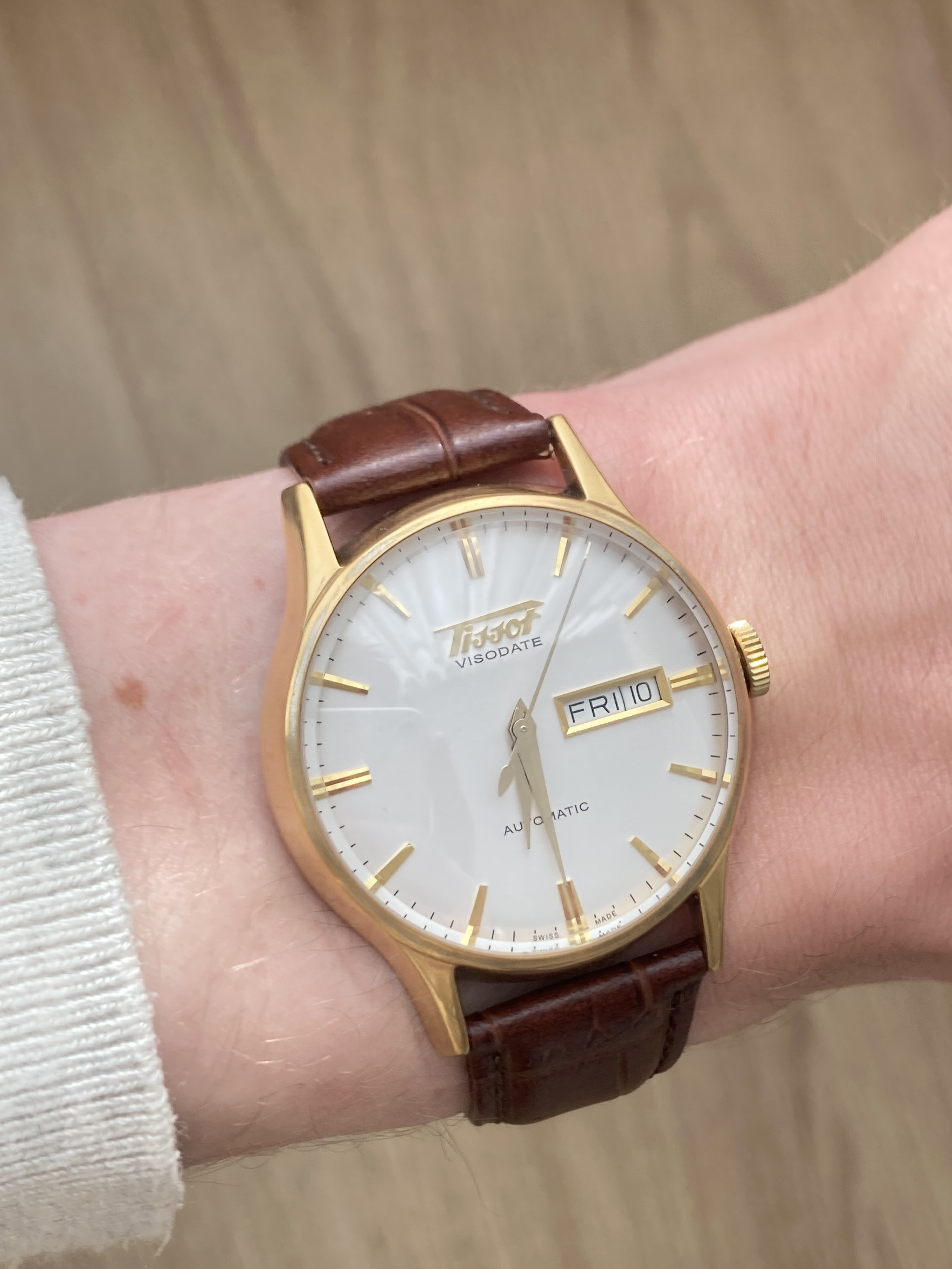 Deze horloges hadden een productiefout van Tissot, waarbij de goudlaag heel snel versleet, tot er bijna geen goud meer op zat. Deze kast is destijds onder garantie door Tissot vervangen, maar dat betekende dus dat ik een extra kast over had.