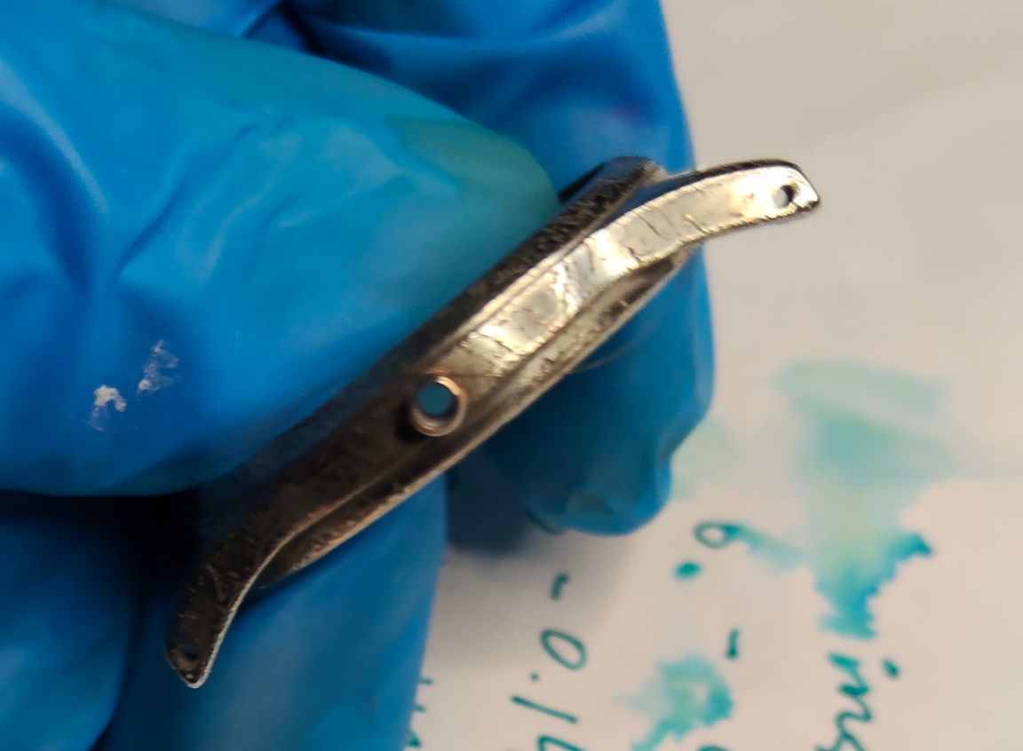De nikkelbehandeling zit erop. Ook nikkel vult weinig op maar ik hou het hierbij: vier lagen nikkel en ik zie weinig verschil.