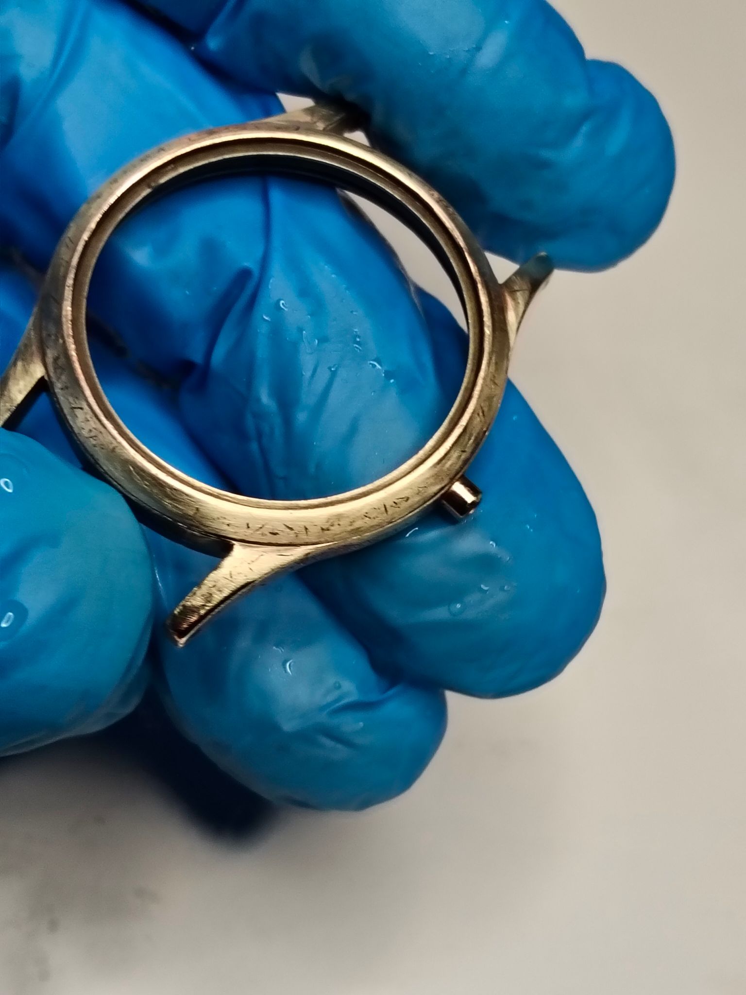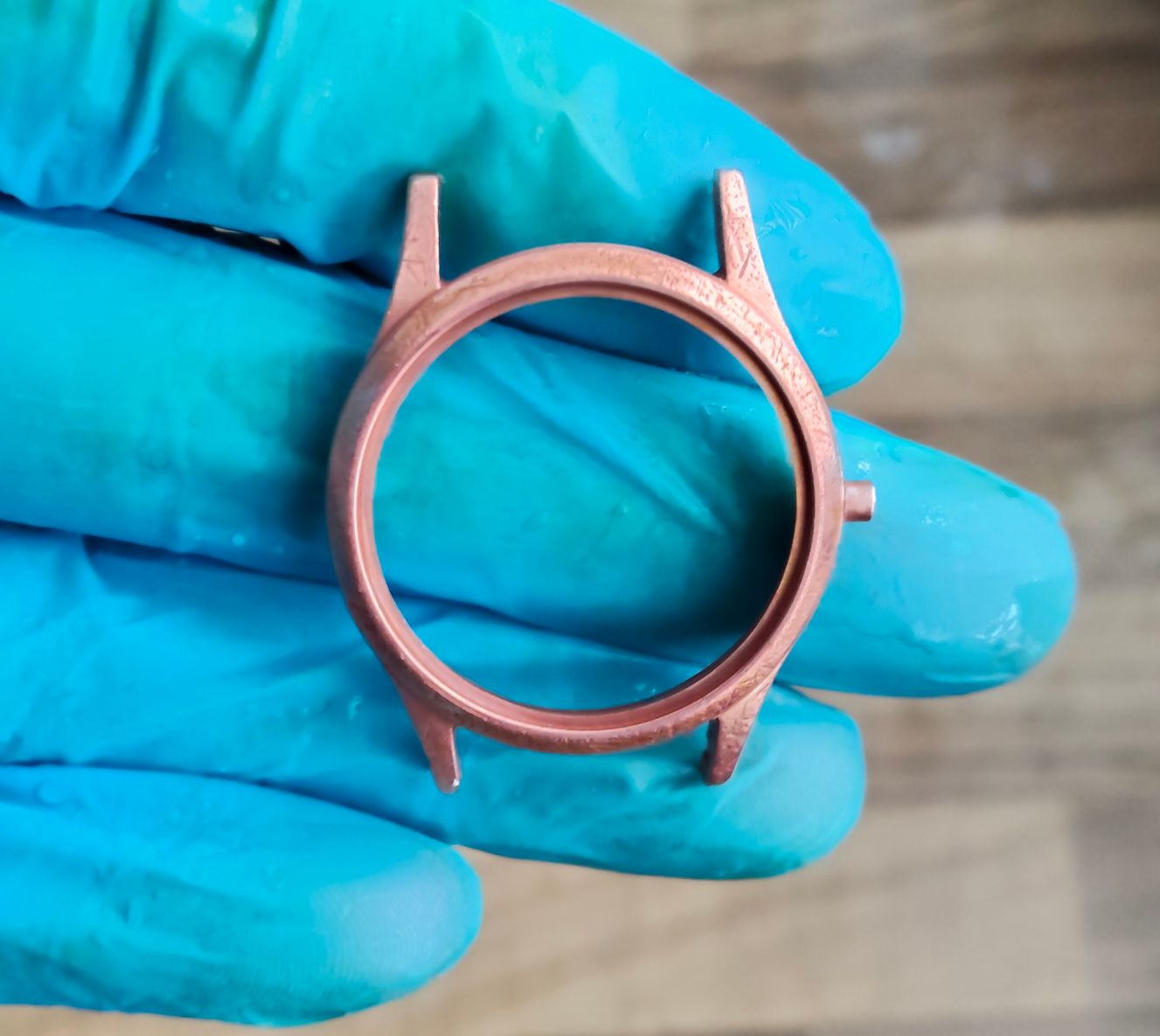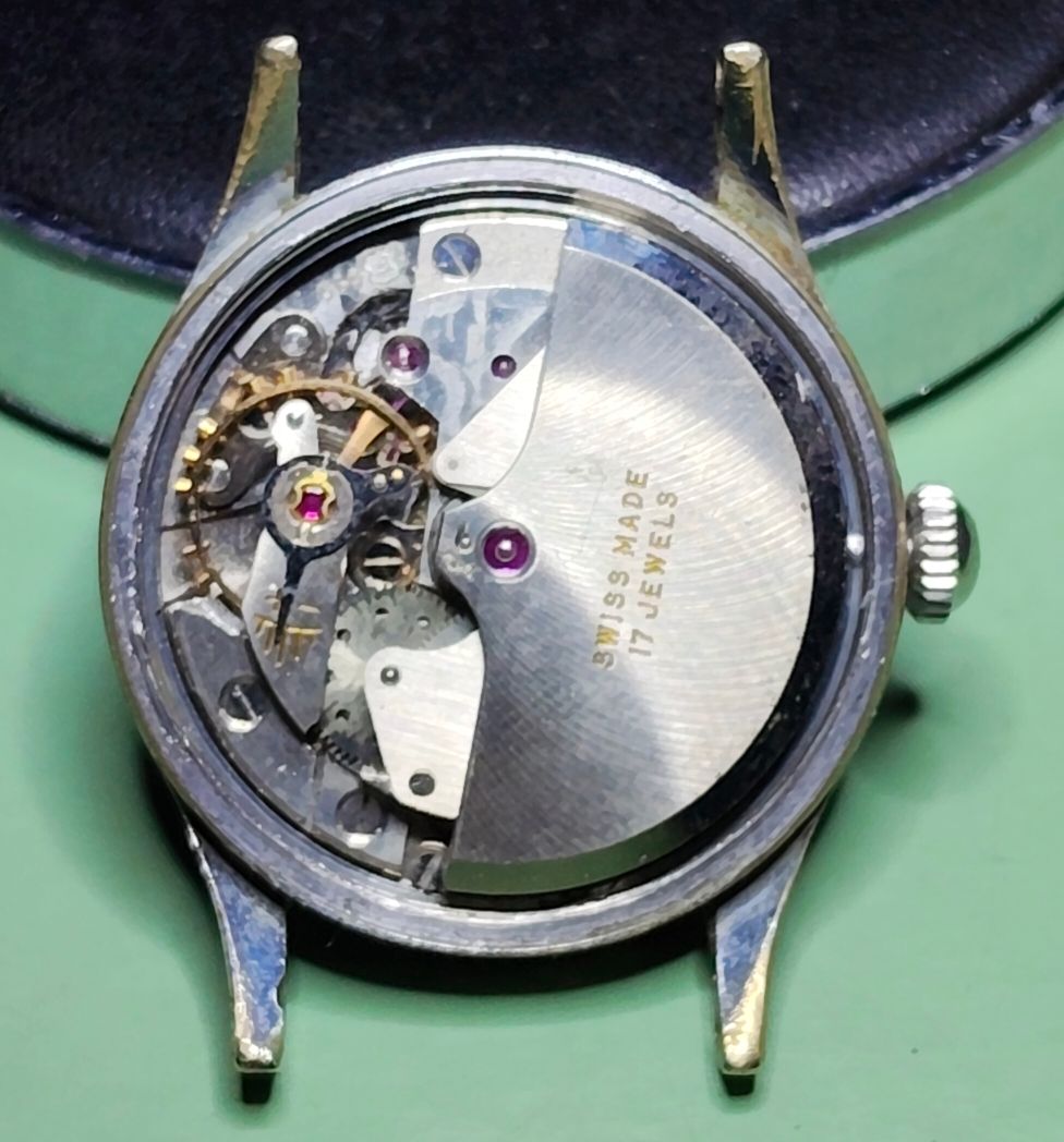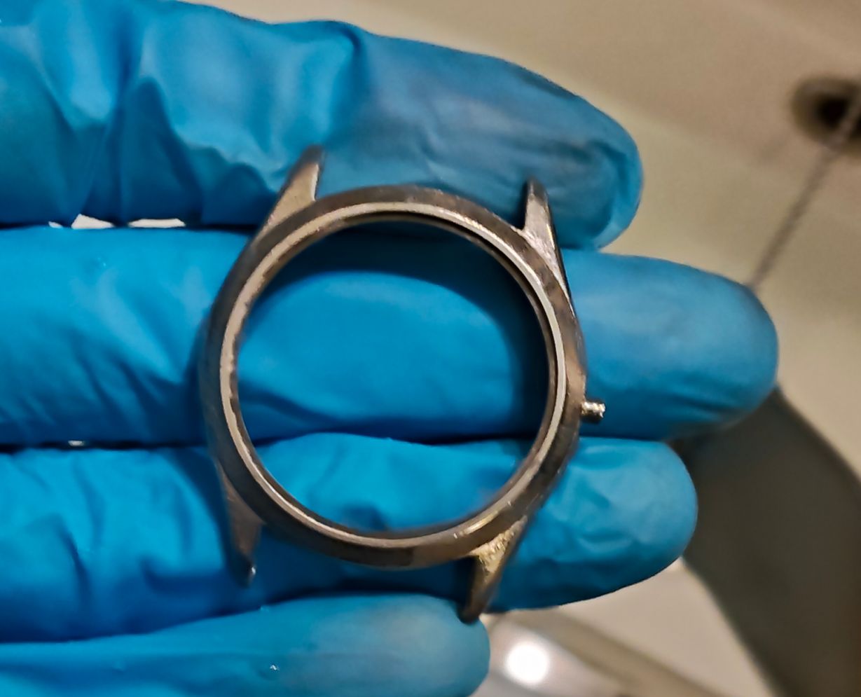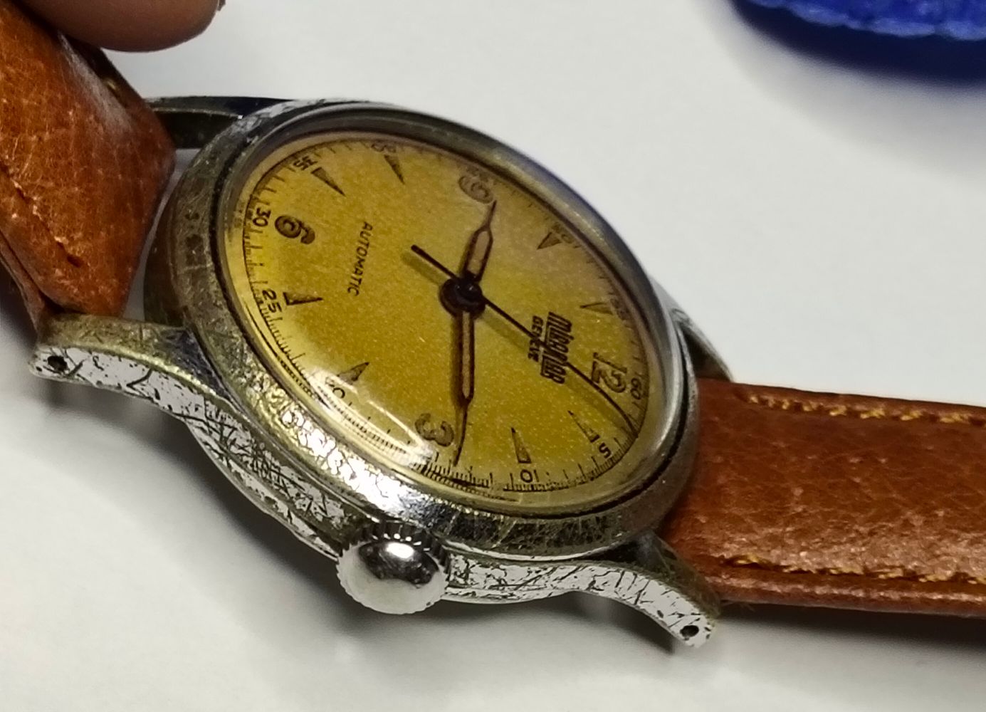 Bij deze Miramar wil ik het zo goed mogelijk doen, misschien wel 10 lagen koper. Ik wil gewoon dat het goed opknapt. Het is een mooi horloge, alleen de kast is volledig versleten; daar ga ik morgen iets aan doen.