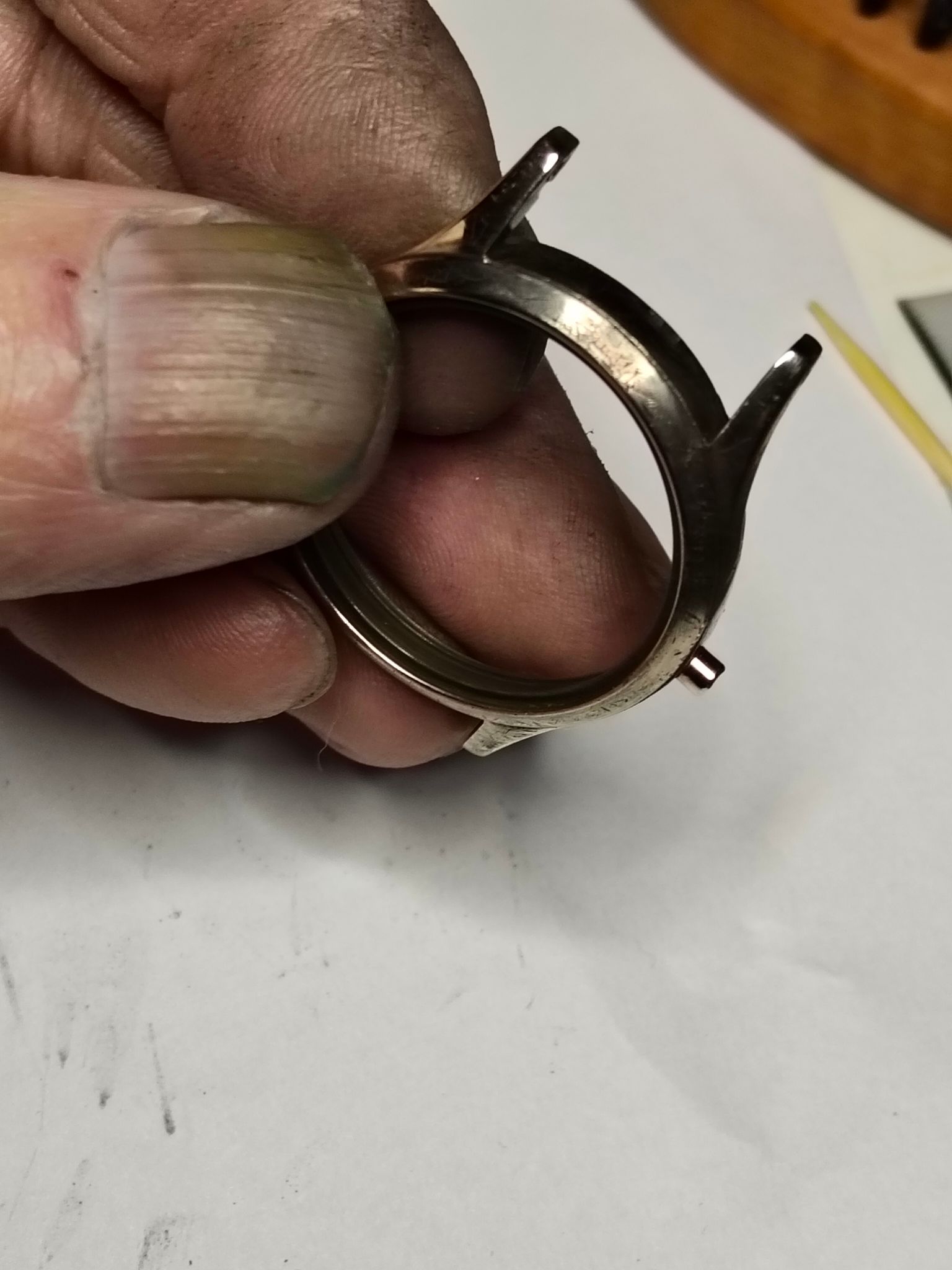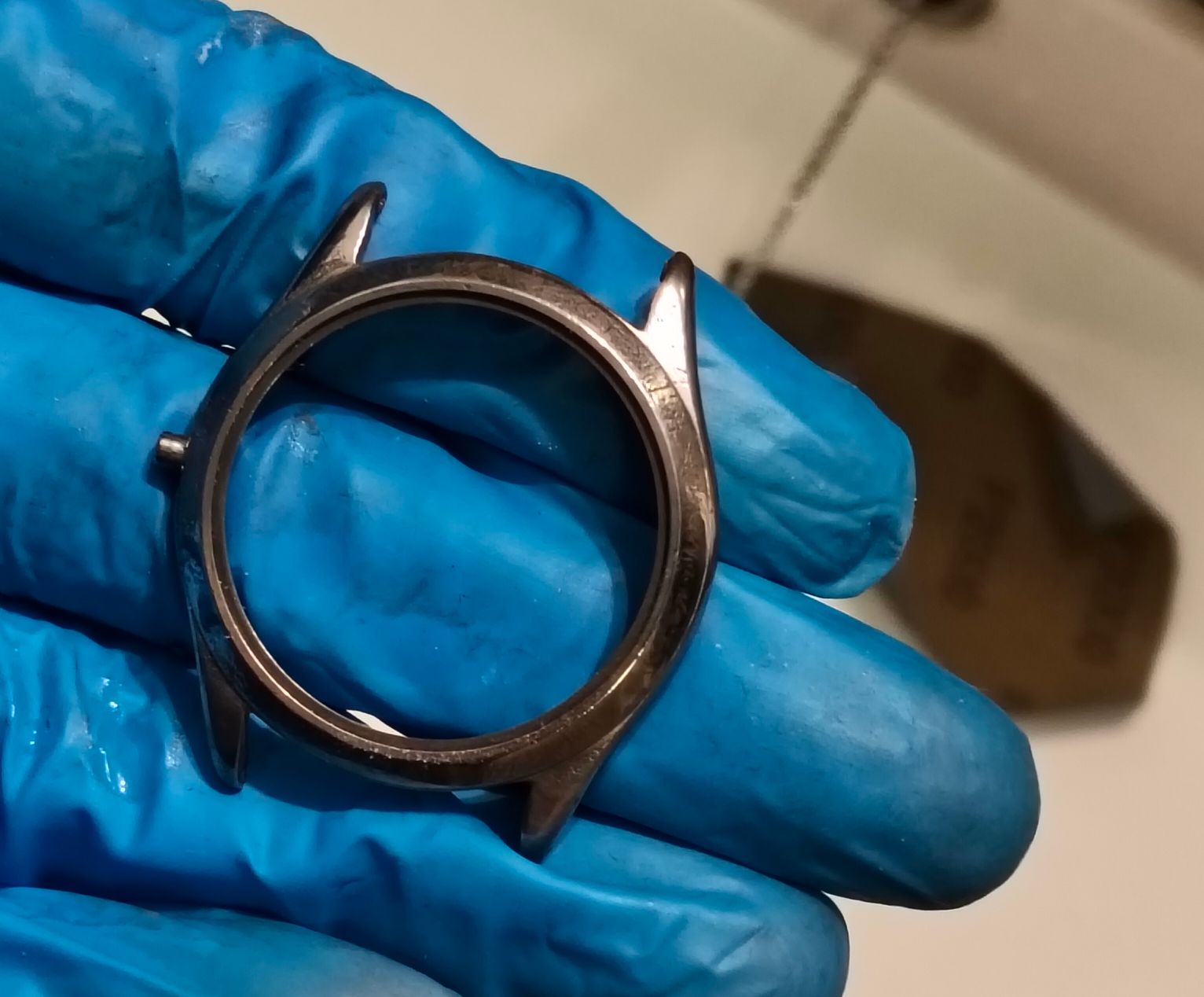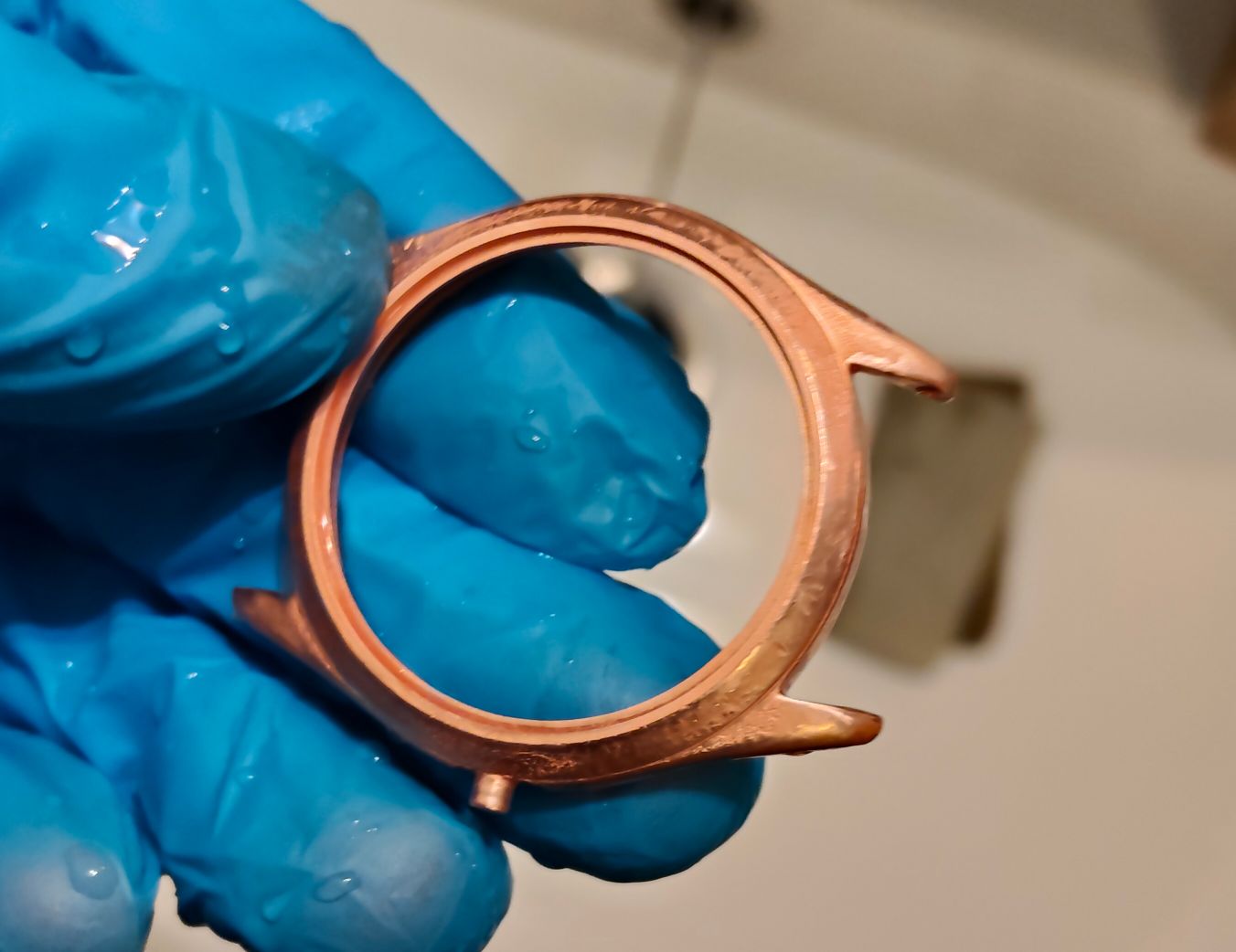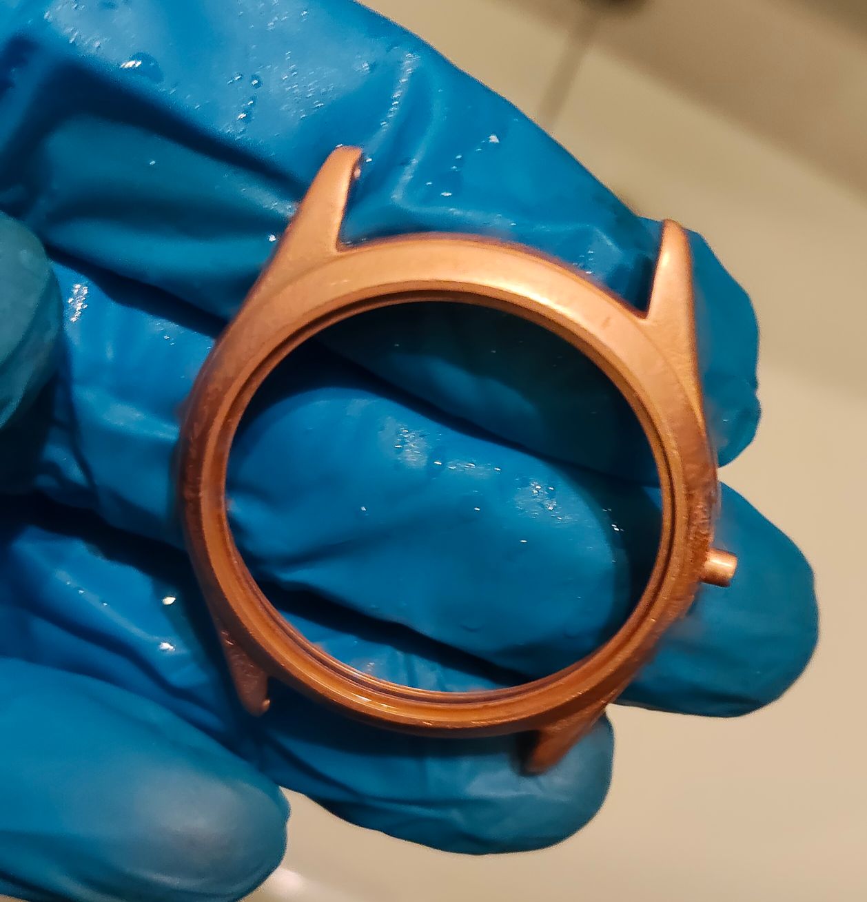 Bij deze Miramar wil ik het zo goed mogelijk doen, misschien wel 10 lagen koper. Ik wil gewoon dat het goed opknapt. Het is een mooi horloge, alleen de kast is volledig versleten; daar ga ik morgen iets aan doen.