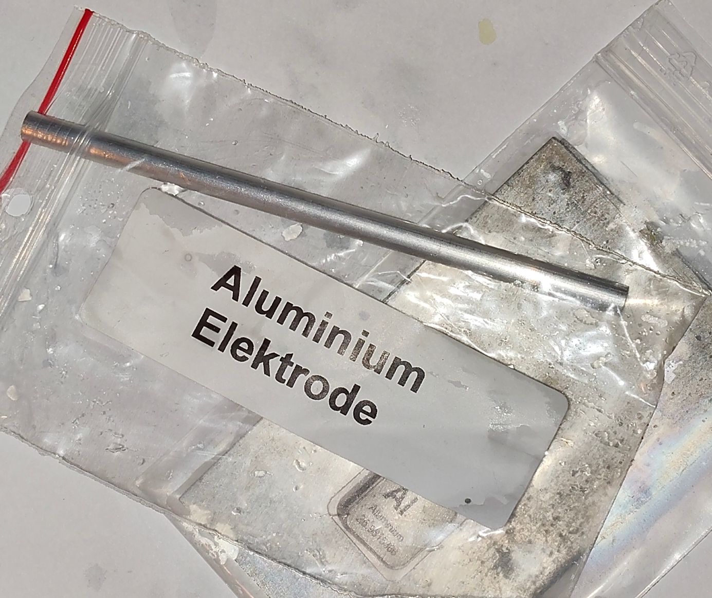 Ik ga deze keer een andere anode gebruiken, ook aluminium, maar een aluminium staafje.