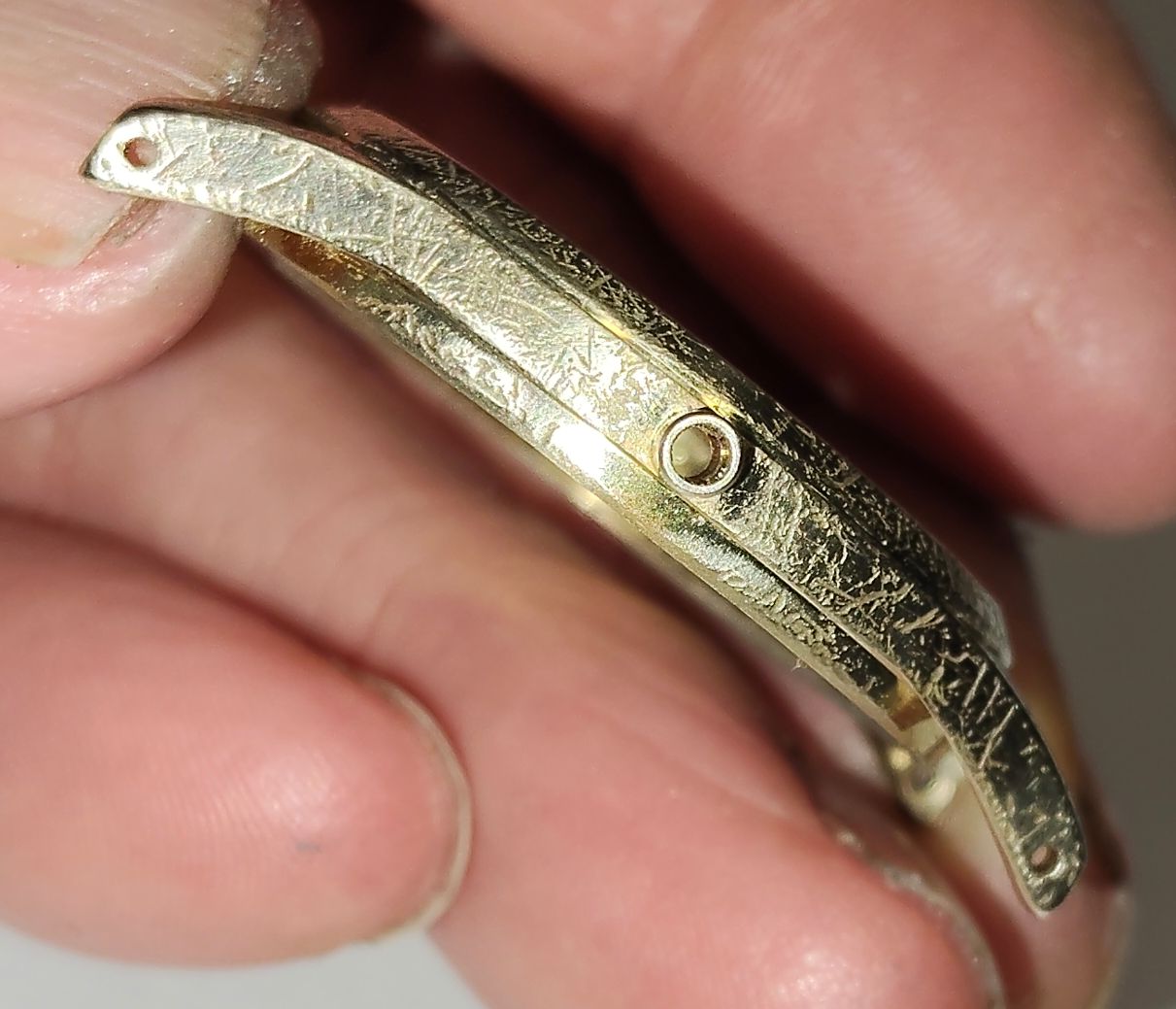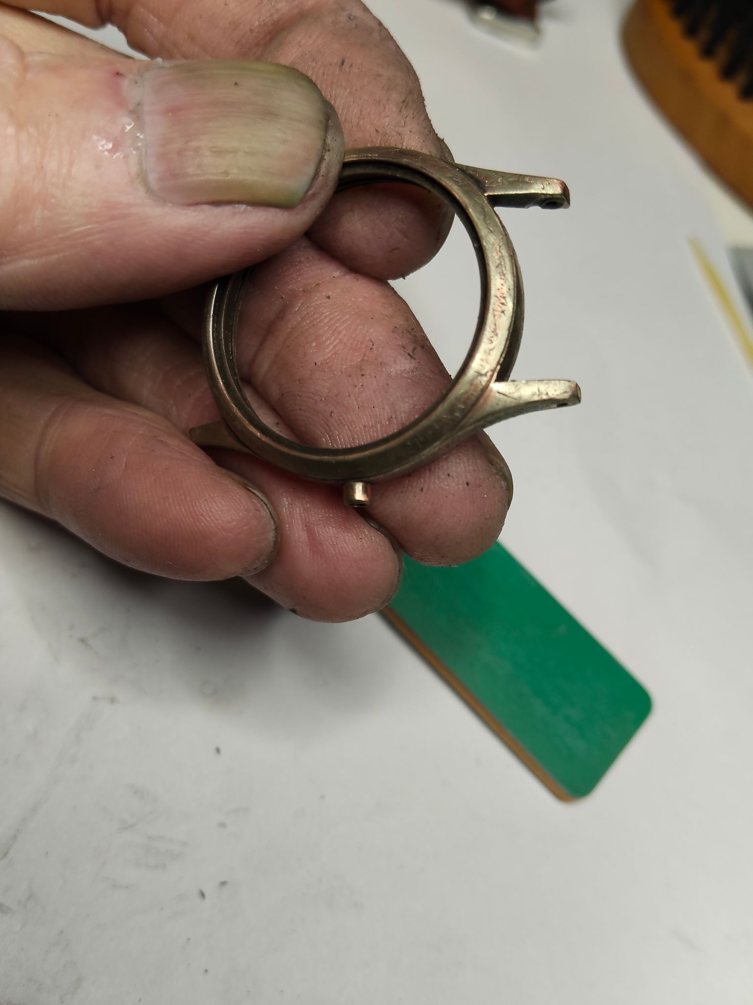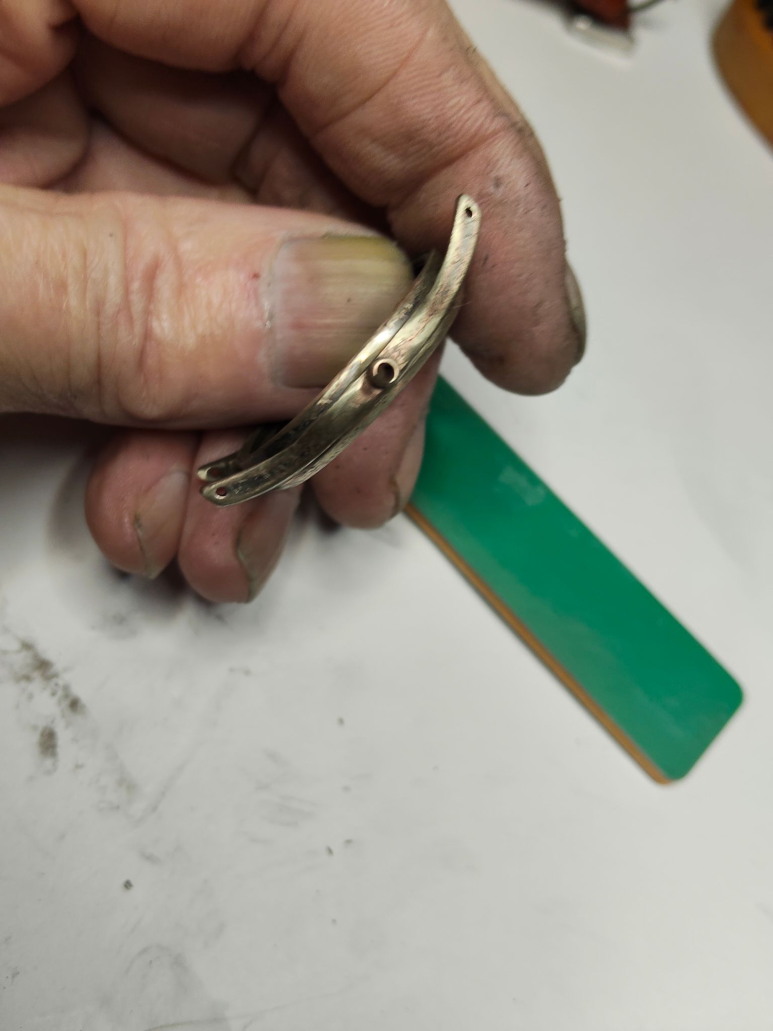 Aldoende leert men. De eerste keer was ik totaal niet tevreden; alle krassen zaten er nog in, dus nu wat grondiger aangepakt. Er zitten nog genoeg krassen in; die zijn te diep om eruit te schuren. Dat moet de koper en de nikkellagen nu gaan doen, maar ik maak me geen illusies; het zal er in ieder geval beter uit gaan zien dan de eerste keer.