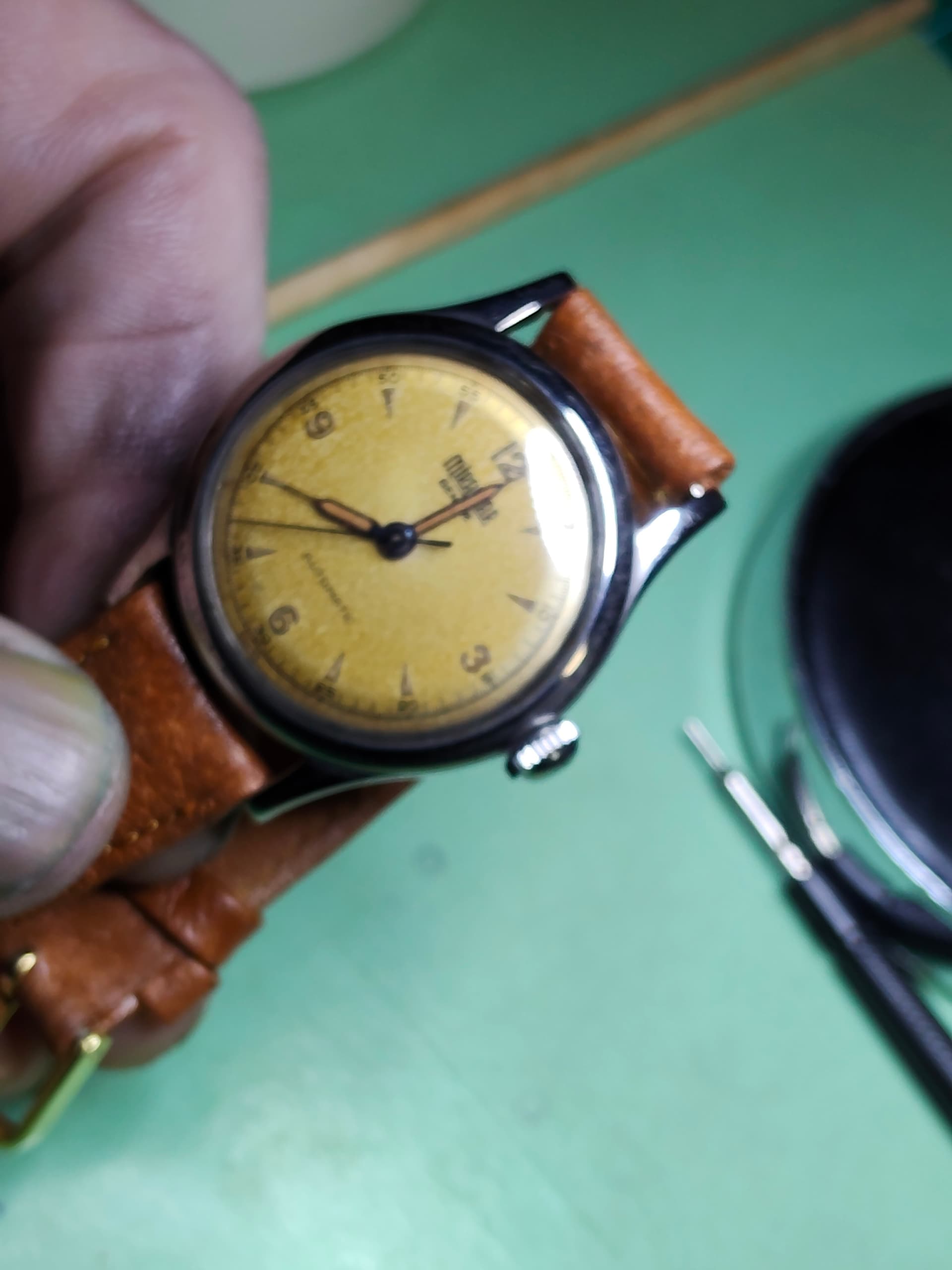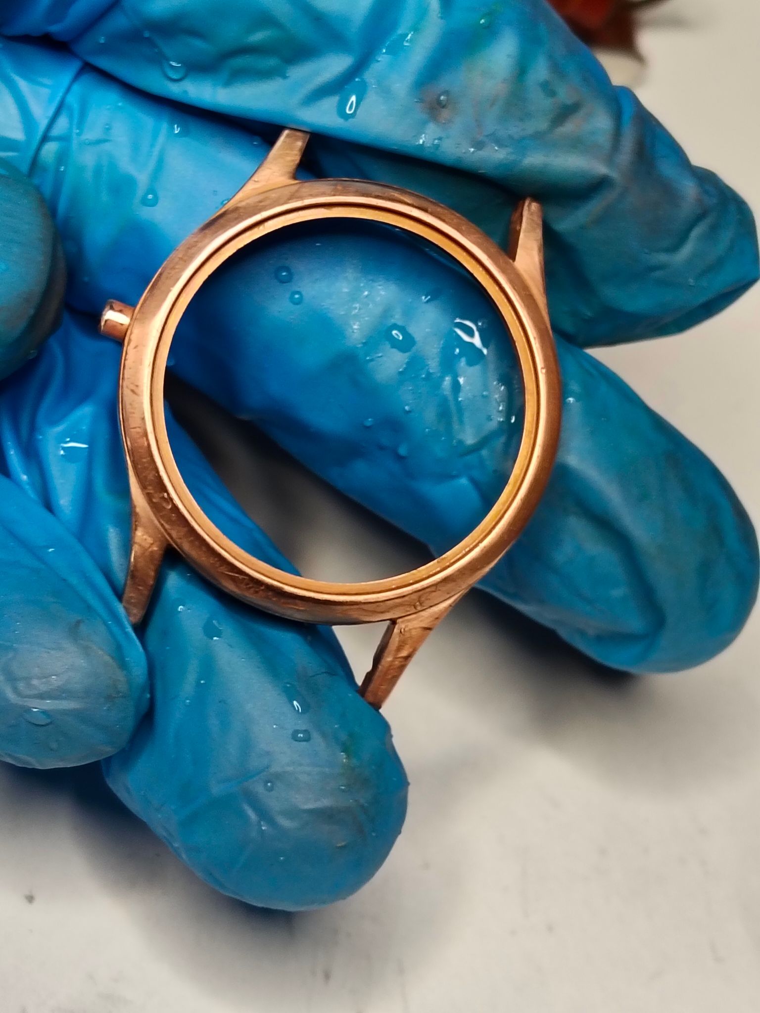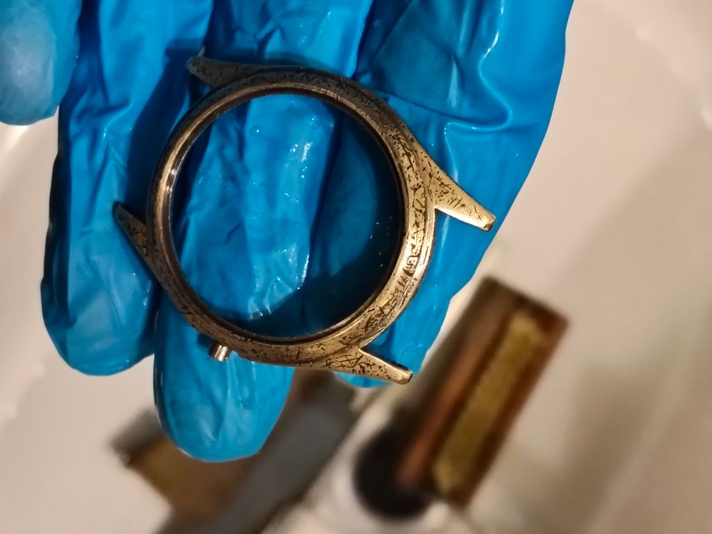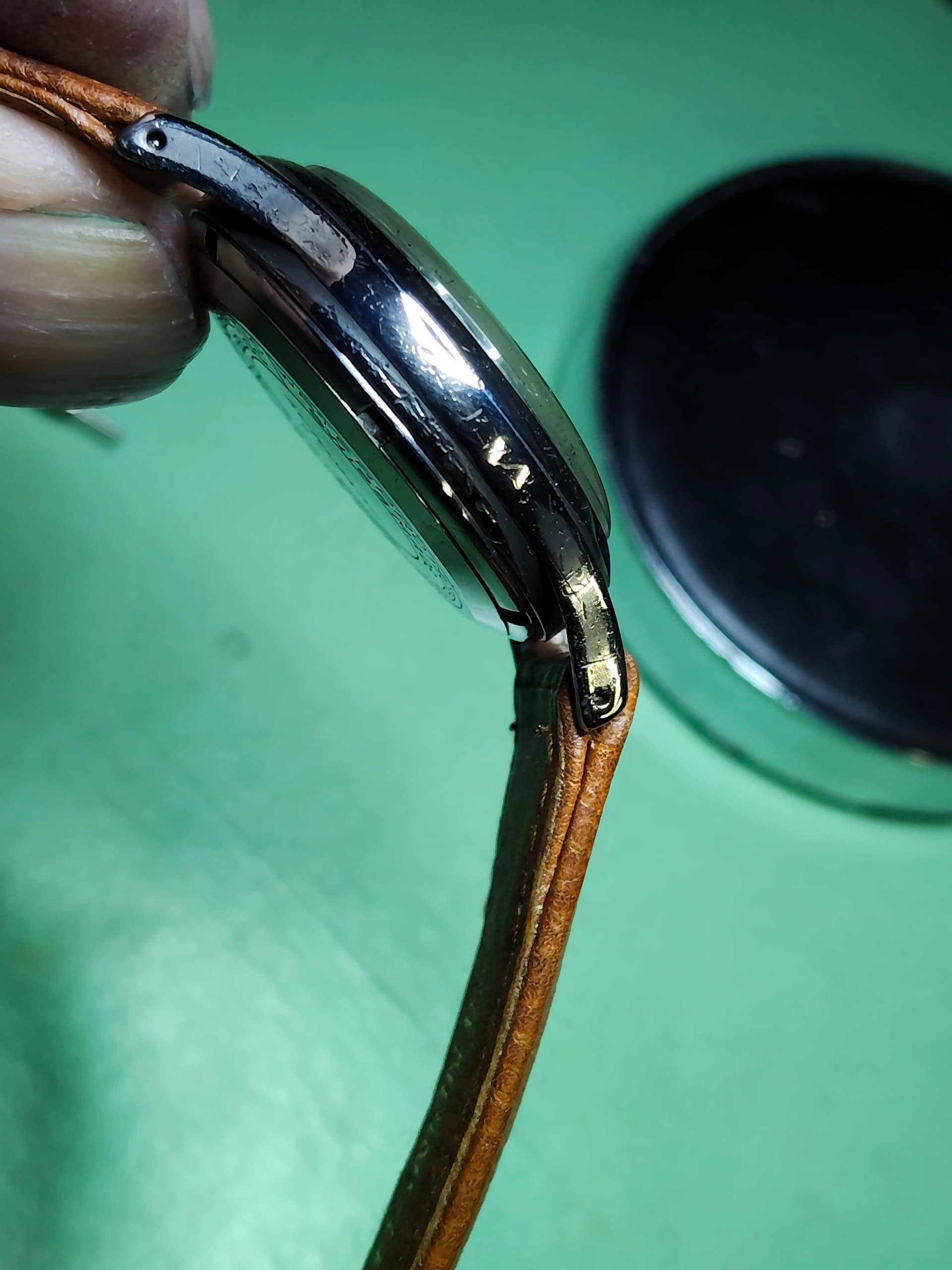 De beater van mijn collega’s overleden vader werkt weer. Bandje en gesp weer toonbaar. Nu nog het glaasje verder polijsten. Al hoeft dat van hem niet. Hij is nu al blij.