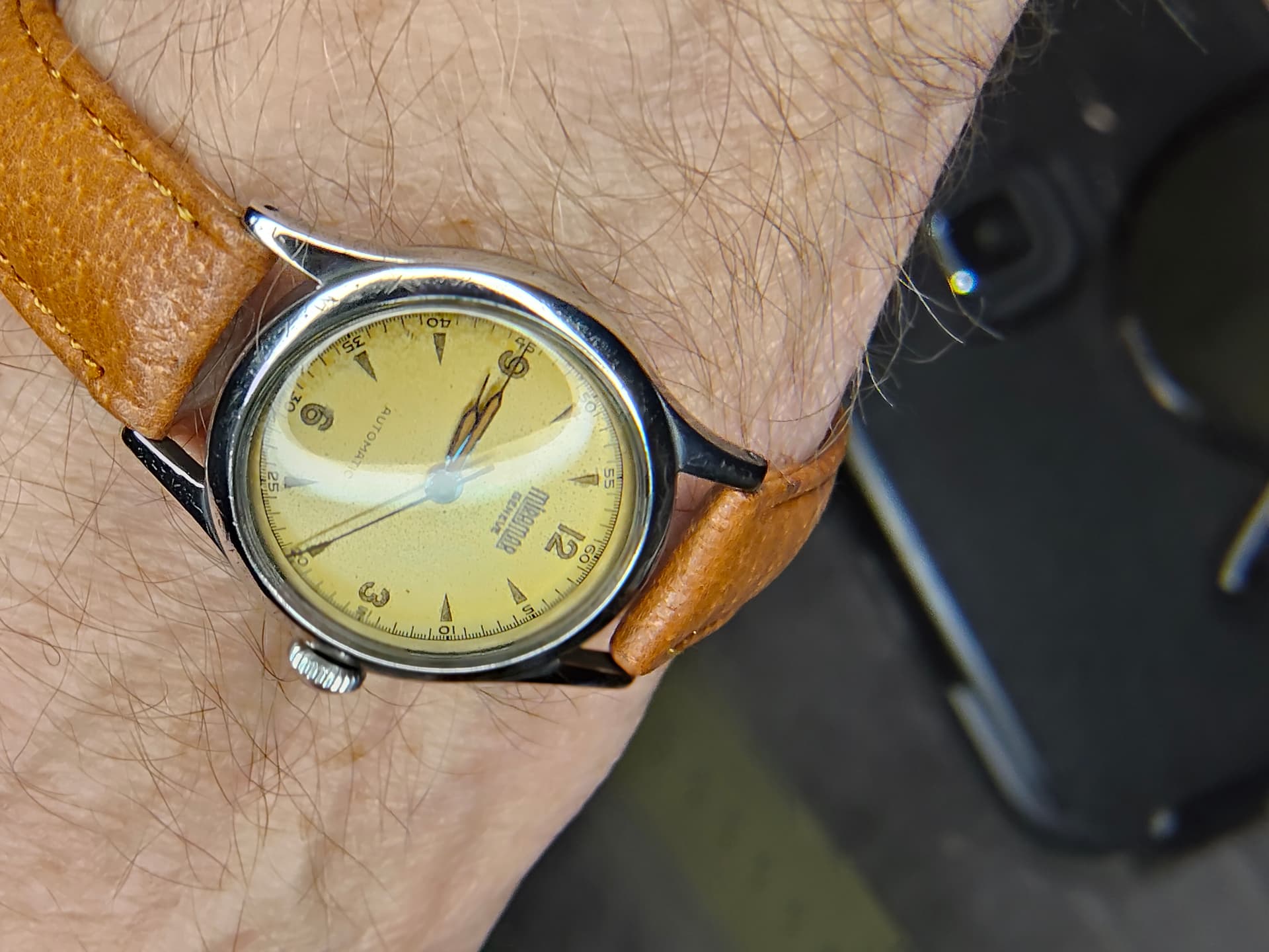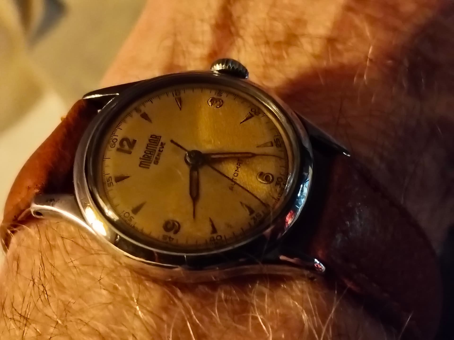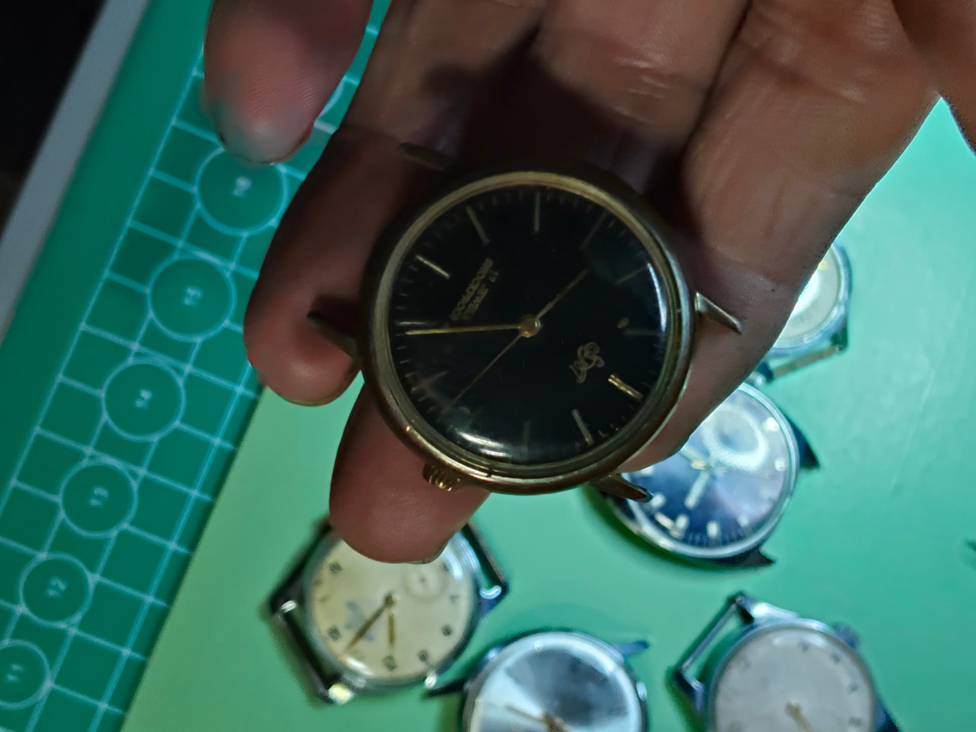 De beater van mijn collega’s overleden vader werkt weer. Bandje en gesp weer toonbaar. Nu nog het glaasje verder polijsten. Al hoeft dat van hem niet. Hij is nu al blij.
