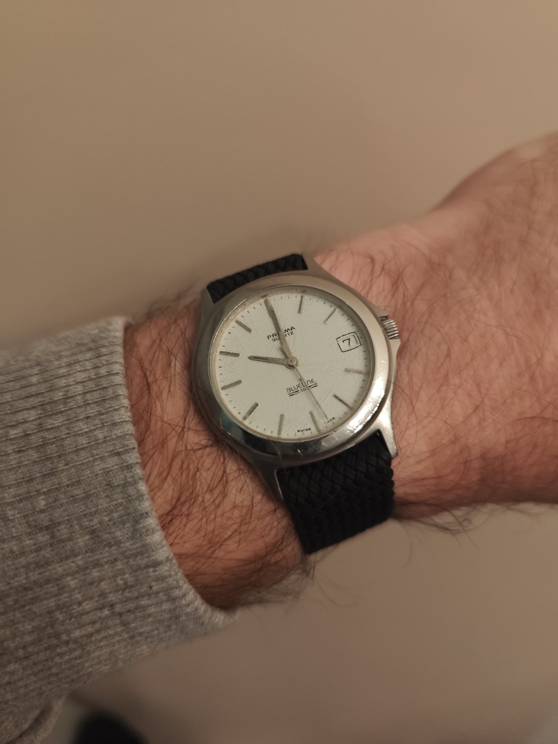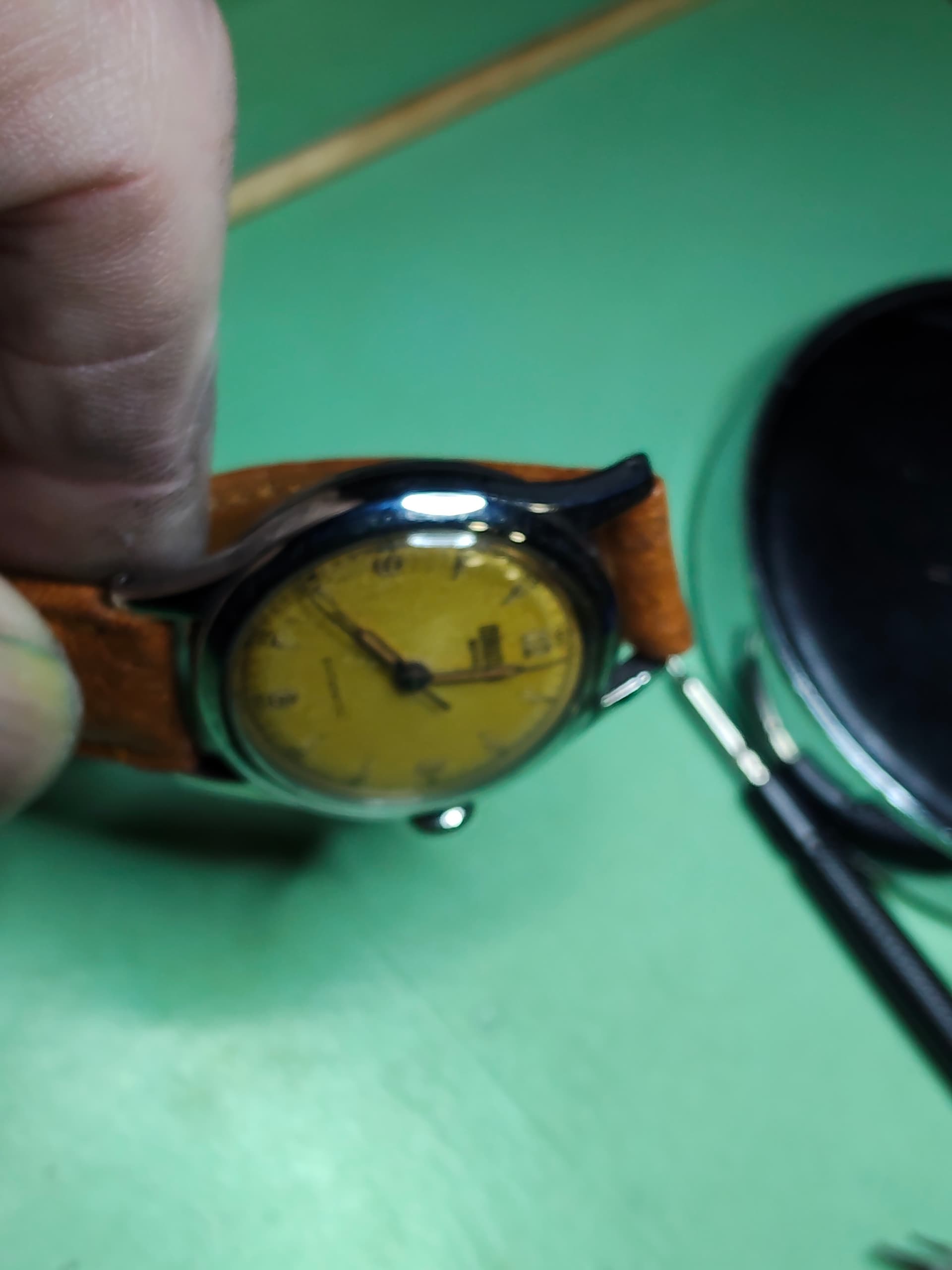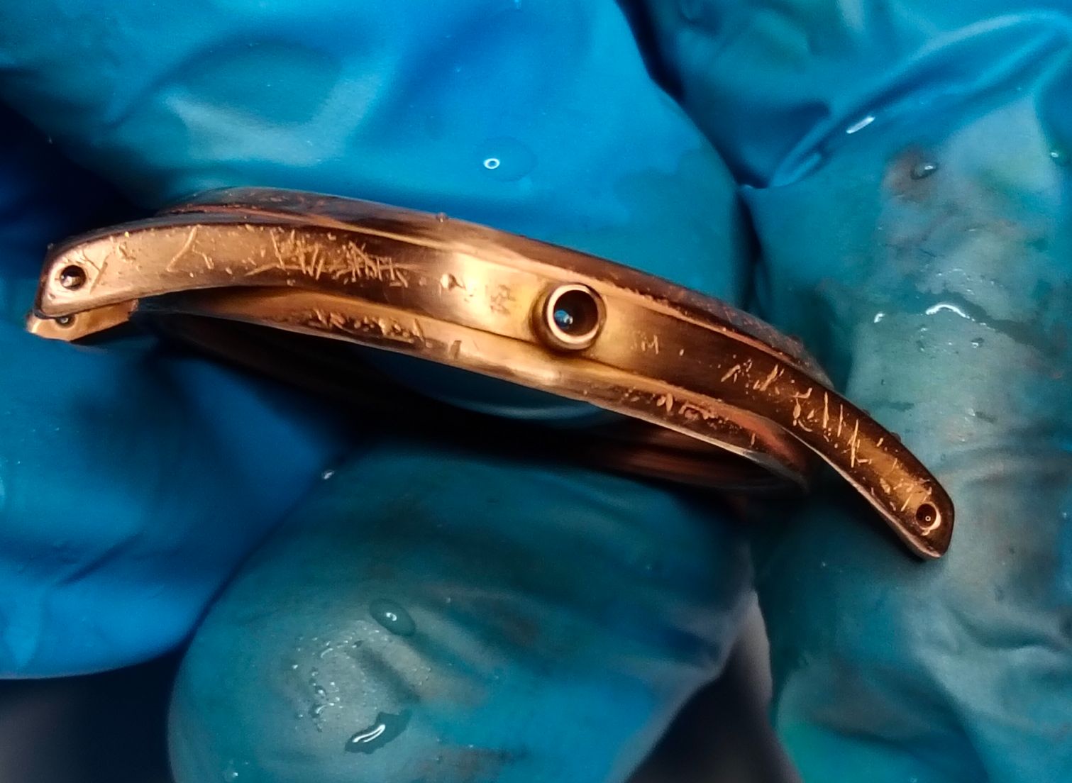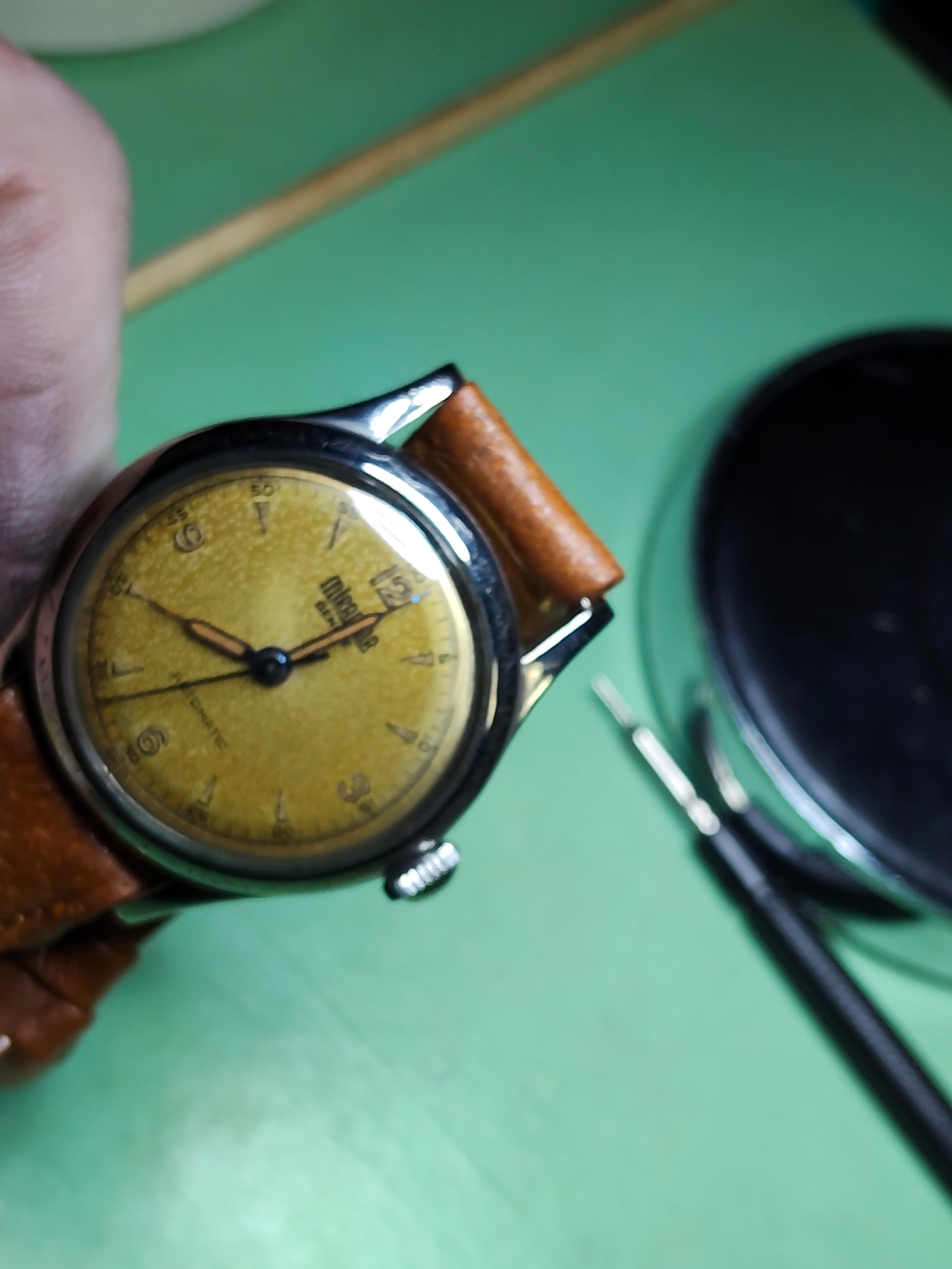 De beater van mijn collega’s overleden vader werkt weer. Bandje en gesp weer toonbaar. Nu nog het glaasje verder polijsten. Al hoeft dat van hem niet. Hij is nu al blij.