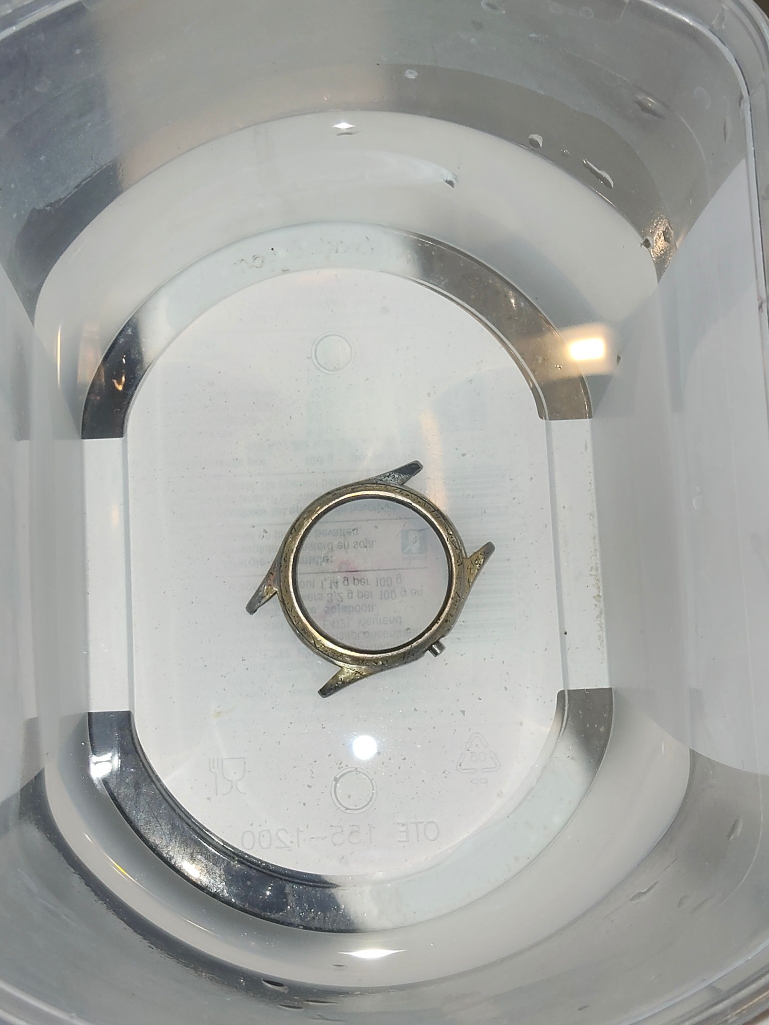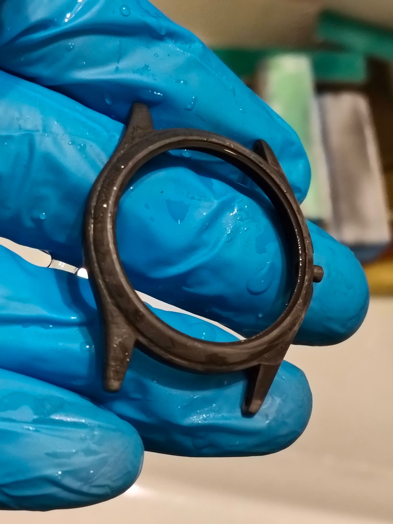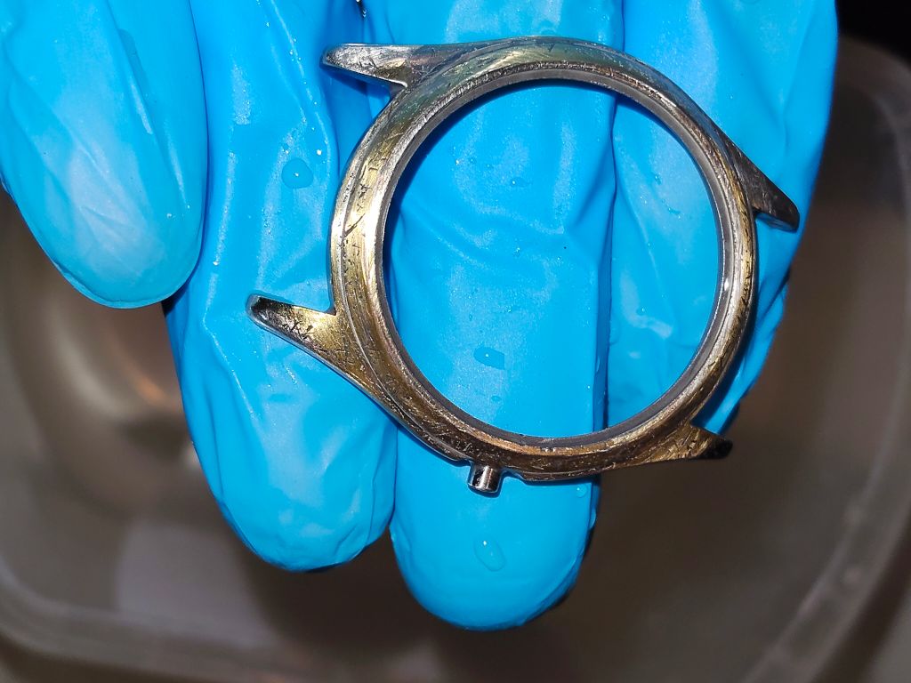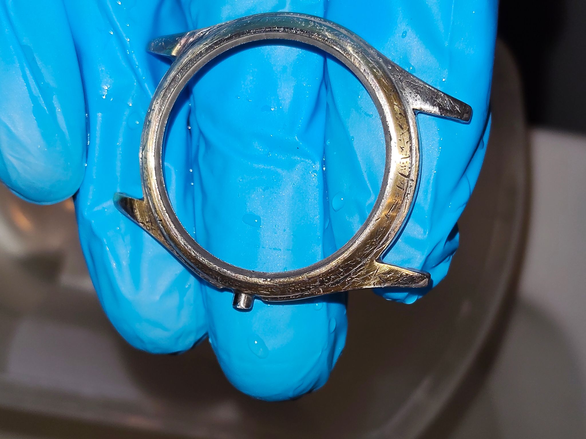 Ik was bezig om het te ontvetten, en tijdens het met de hand ontvetten kwam ik op het idee om het met de ultrasoon te doen. Om goed binnenin de krassen te komen en deze goed te ontvetten, is ultrasoon cleaning uitermate goed geschikt.
