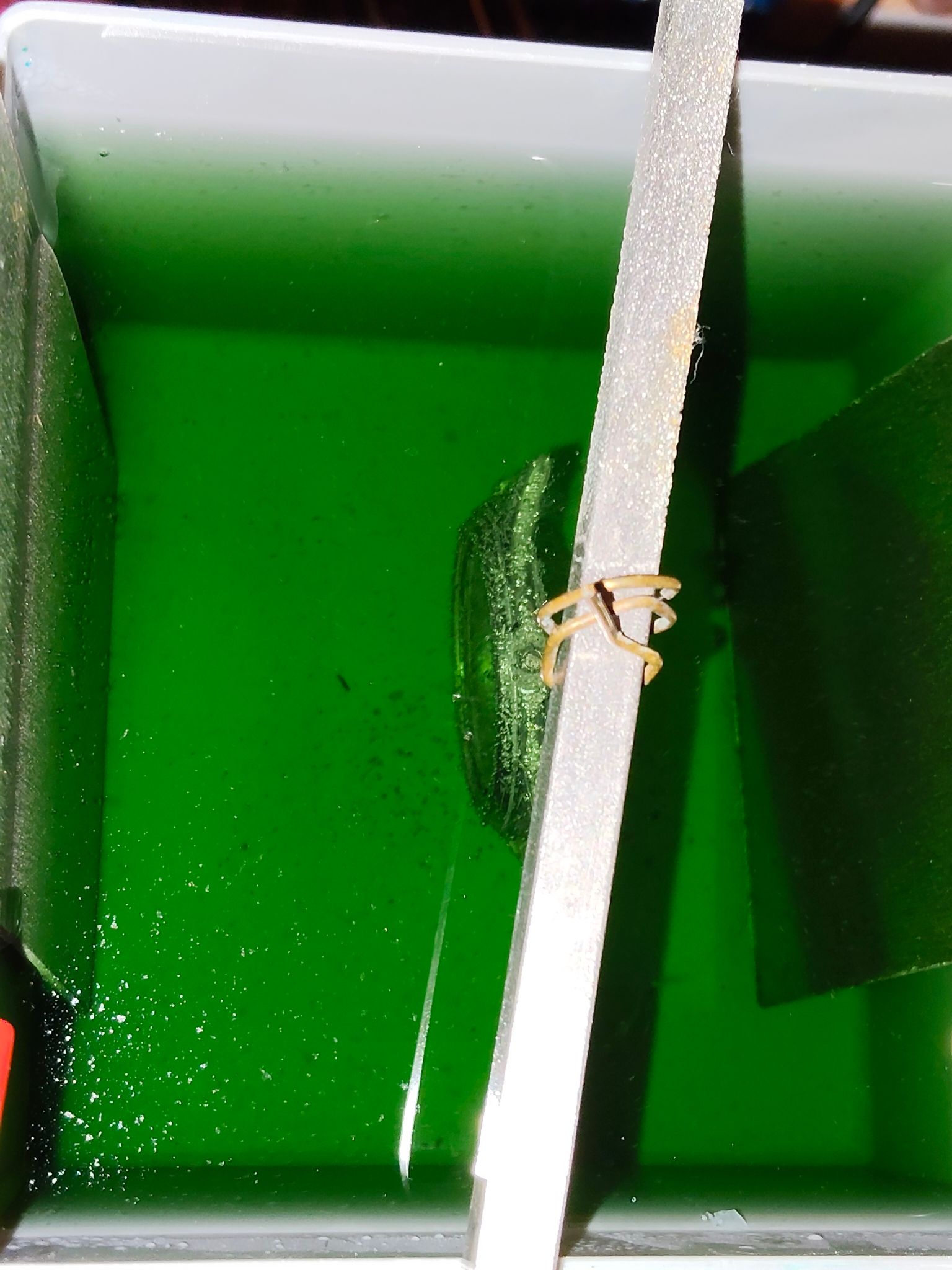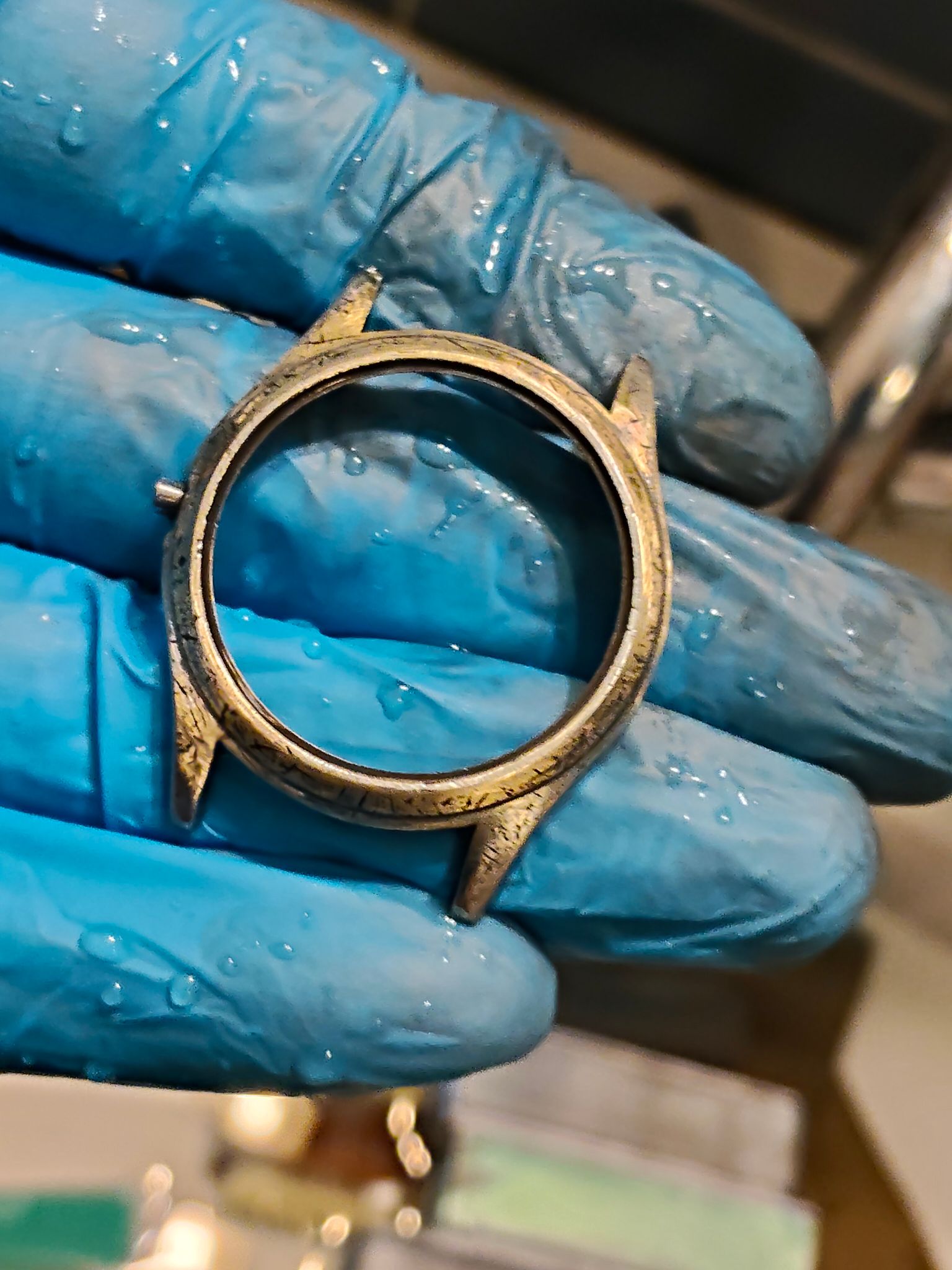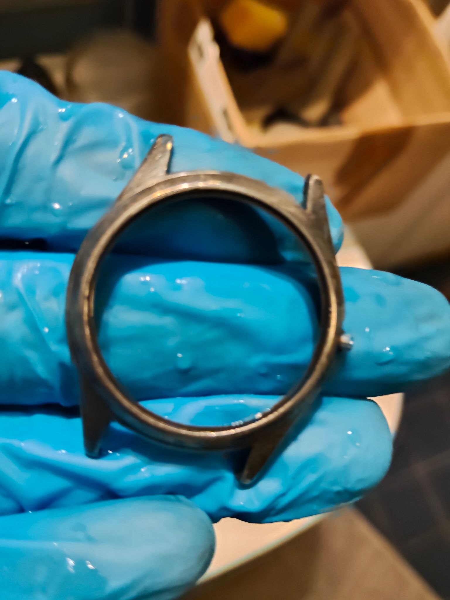 Ik was bezig om het te ontvetten, en tijdens het met de hand ontvetten kwam ik op het idee om het met de ultrasoon te doen. Om goed binnenin de krassen te komen en deze goed te ontvetten, is ultrasoon cleaning uitermate goed geschikt.