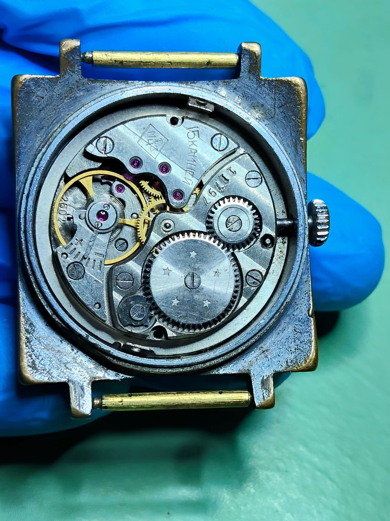 Ik heb het speciaal uitgekozen op eBay voor de versleten kast en ook dat het niet loopt; is altijd leuk als het dan meevalt. We moeten nog even afwachten. Als de balansveer in orde is, en dat is bij dit uurwerk het geval, kan een servicebeurt al voldoende zijn om het weer nieuw leven in te blazen.