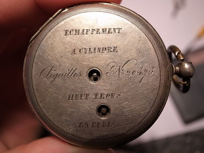 Vandaag heb ik deze aanwinst mogen ontvangen. Het horloge bevat en cilindrisch Zwitsers uurwerk met 8 stenen en loopt nog niet (waarschijnlijk is de het asje van het midden-wiel gebroken). Ik wil dit prachtig gegraveerde uurwerk graag met jullie delen. Daarbij wil ik jullie vragen of jullie nog informatie hebben over dit soort uurwerk en hoe het rond 1820 ging bij een dergelijk horloge (werd dit in opdracht gemaakt, wat voor 'n soort mensen hadden een dergelijk horloge?) weet iemand waar ik achtergrondinformatie kan vinden zoals de ouderdom? Serienummer: 20473