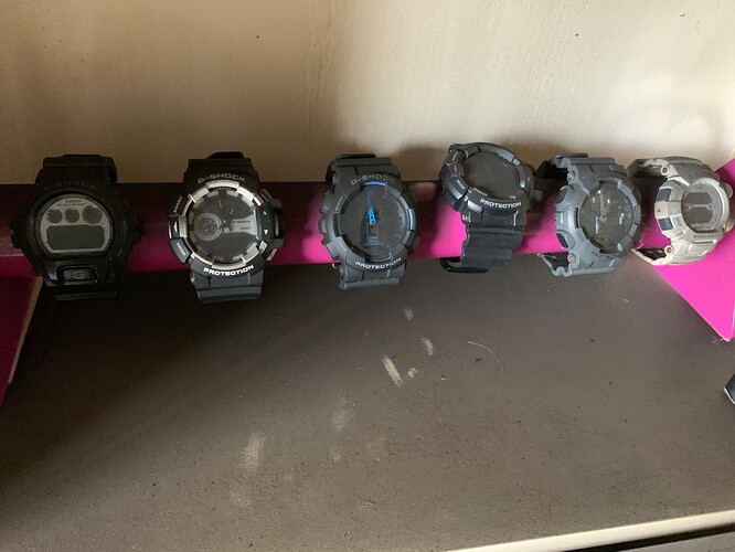 Hij loopt wel nog,vraag me af of hij nog te herstellen is?De rest van de horloges liggen in de kast in een box die zijn niet zo zwart die krijg ik nog wel zuiver denk ik.