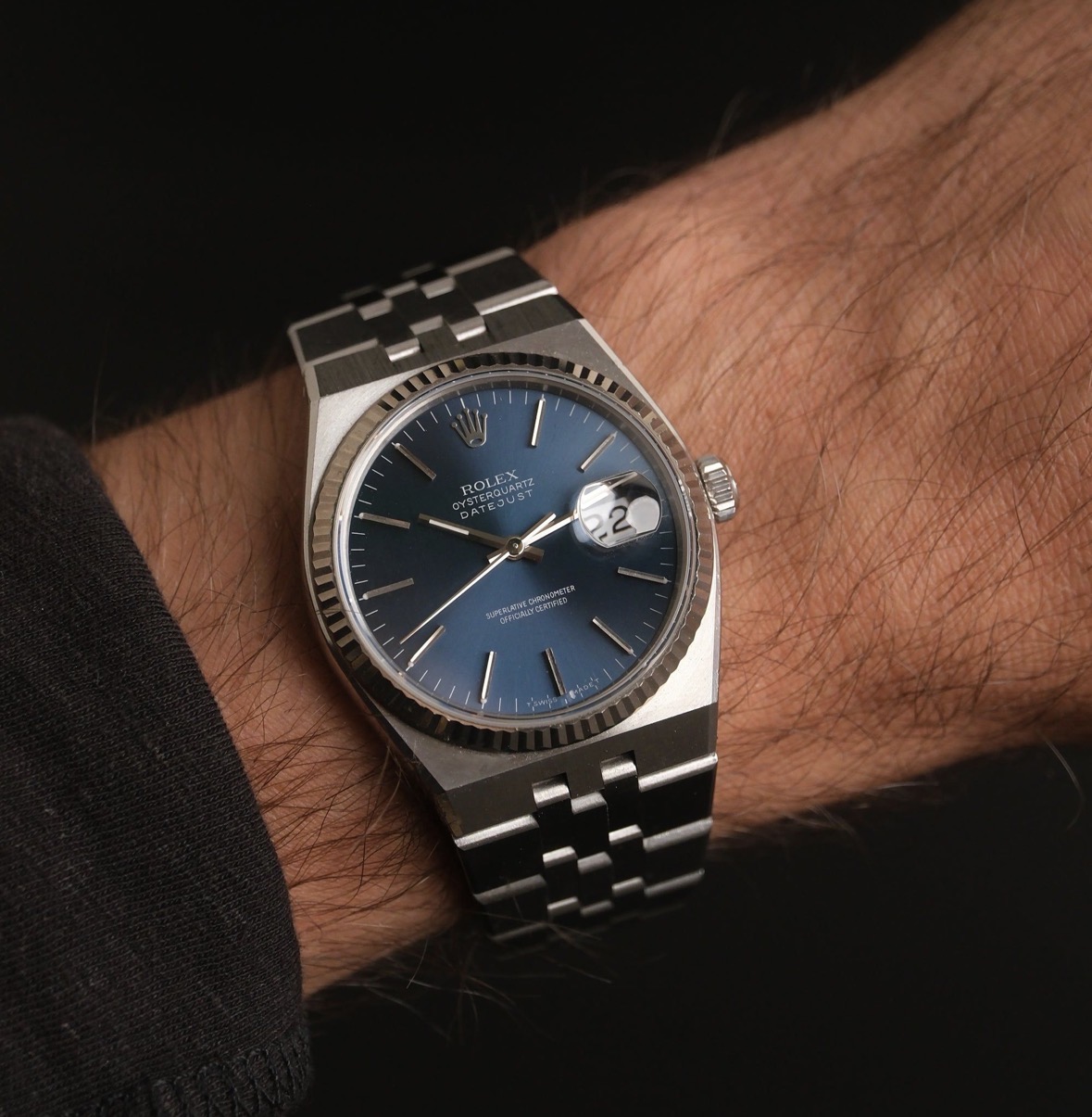 Ik heb een mooie Tudor Prince Date-Day (referentie 76214) met wit/zilveren “linnen dial”. Ben al een tijdje in the market voor een toevoeging met blauwe dial, en hoopte eigenlijk dat Rolex de “oude” blauw weer zou introduceren voor de OP (zeg maar de “2024 kleur”, donkerblauw met sunburst). Helaas niet gebeurd. Ik vind het huidige matte blauw wel mooi, maar meer een mode-kleur dan tijdloos.