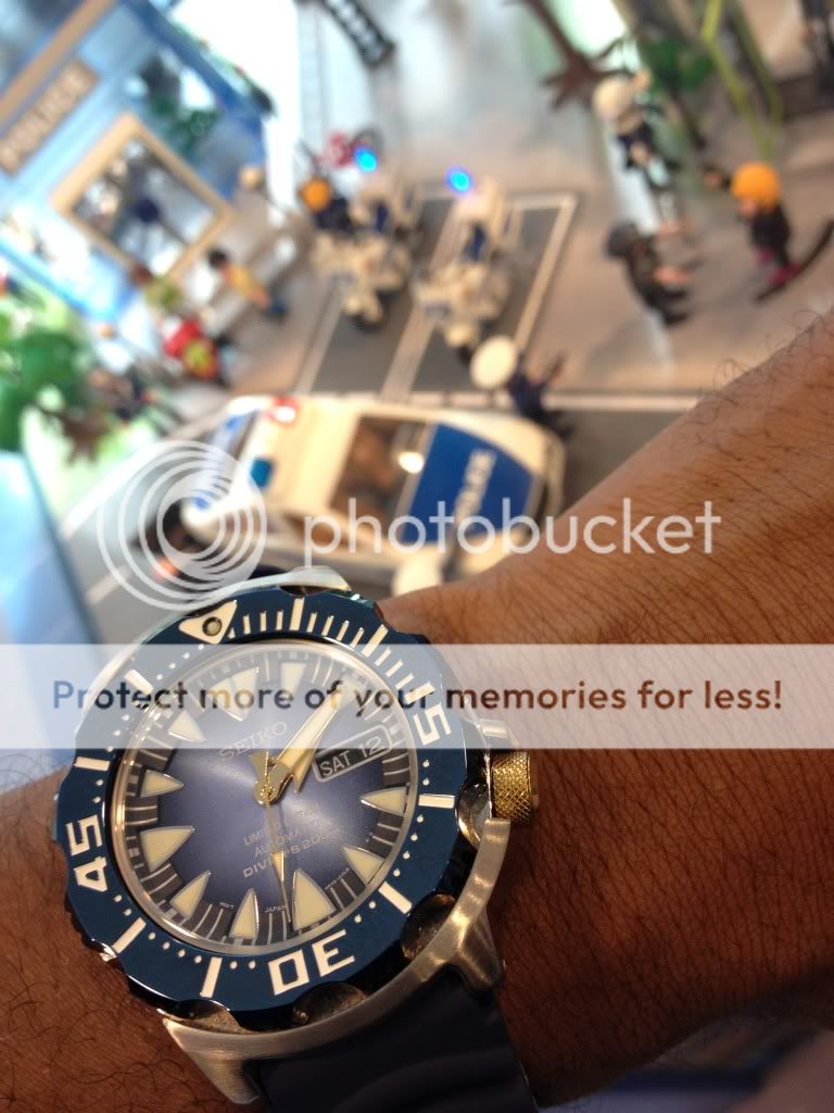 Die blauwe sunburst wijzerplaat is misschien wel de mooiste ooit op een Monster(achtige)!:~ Vind de derde in bovenstaand rijtje de minste van de drie. Ik houd niet zo van die cijfers op de wijzerplaat en vind de compasbezel ook wat minder op dat model. Maar als iemand er nog een wil doneren aan mij, zal ik 'm niet weggooien, hoor!