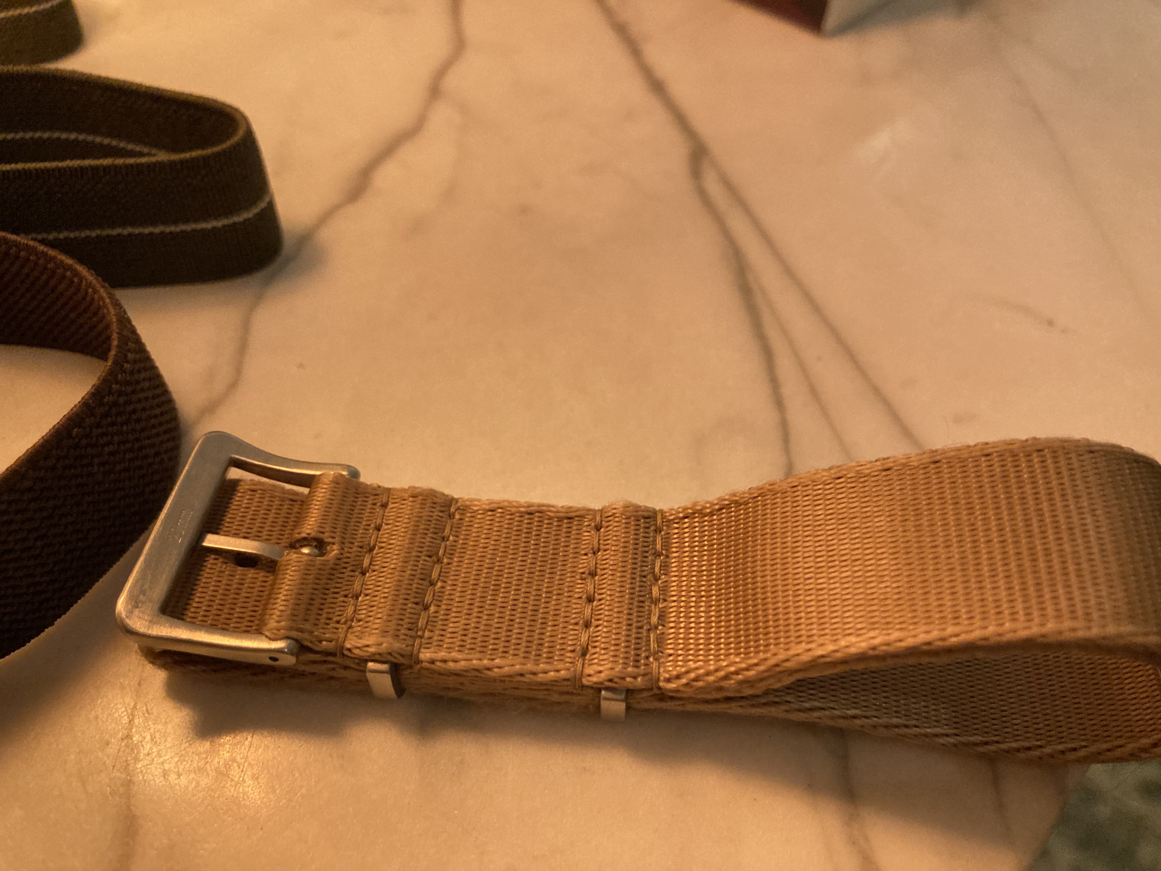 B&S zandkleurig 20mm nato gedragen, lichte sporen (karakter) 20 inc