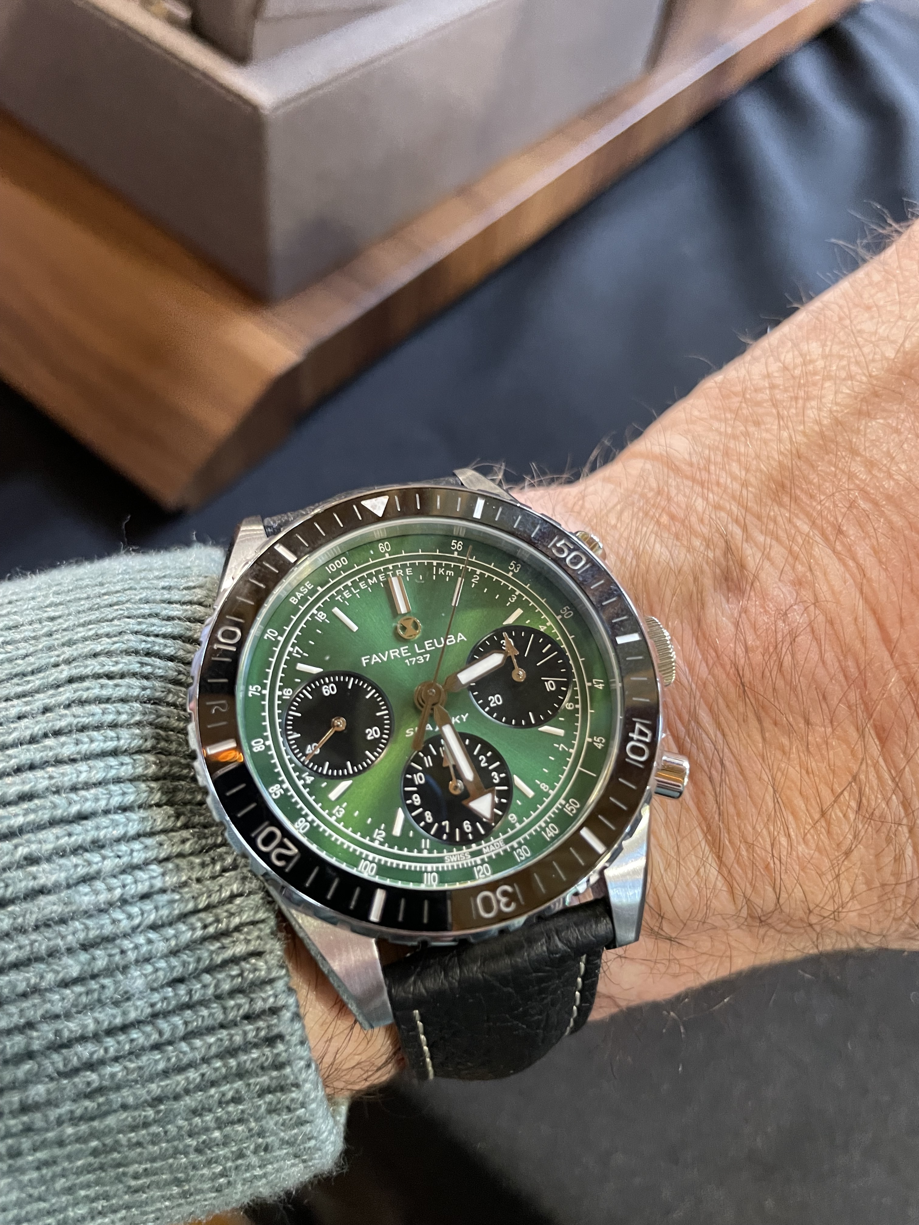 Favre Leuba! Uniek. Ze hebben geen dealers in de Benelux en slechts drie dealers in Duitsland en twee in Frankrijk dus passen is an-sich al bijzonder.
