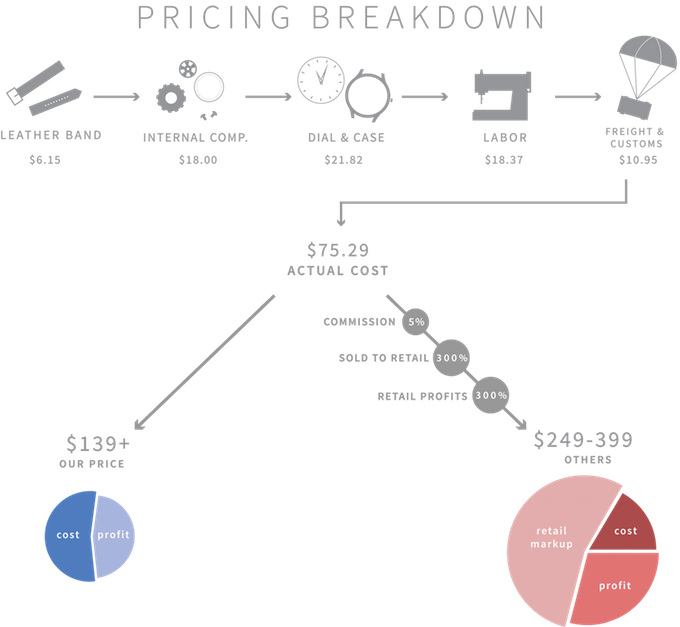 Helemaal mee eens. Als je zelf designed, onderdelen ontwikkeld, of zelfs het productieproces in eigen beheer hebt gaat het plaatje wel mank. Blijft echter over dat als je een horloge tegen MSRP (Retail) prijs koopt, je ook nu weer ziet dat er veel winst wordt gemaakt door de diverse partijen. Maar dat weten de meeste ook wel denk ik.