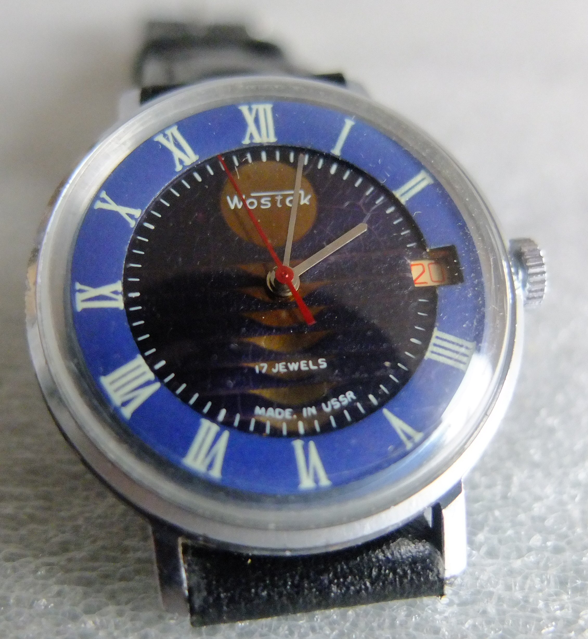Hier een serietje van mijn denk ik redelijk zeldzame Vostok met ‘Sunrise dial’ die er bij verschillende belichting en onder verschillende invalshoeken steeds een beetje anders uitziet, door de reflectie op de wijzerplaat.