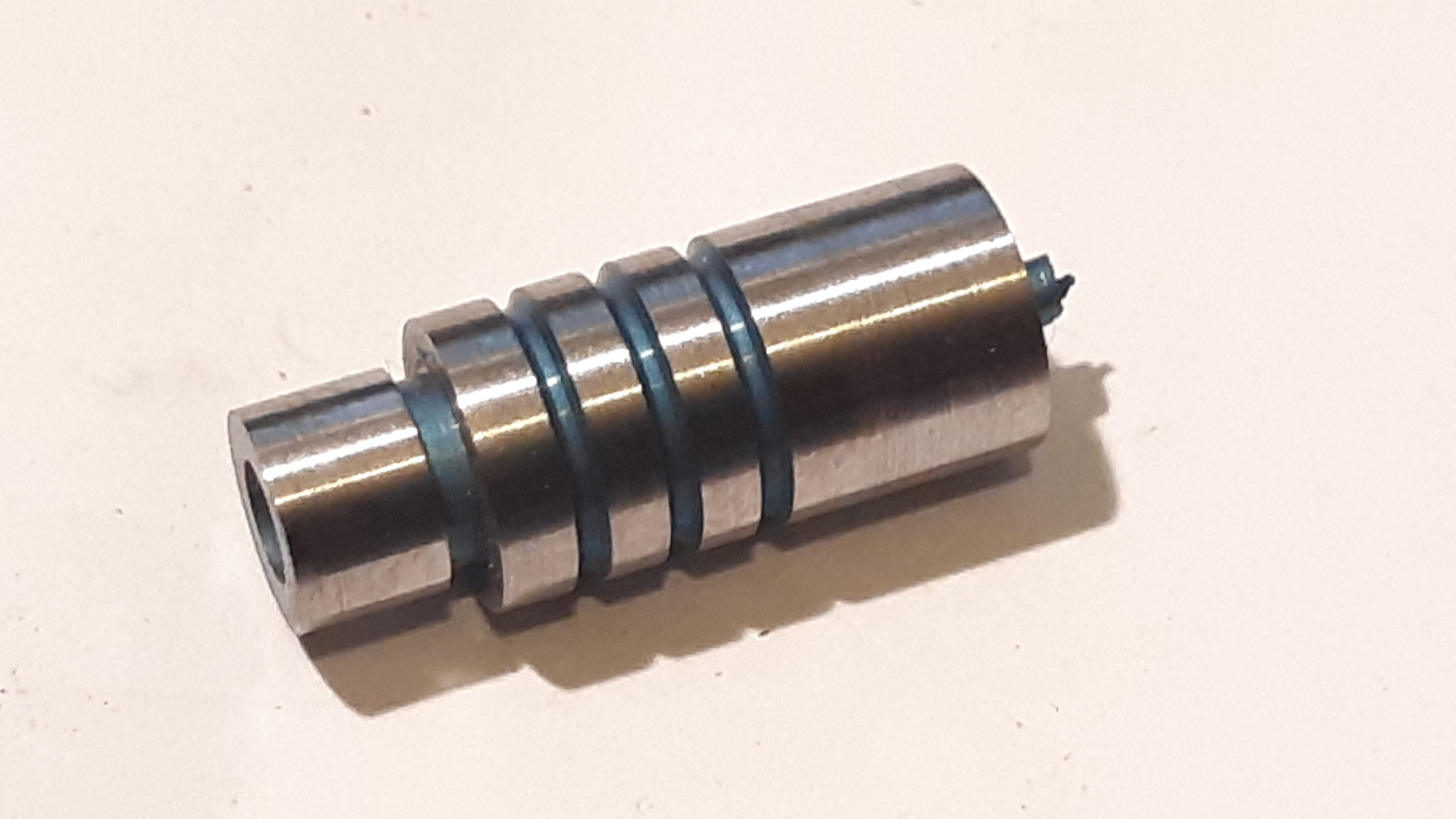 Even een stukje draad getapt. tot zover als het ging… morgen de andere kant bewerken, en als ik goed gerekend heb, ben ik met met boortje 2.5 ver genoeg gegaan om uit te komen in het deel dat opgeboord wordt naar 3 mm in de andere kant.