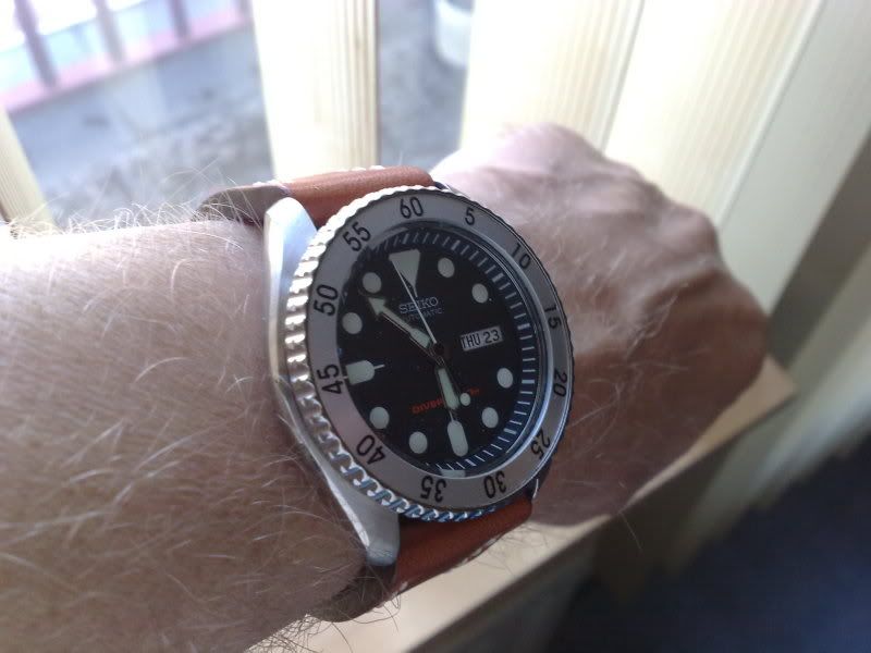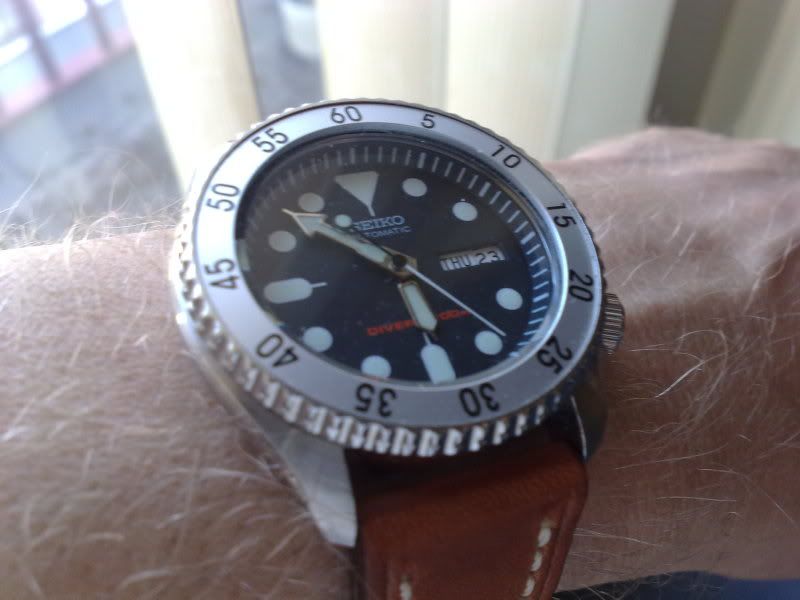 Dank allen, ik ben er ook tevreden over. @ Tissot: Het is nog mooier, die rode letters zijn in werkelijk een kleurtje tussen lichtbruin en oranje in, vrijwel dezelfde kleur als de band.