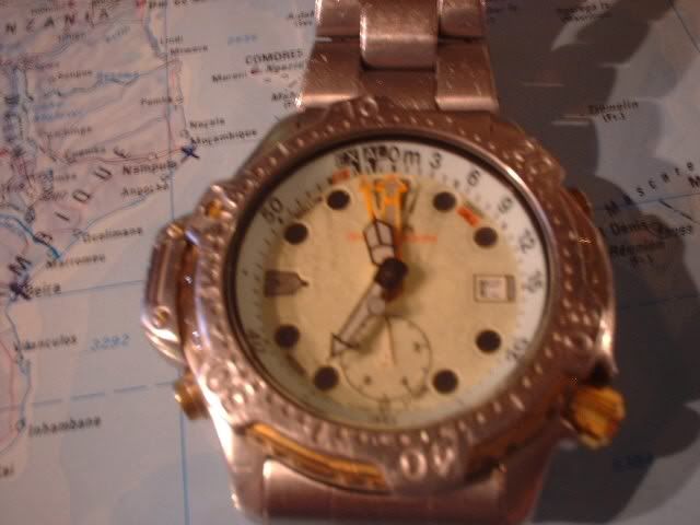 Voor ““chique”” heb ik een ander horloge , deze is , buiten de duiksport , voor dagelijk gebruik . Zo als men kan zien is hij niet ongeschonden uit de strijd gekomen , hij heeft duidelijke ““gebruikssporen””.
