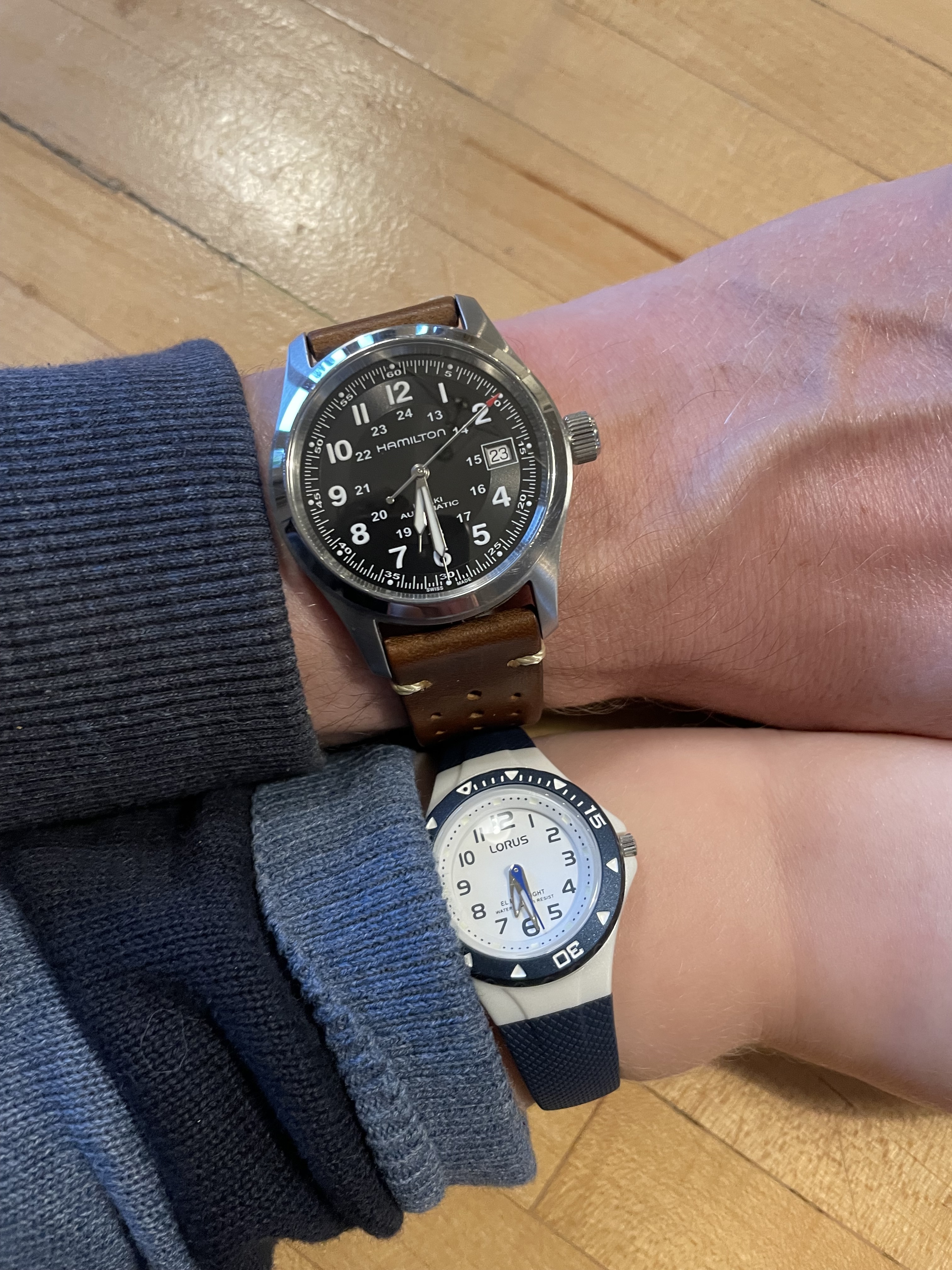 Mijn zoon draagt geen horloges maar mijn dochter heeft van mij de liefde voor vintage echte horloges overgenomen, ze draagt deze:
