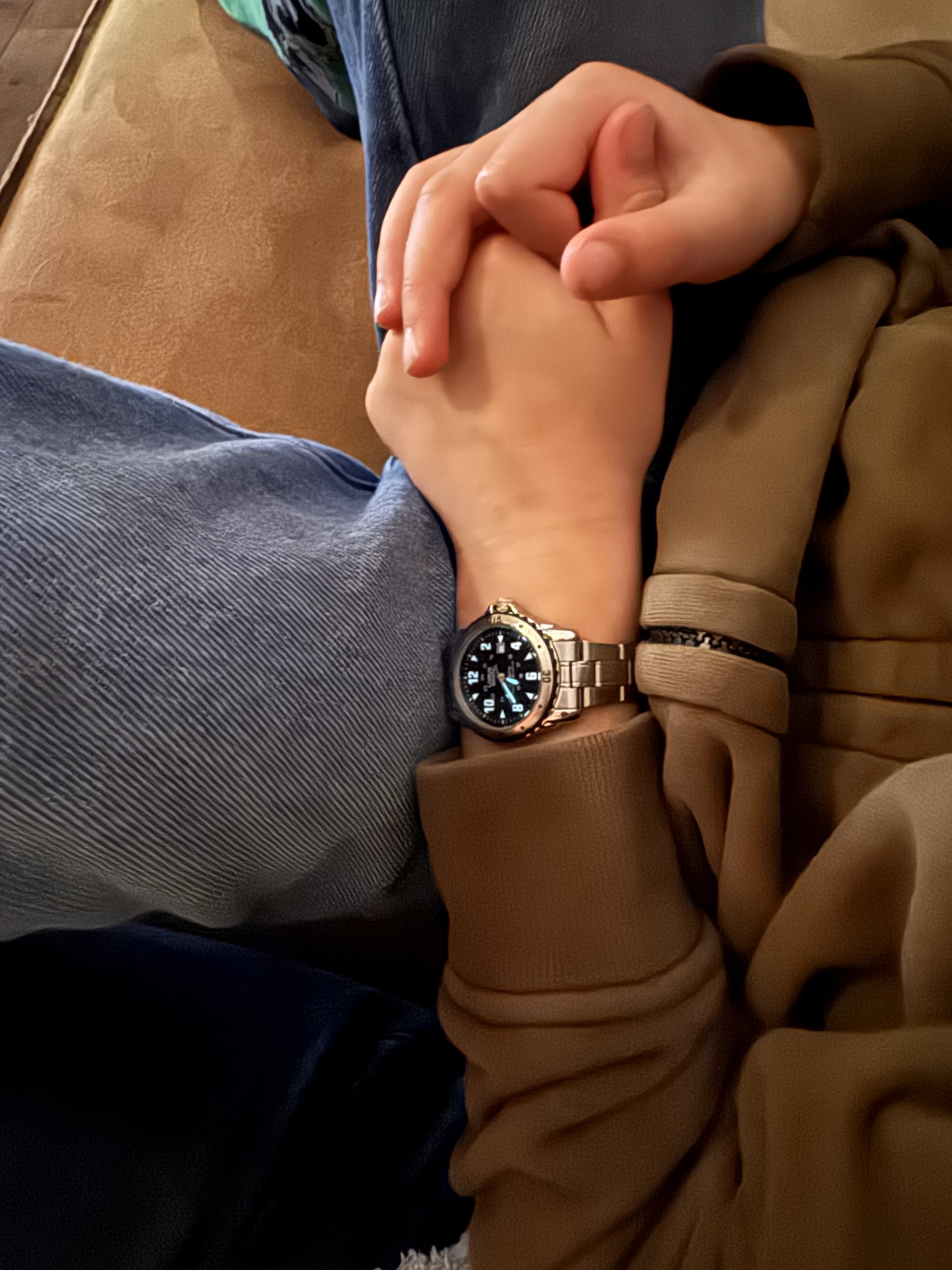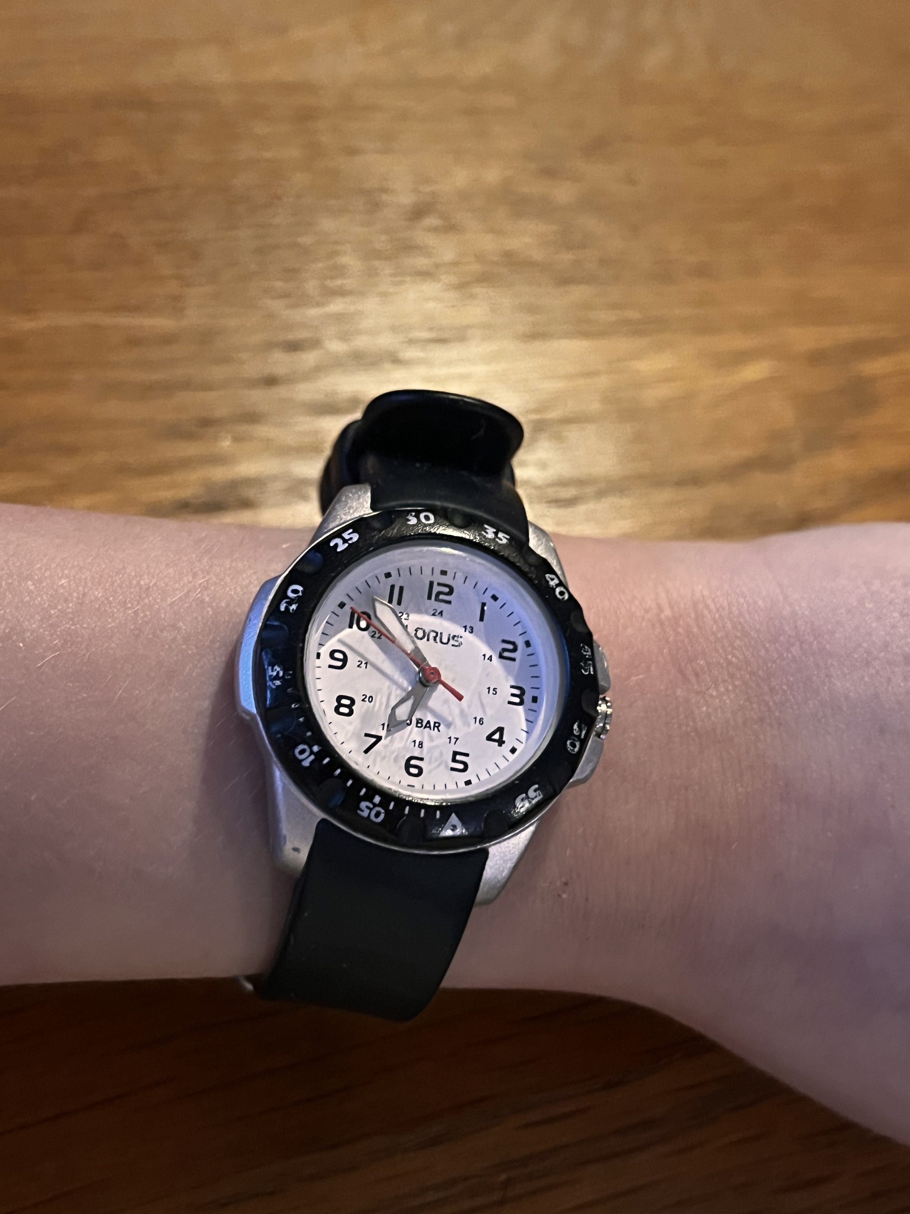 Momenteel nog geen half jaar oud, uiteraard veel te jong voor een horloge. De oogjes gingen wel open toen ik deze eens rond zijn pols hield ![]()