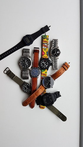Ja, de horloges die ik van mijn opa, vader en een oom heb, Een gouden Eterna, een vroege Reymond Weil en een Tissot Sea Star. Niet waardevol (in de zin van euro’s), maar in de goede zin.