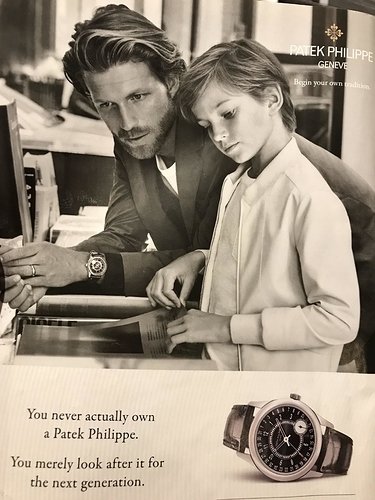 De bekende slogan van Patek Philippe: ‘You never actually own a Patek Philippe. You merely look after it for the next generation.’ Is een credo die mij aan het denken zette.