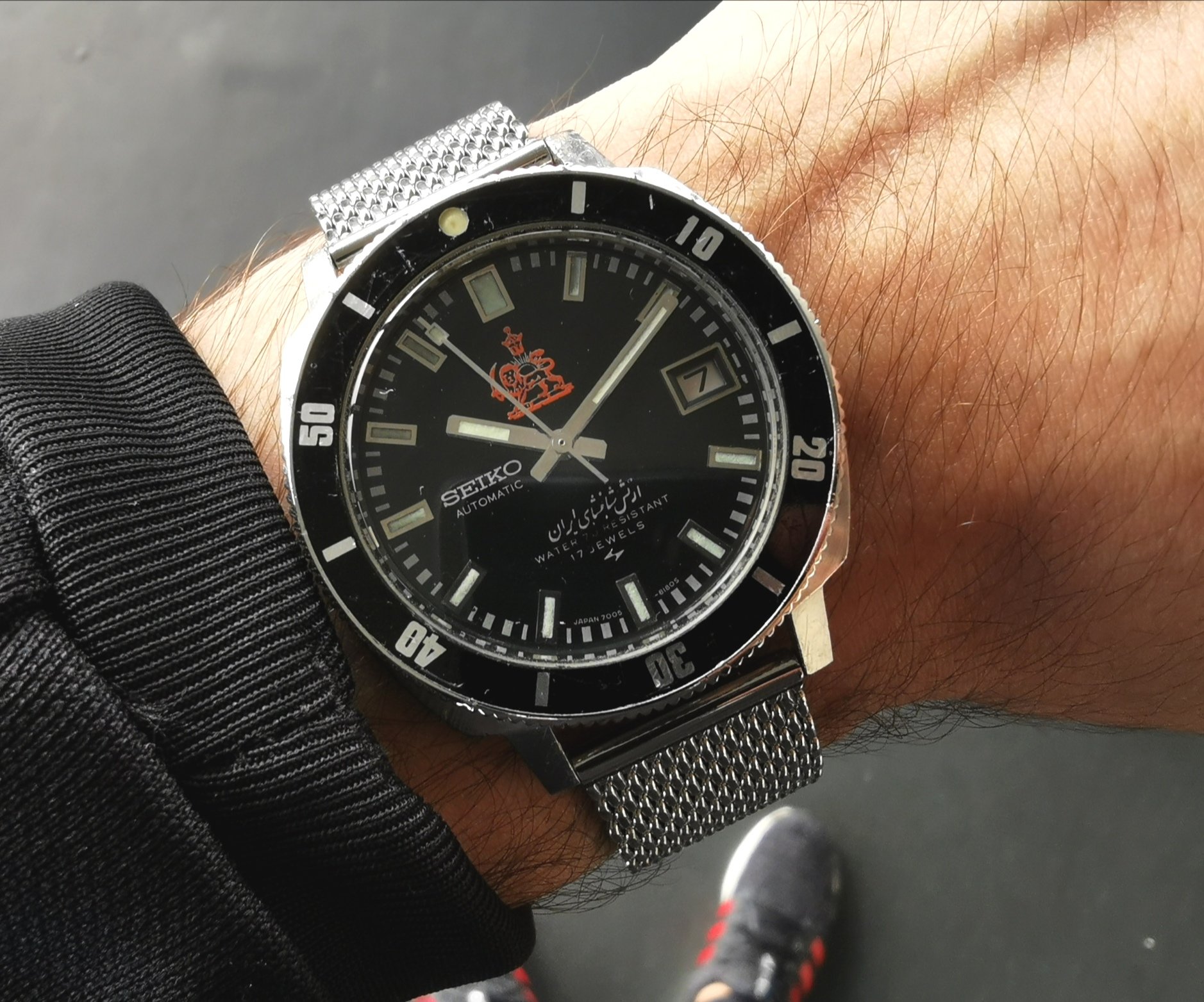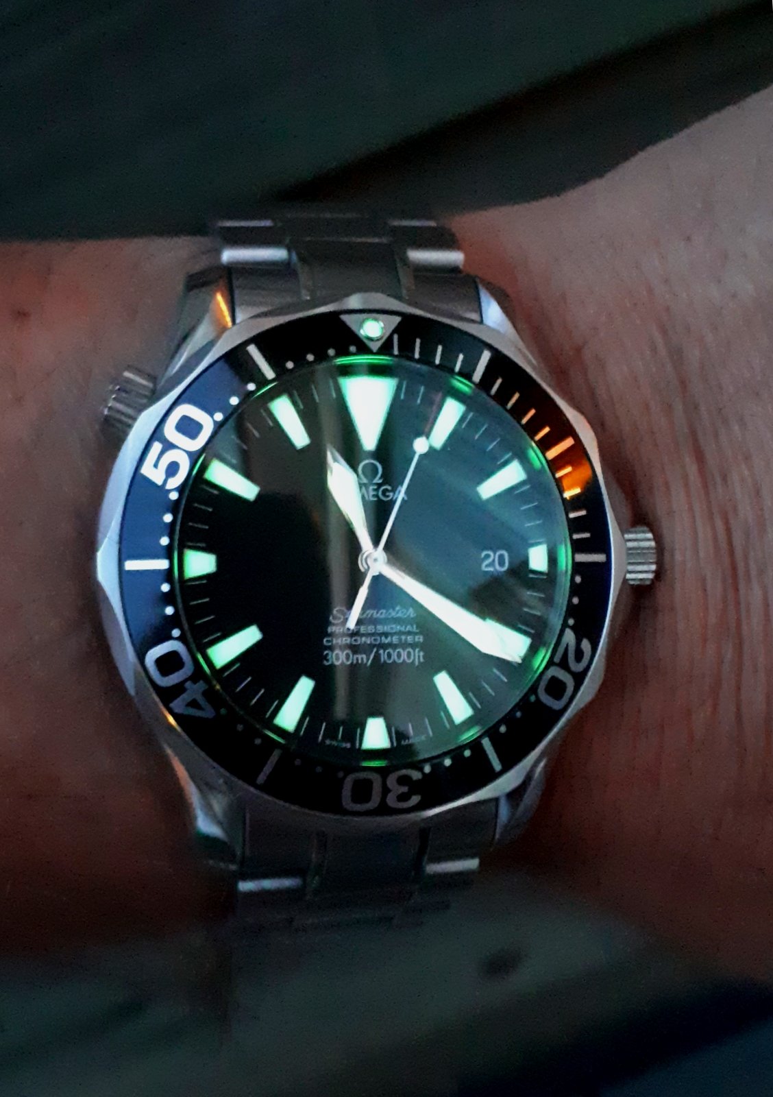 Zeg nooit nooit is al vaker gezegd maar dit is wel mijn keeper. Voordat ik hem had was het had al jarenlang mijn grail en dat is nooit minder geworden, Sterker als ik nieuwere generaties of andere merken uitprobeer dan halen ze het nooit bij de beleving van deze (de Sub ook niet en die heb ik wel eens meerdere keren een halve dag gedragen). Heb er ook lang over gedaan om deze als mint en full set te vinden en van het laatste geproduceerde jaar. Poor quality shot maar you get the picture