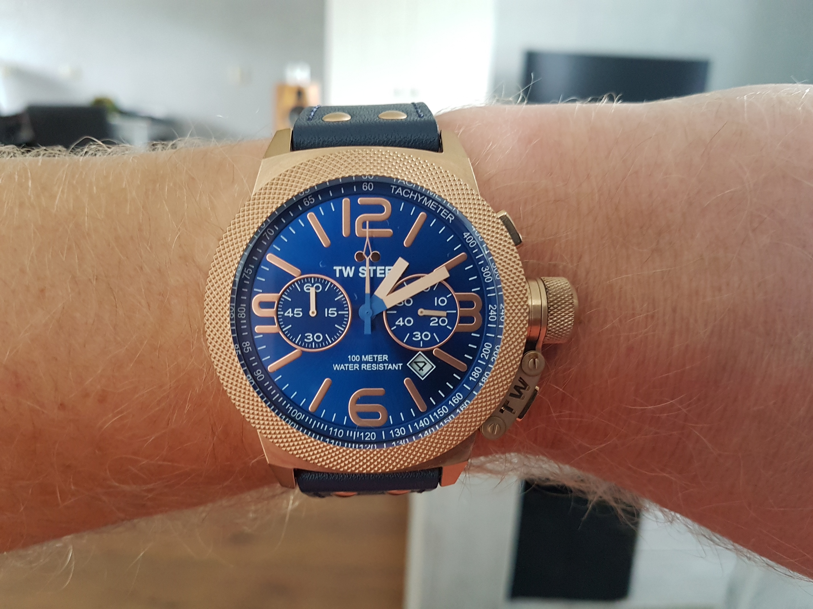 Deze blauwe 50mm TW STEEL. Vroeger, rond 1979/80, stad en land afgereden met mijn vader, voor een blauwe, vierkante Seiko. Daar heb ik fijne herinneringen aan, want de kleur blauw van die Seiko, is hetzelfe als van de blauwe TW STEEL…