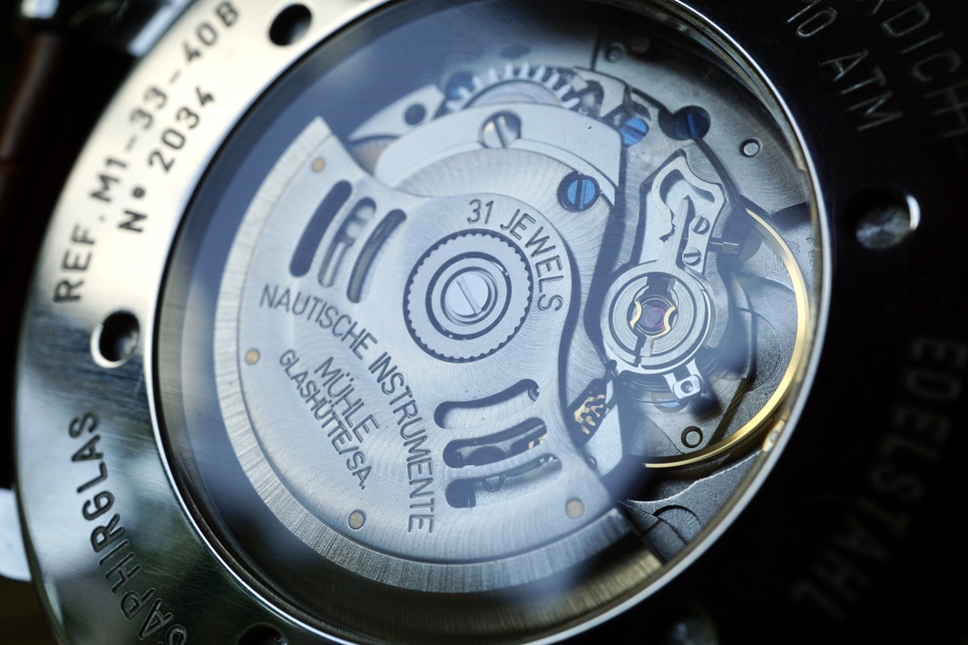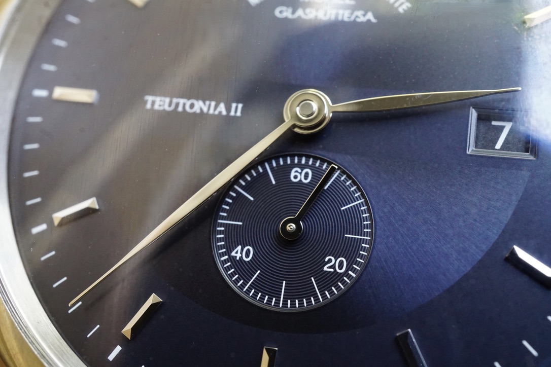 De Mühle Glashütte Teutonia II. Die zit nog steeds op de wip, eerlijk gezegd, want hij is erg groot. Ik had 'm laatst weer een keer om, en hij is wel mooi, maar het is gewoon m’n stijl niet meer. Maar vooralsnog blijft hij als rariteit in de kist zitten. Al meer dan negen jaar in bezit.
