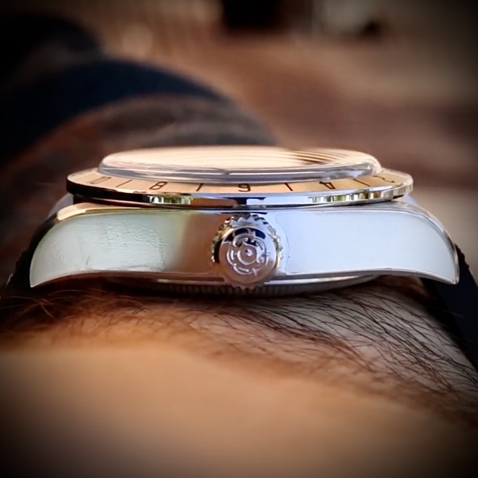 Ook deze kwam op mijn pad, maar uiteindelijk laten schieten vanwege niet inspirerend genoeg profiel en overlap met mijn blauwe Orient Star Contemporary. Dat het een meergebruikte kast van San Martin is hielp ook niet.