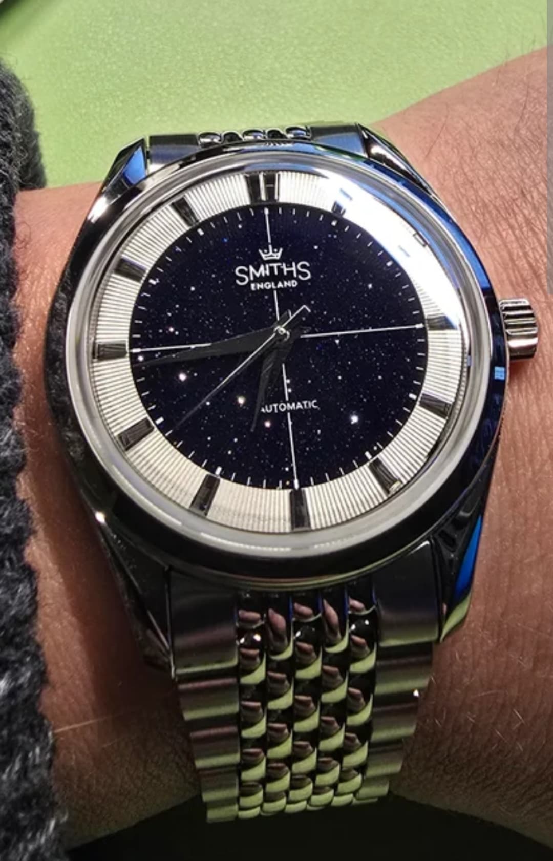 - De blauwe… Ik ben geen fan van deze kleur in een dressy horloge, en de gunmetal wijzers doen het niet voor me, nu iemand me er op geattendeerd heeft.