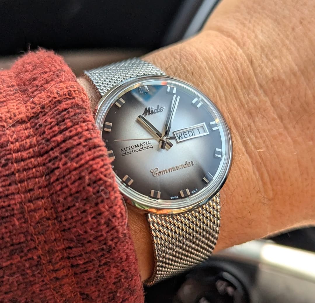 Ik merk ook dat ik de original steeds meer ga waarderen, tijdloos ontwerp! Volgens mij heeft de original een kastdiameter van 38mm. Hoop dat deze een beetje mooi om mn 19.5cm arbeiderspols valt…