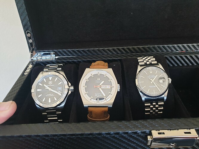 De Tudor wordt het meest gedragen de laatste tijd, dus de Aqua Terra staat al een tijdje stil. (Of de Tudor wordt het meest gedragen omdat de Aqua Terra stil staat. Kip of het ei.)
