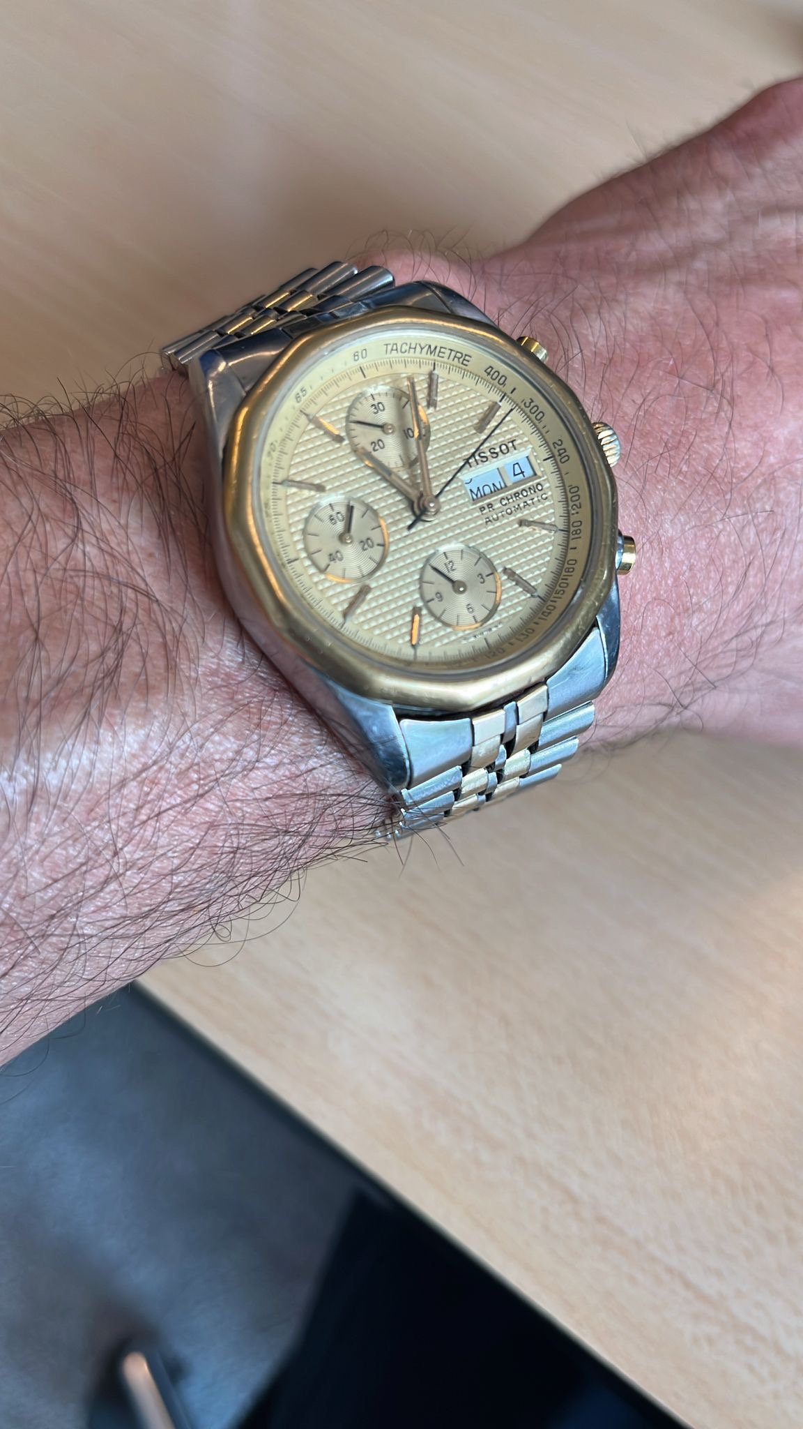 Moet wel zeggen dat kijkend naar dit topic mijn smaak is veranderd over jaren. En dat maakt horloges ook zo leuk. Wat je toen niet zo mooi vond, spendeer je nu wellicht wel geld aan. Voor mij was dat deze vintage Tissot. Vroeger wilde ik nooit goud en kijk nu eens