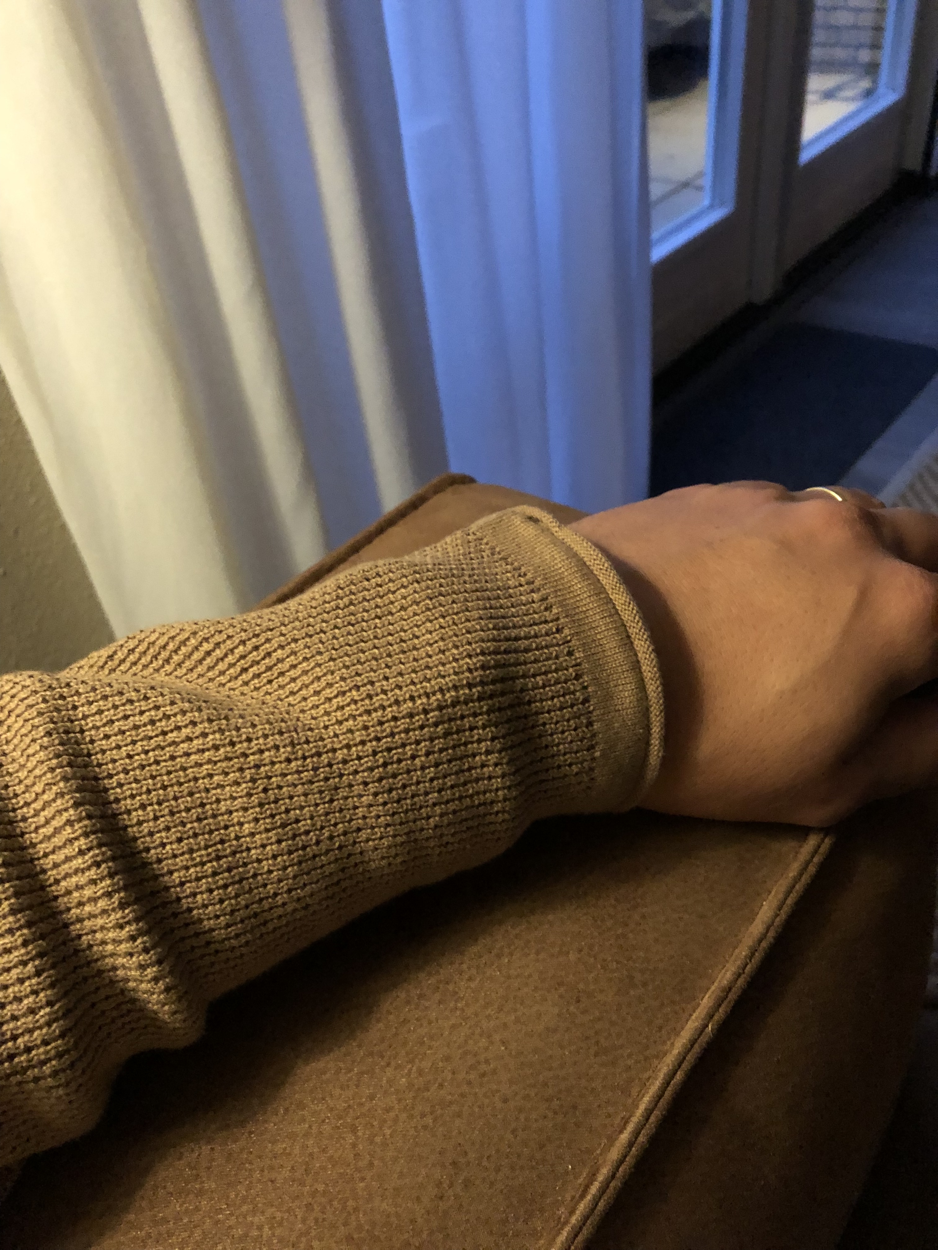 Mouw omhoog. Heb een hekel aan lange mouwen.