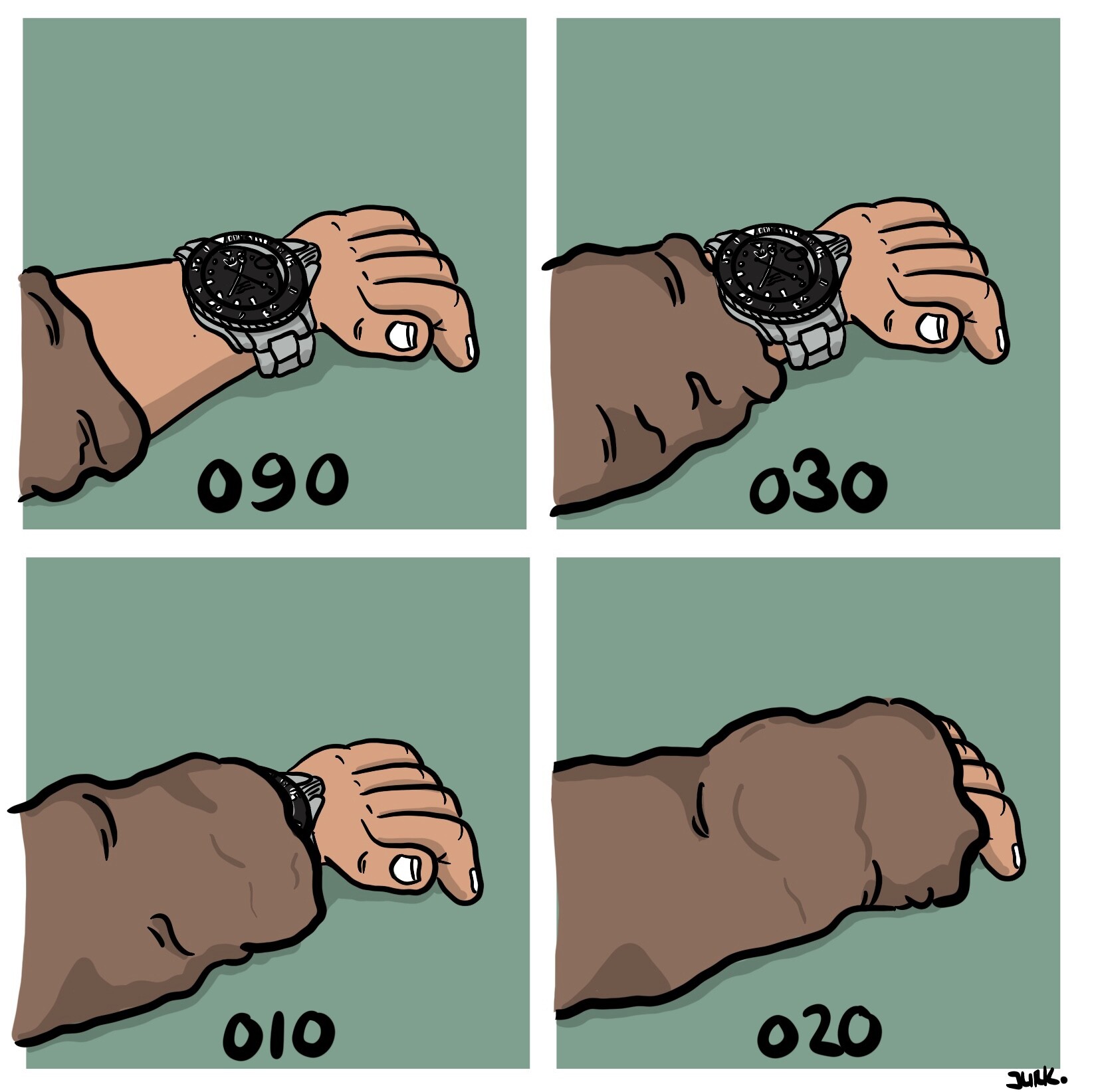 Indien het echt te koud is zit mijn horloge waar het altijd zit en schuift de trui/vest/whatever er soms overheen en soms niet afhankelijk van de beweging.